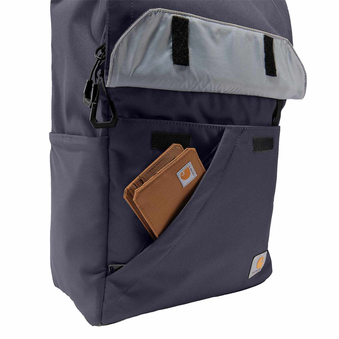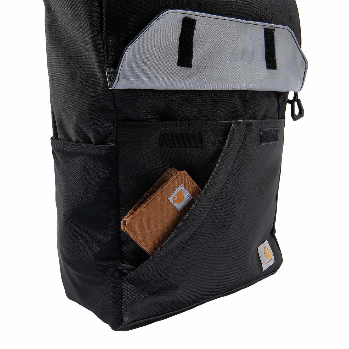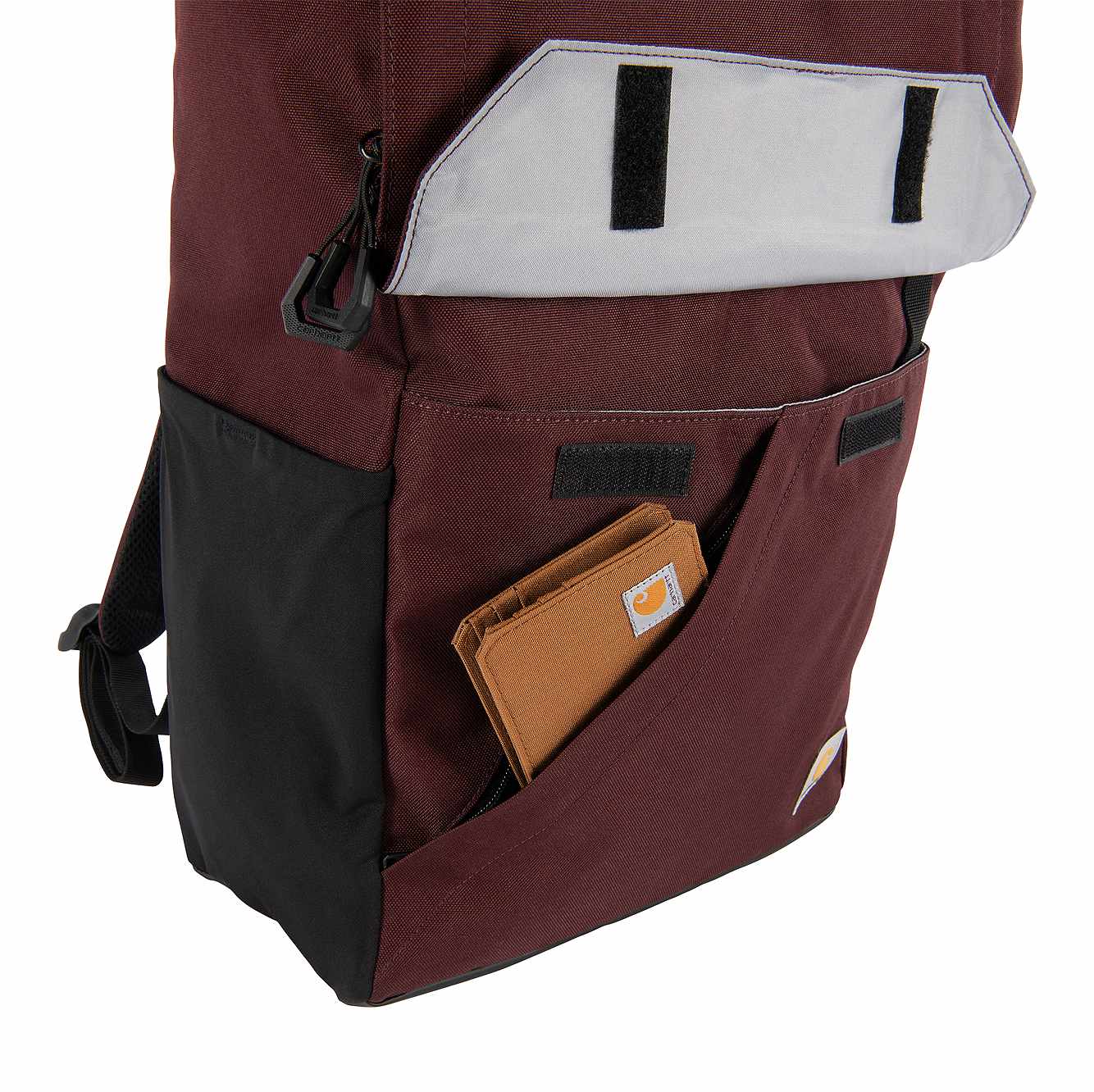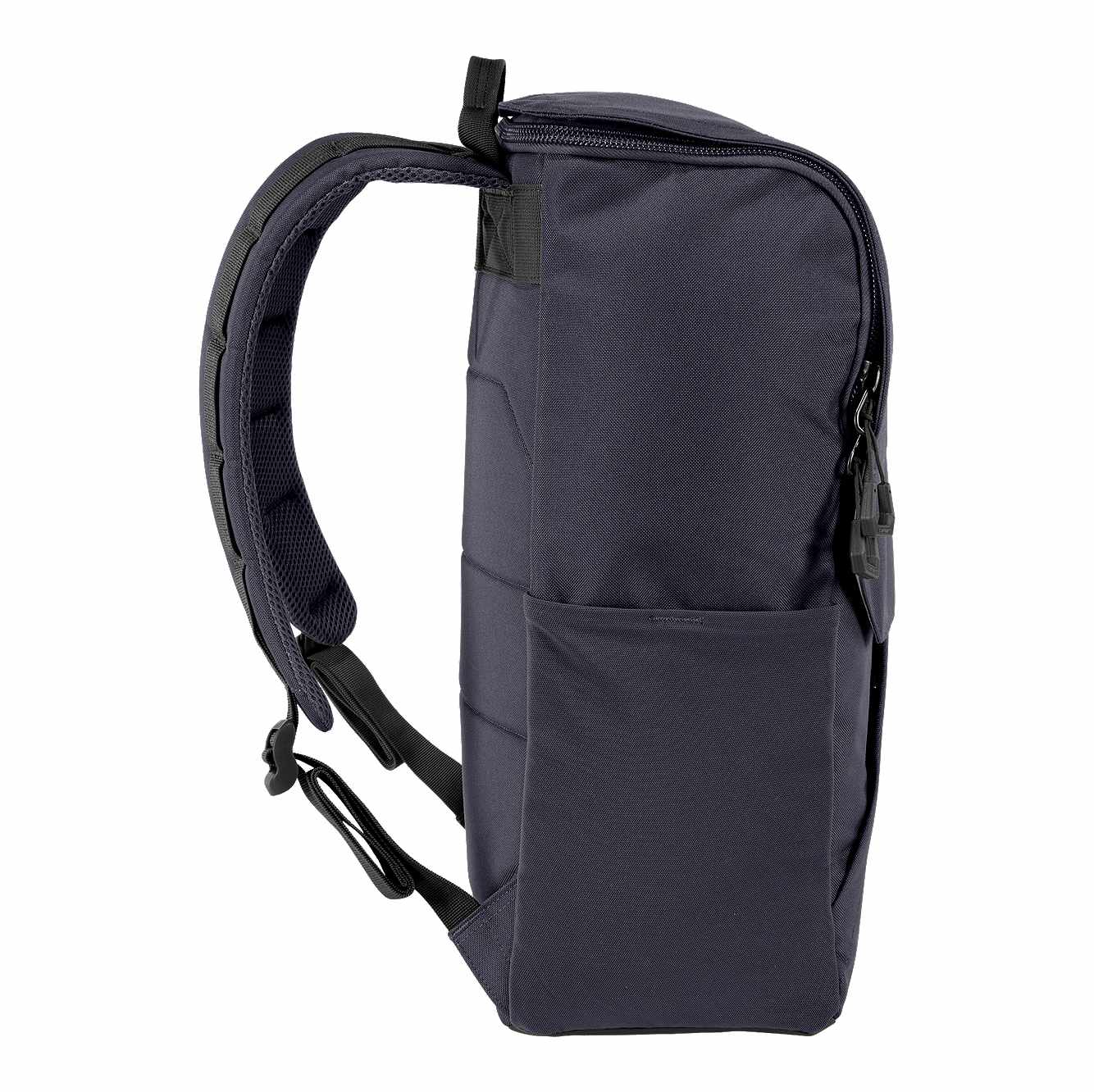 Just the right size for a day on the go, this backpack is made from 600-denier fabric, with a coated base for extra weather protection. Light rain rolls right off thanks to water-repellent Rain Defender technology. A padded sleeve inside the main compartment holds a 17 in. laptop. A diagonal, tricot lined pocket on the exterior is perfect for storing valuables. Reflective webbing on the shoulder straps, and reflective logo make this pack easily visible when on the go.