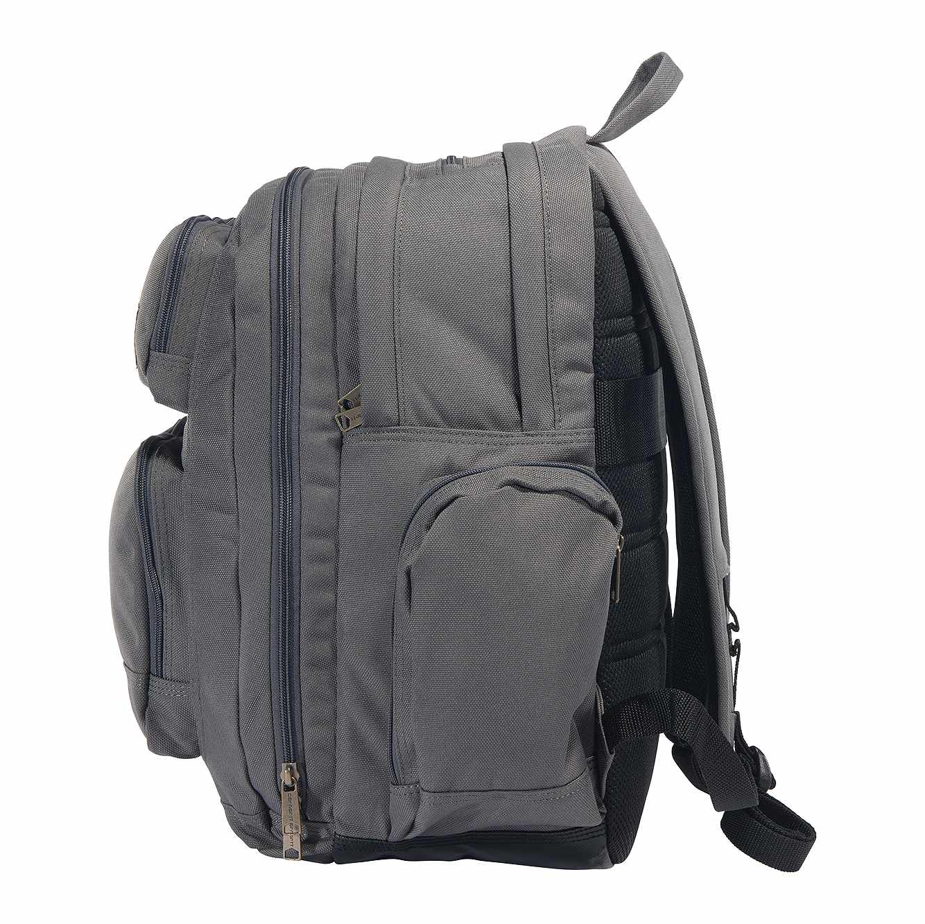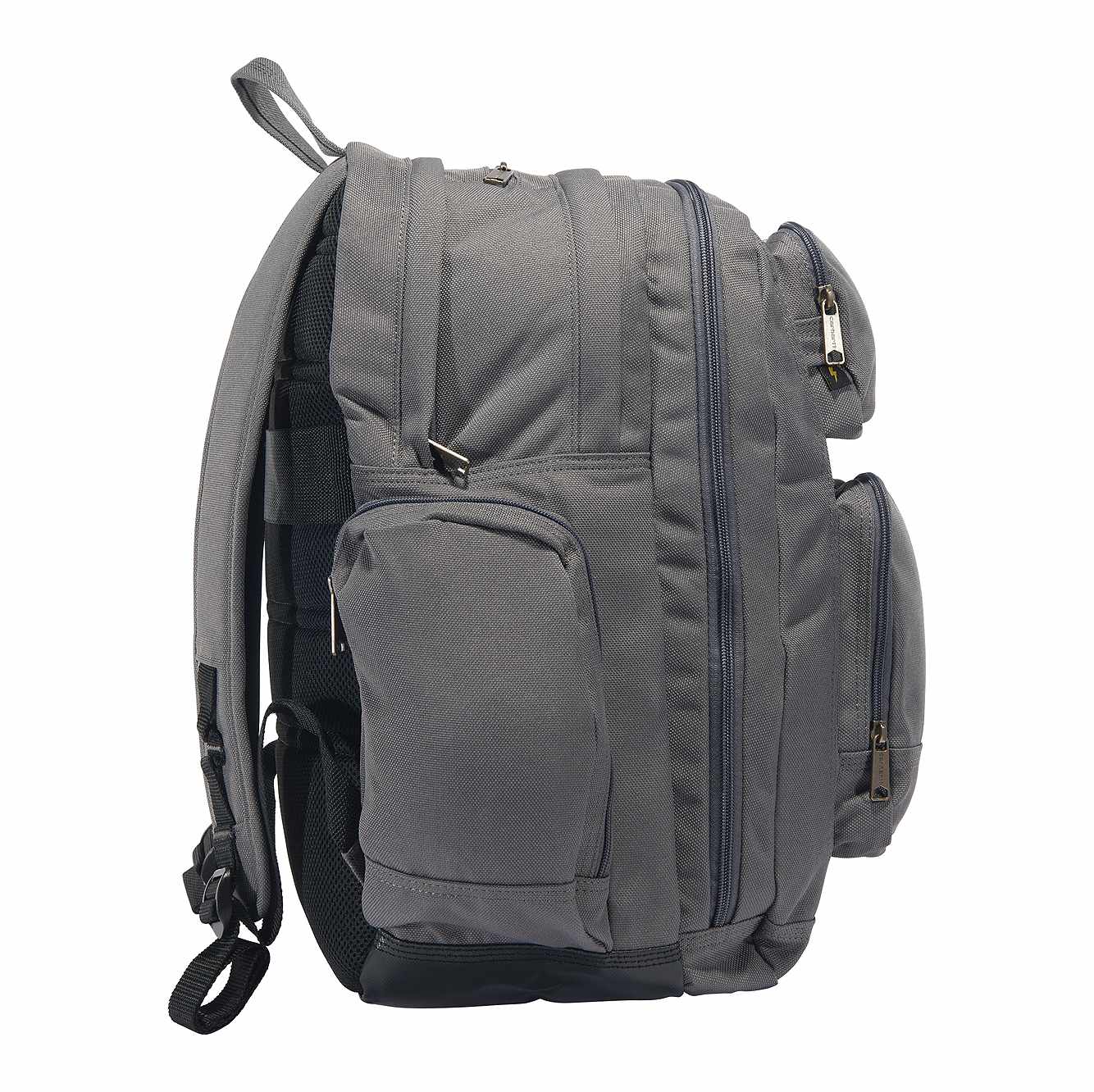 This 35L work backpack is tough enough for the jobsite and spacious enough for a weekend trip. It's designed with several pockets on the inside and out, including a padded sleeve for laptops up to 17 inches. The bag is made of heavy-duty material that sheds light rain, with a reinforced base for extra strength.