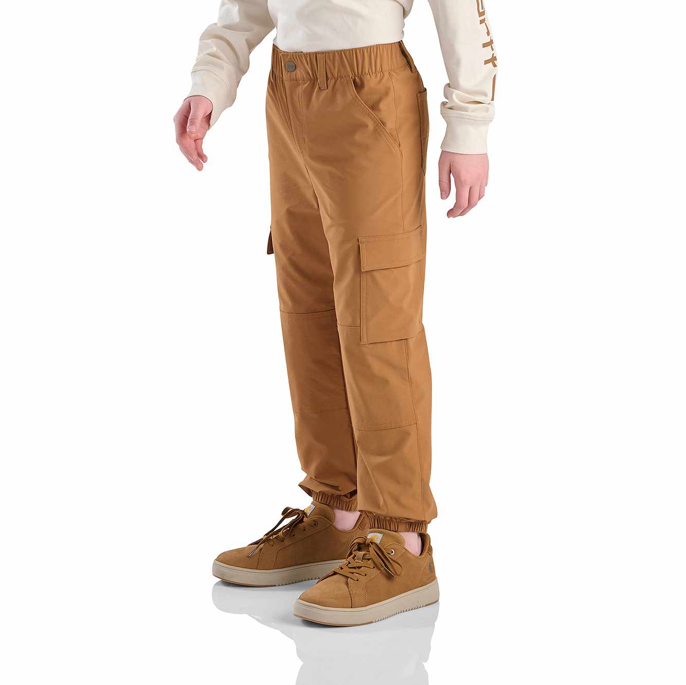 He's ready for adventure, and these boys' cargo joggers are made to keep up. Carhartt Rugged Flex® stretch technology gives him room to move. Double knees and triple-stitched seams resist wear and tear. An adjustable waistband keep the fit just right as he grows.