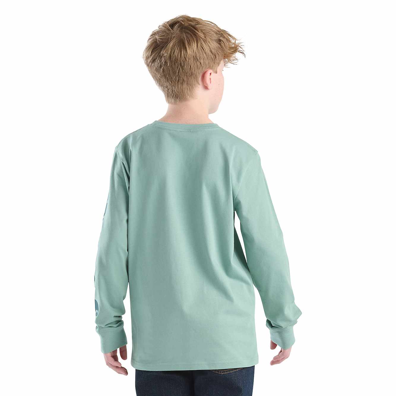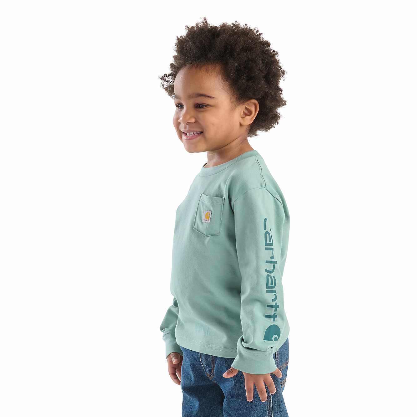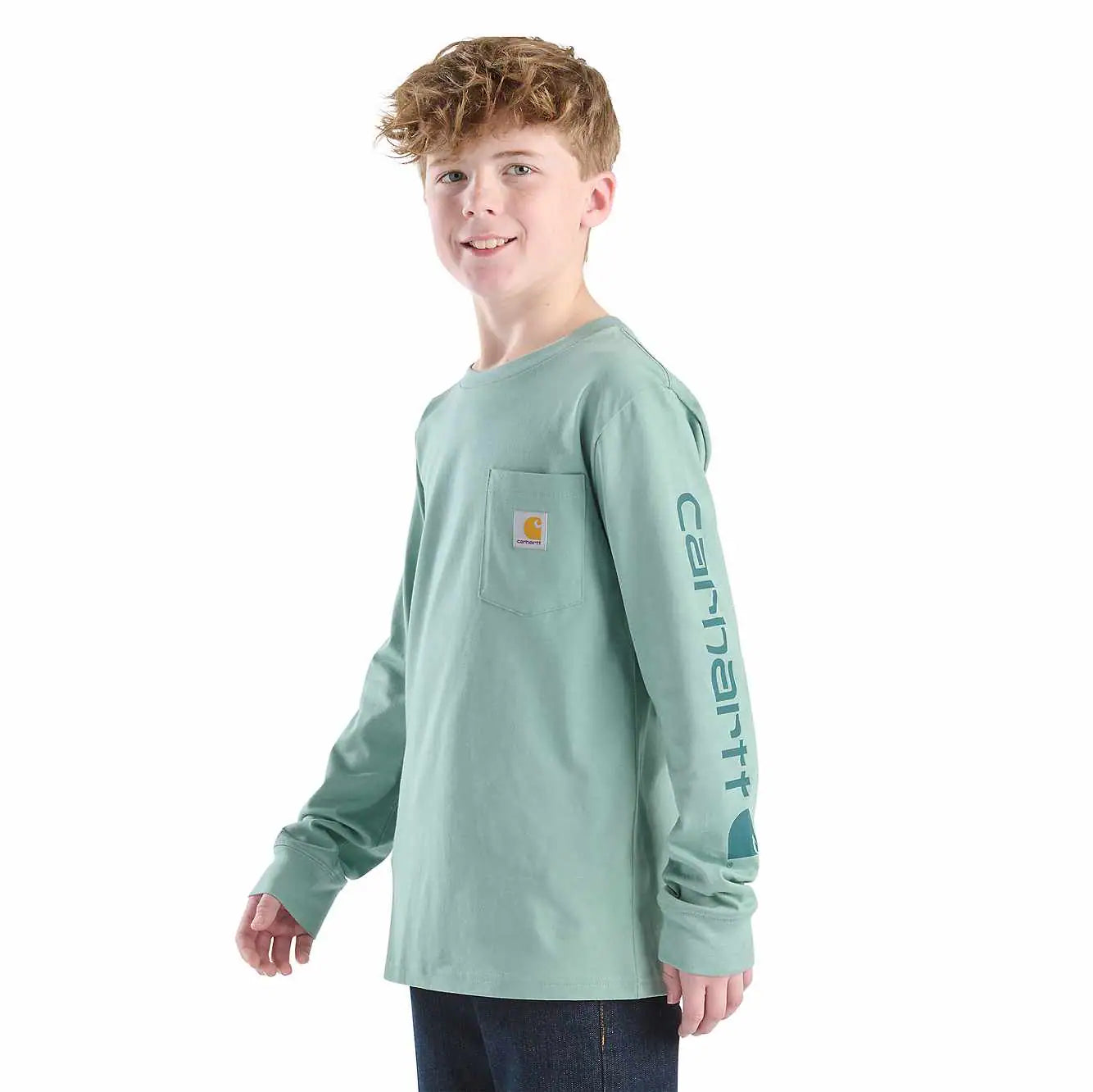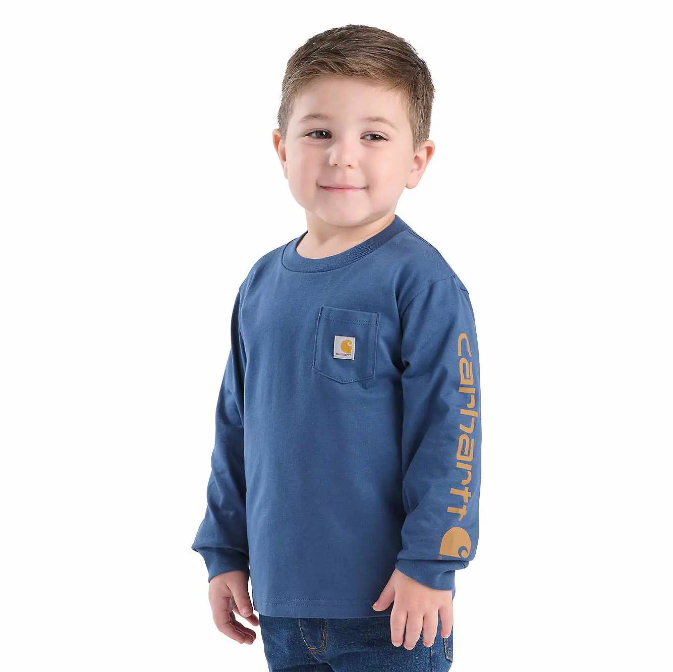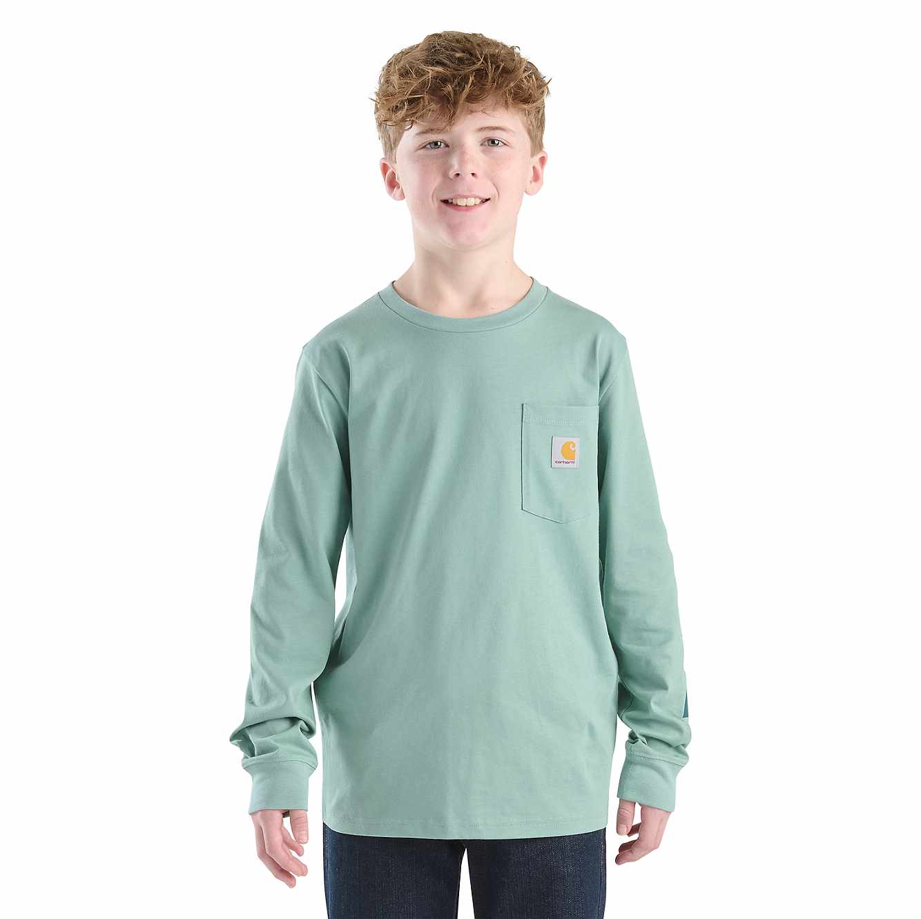 This boys' pocket t-shirt offers all the easygoing comfort of a favorite tee but with longer sleeves for extra coverage. It combines cotton's soft feel with Carhartt's toughness and dependability. It comes in lots of cool colors and has the classic Carhartt graphic down the sleeve.