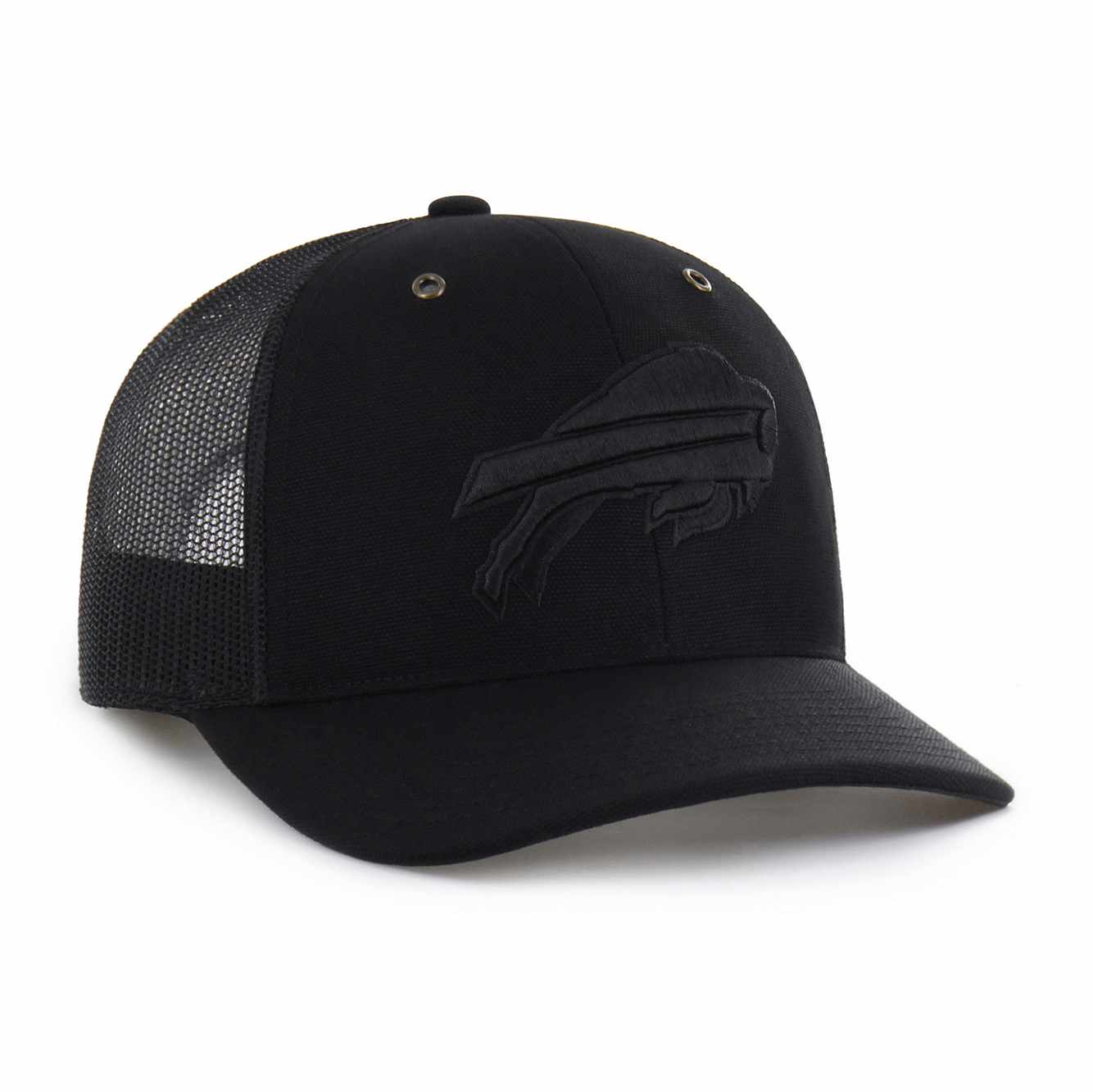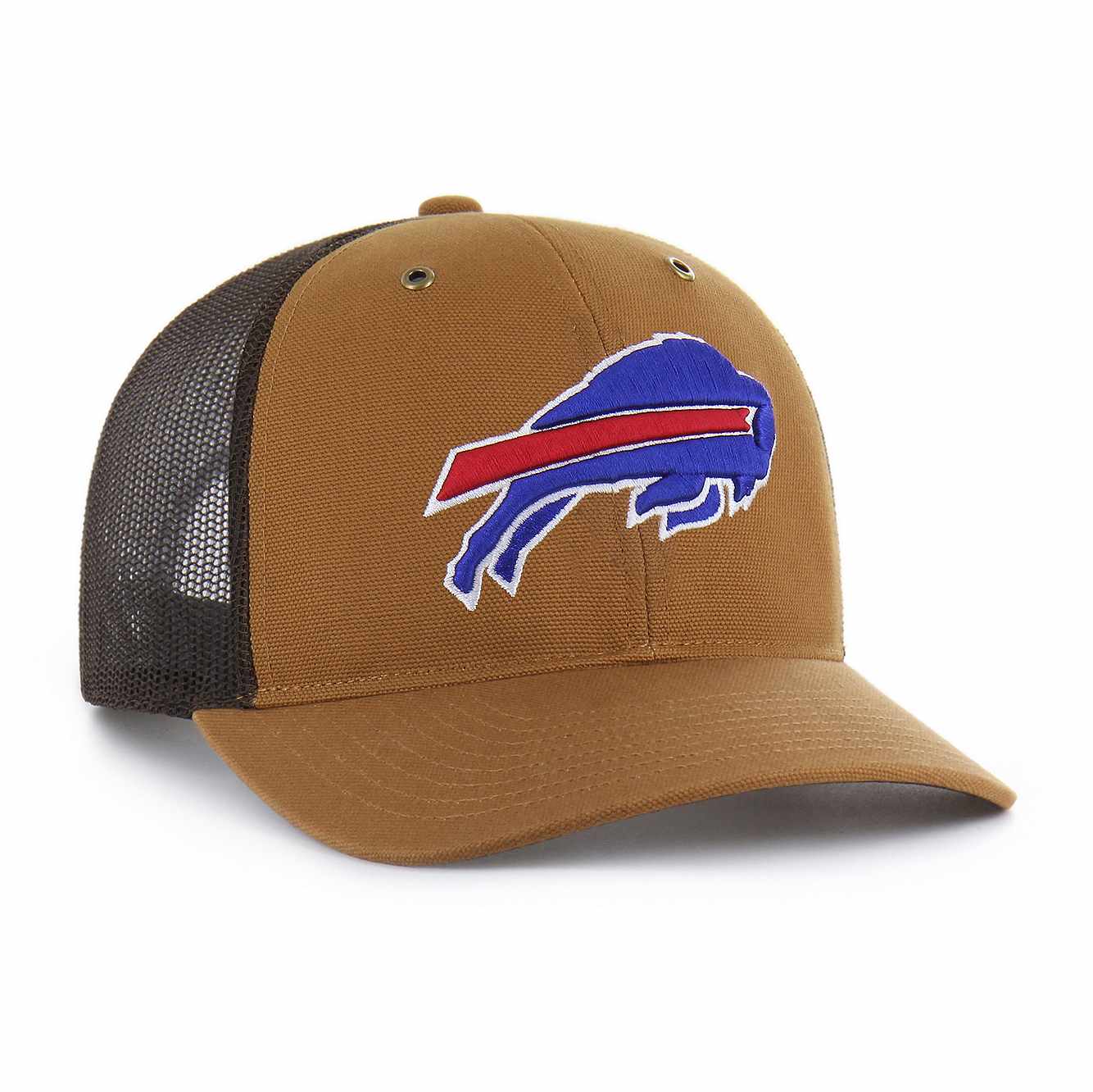 The Carhartt '47 TRUCKER has a comfortable mid-crown, a curved visor, and an adjustable plastic snapback. The front has a raised embroidery logo. Made from Carhartt Duck Cloth unwashed material and mesh.