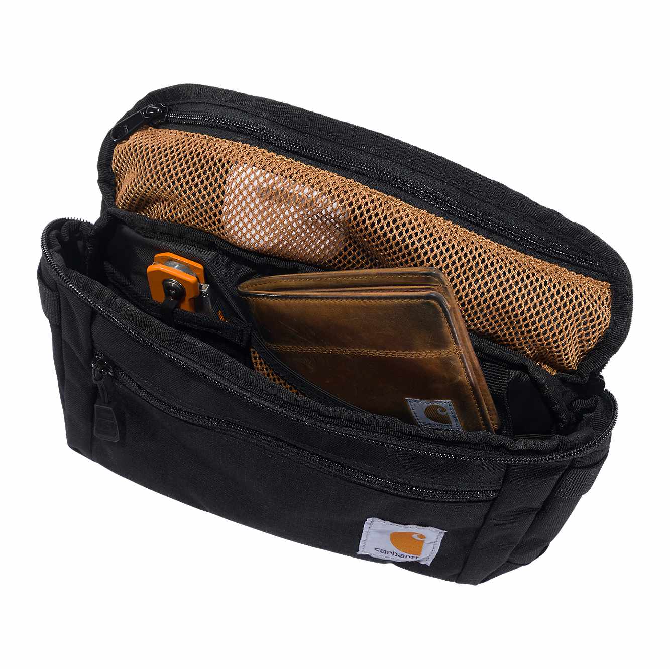 Hip pack made of heavy-duty, water-repellent material.