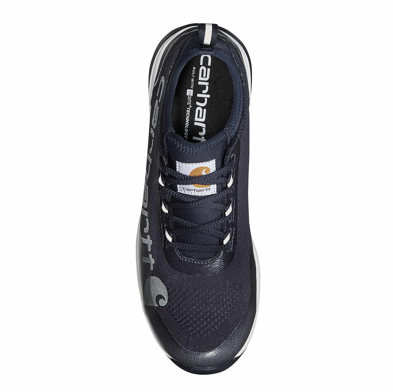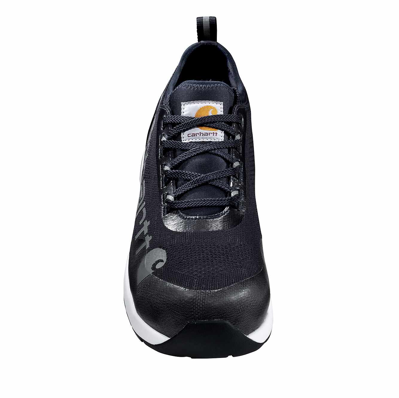 Lightweight and protective, these men's Carhartt work shoes are two attributes that are difficult to find in one shoe. Great for worksites that are metal-free, they come with a Nano composite safety toe toe that meets ASTM F2892-18 SD 35 standards. The low-bulk knit upper is reinforced at high-wear points and rides on a lightweight EVA midsole for cushioned comfort. The flexible Force outsole offers all-day comfort while providing slip resistance that meets ASTM F3445-21 SR standards.