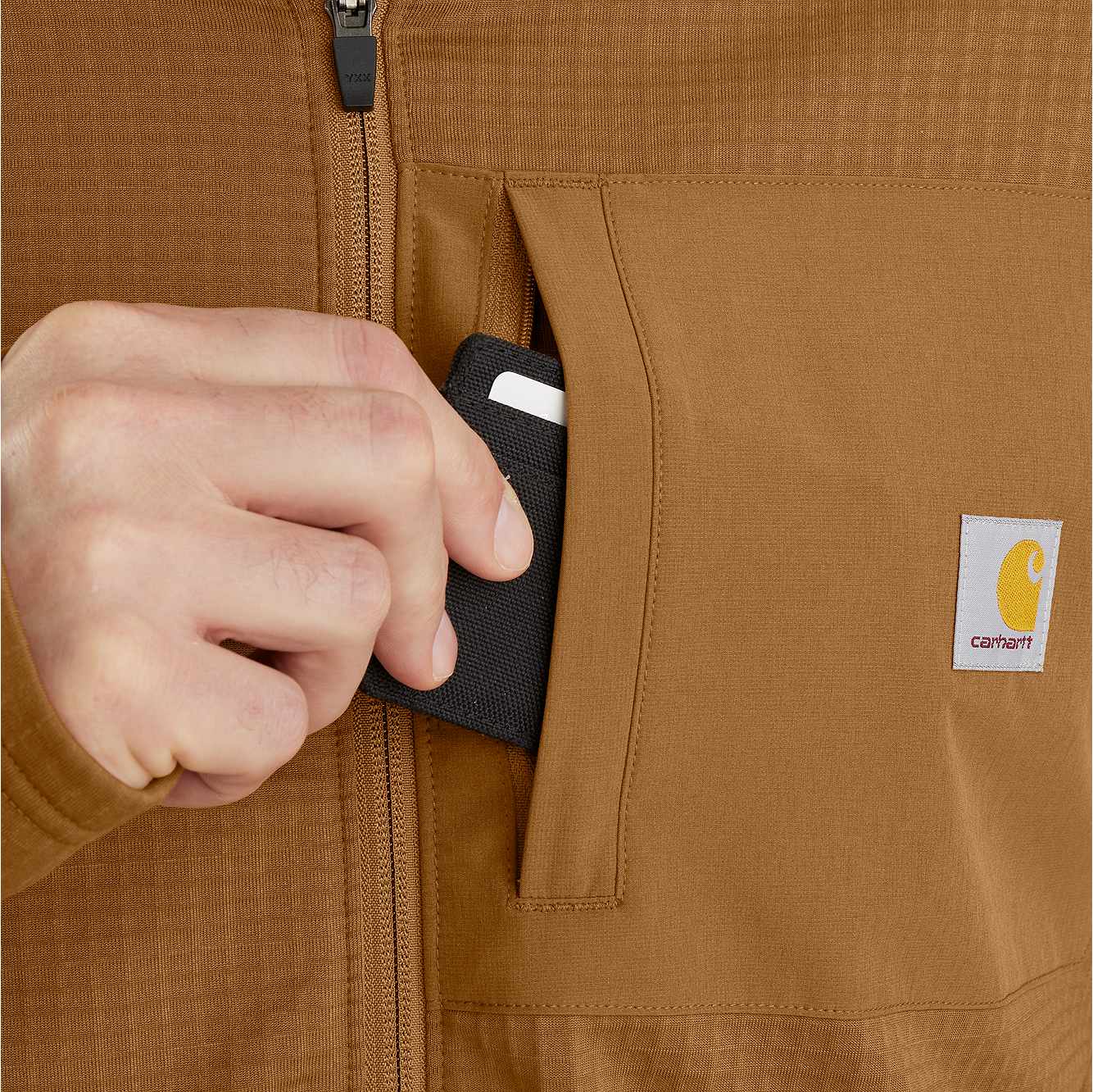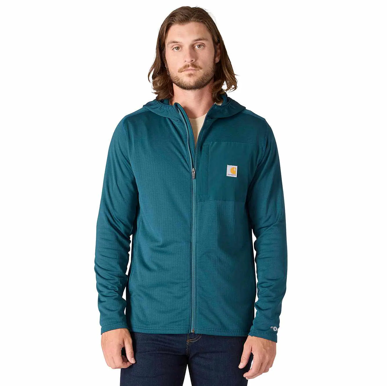 Feel comfortable on the job or off the clock in this men's hooded fleeced-lined shirt. Built Carhartt tough, so you know it'll last. Plenty of pockets keep essentials secure and organized. Focus on the job and not your clothes with a relaxed fit and room in the shoulders.