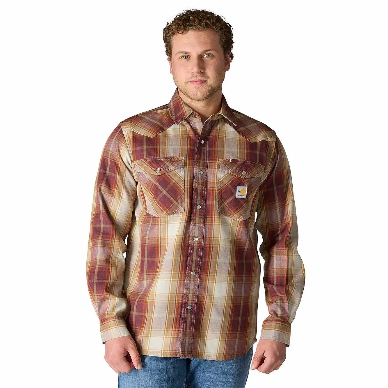 This men's FR button up shirt meets workday standards with a cotton blend twill and snap-front closure. A relaxed fit offers a little extra room to move.