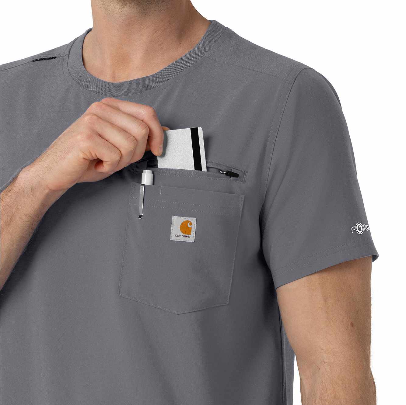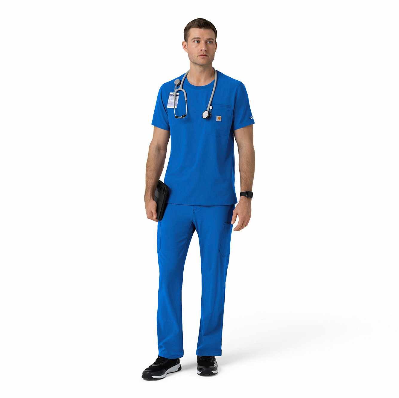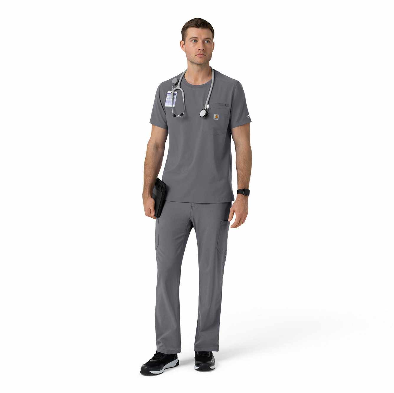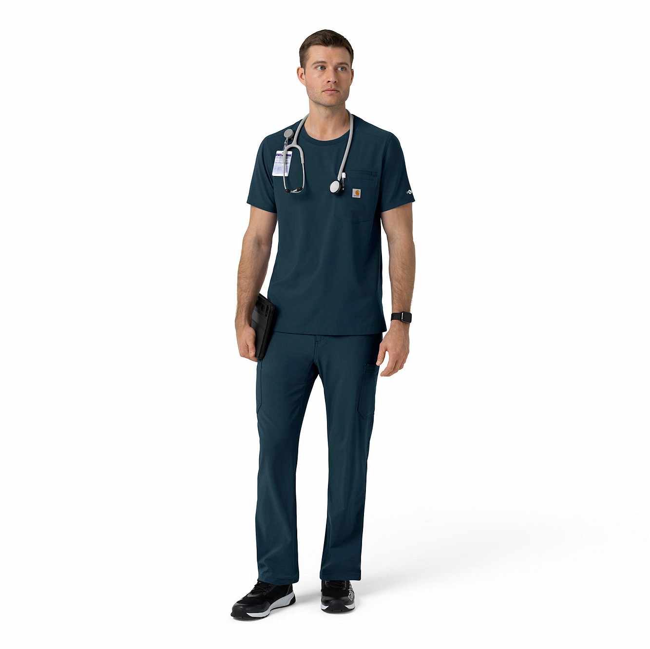 This men's Carhartt scrub top offers the best of both worlds: the relaxed feel of a t-shirt with the robust functionality of a professional scrub top. Engineered to withstand the demands of extended shifts and rigorous work environments, it's a reliable choice for healthcare professionals. Crafted from durable stretch polyester, it provides exceptional flexibility and long-lasting wear, ensuring you can move freely and comfortably throughout your day. Designed with practicality in mind, this scrub top features multiple pockets, offering ample storage for essential tools and personal items. A secure zip pocket ensures valuables remain safe and easily accessible. The integrated shoulder badge loop allows for clear and visible display of your ID, streamlining identification procedures and enhancing workplace efficiency. This Carhartt scrub top is built to endure, offering a blend of comfort, durability, and functional design. It's an essential piece for any professional who requires reliable workwear that can keep up with their demanding schedule.