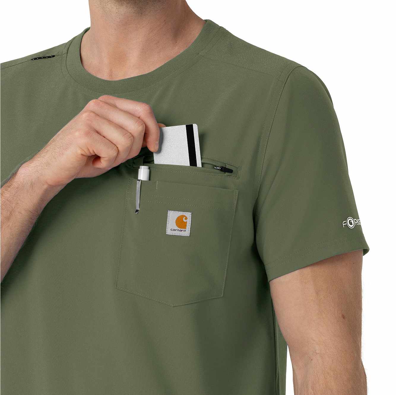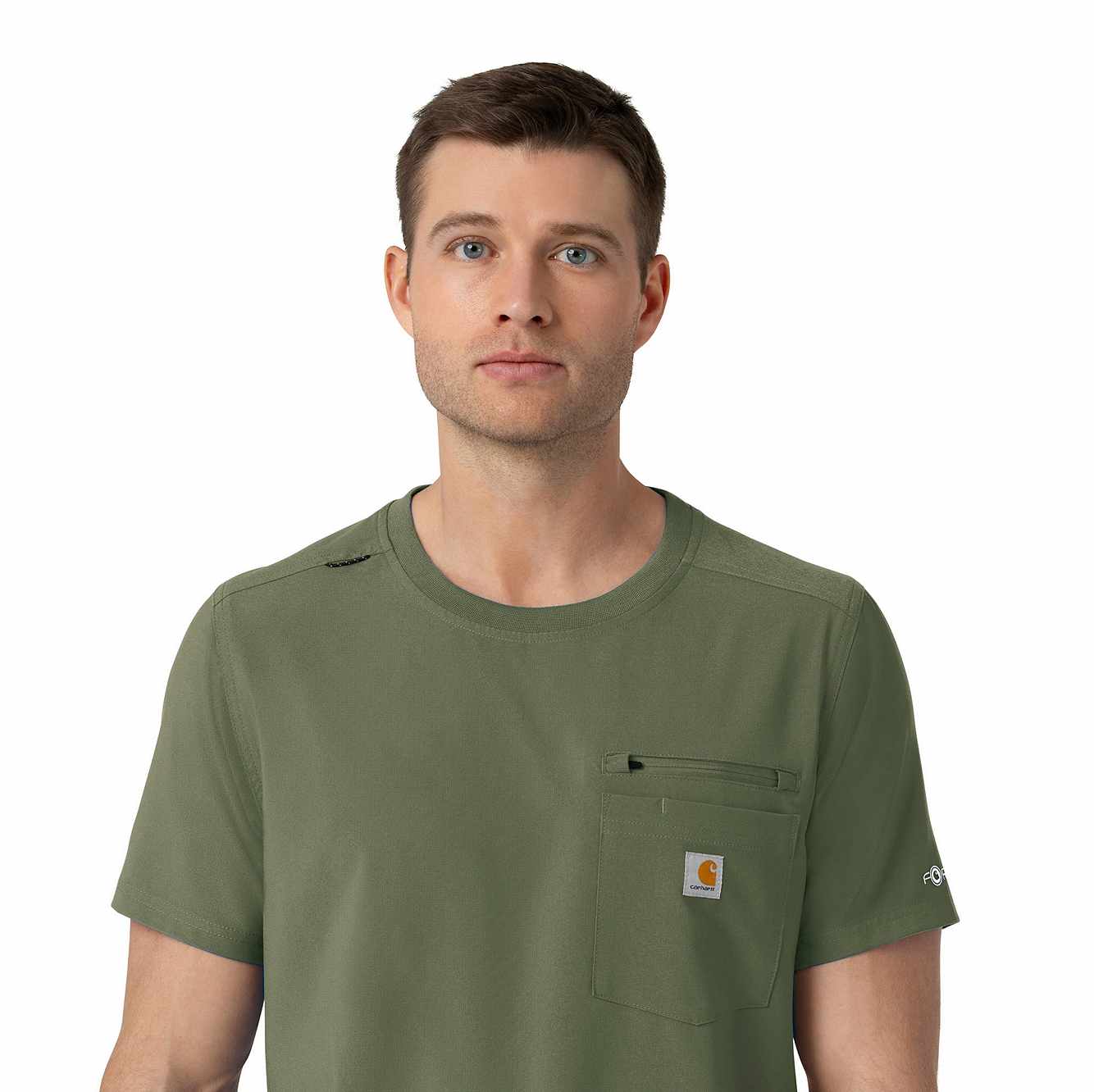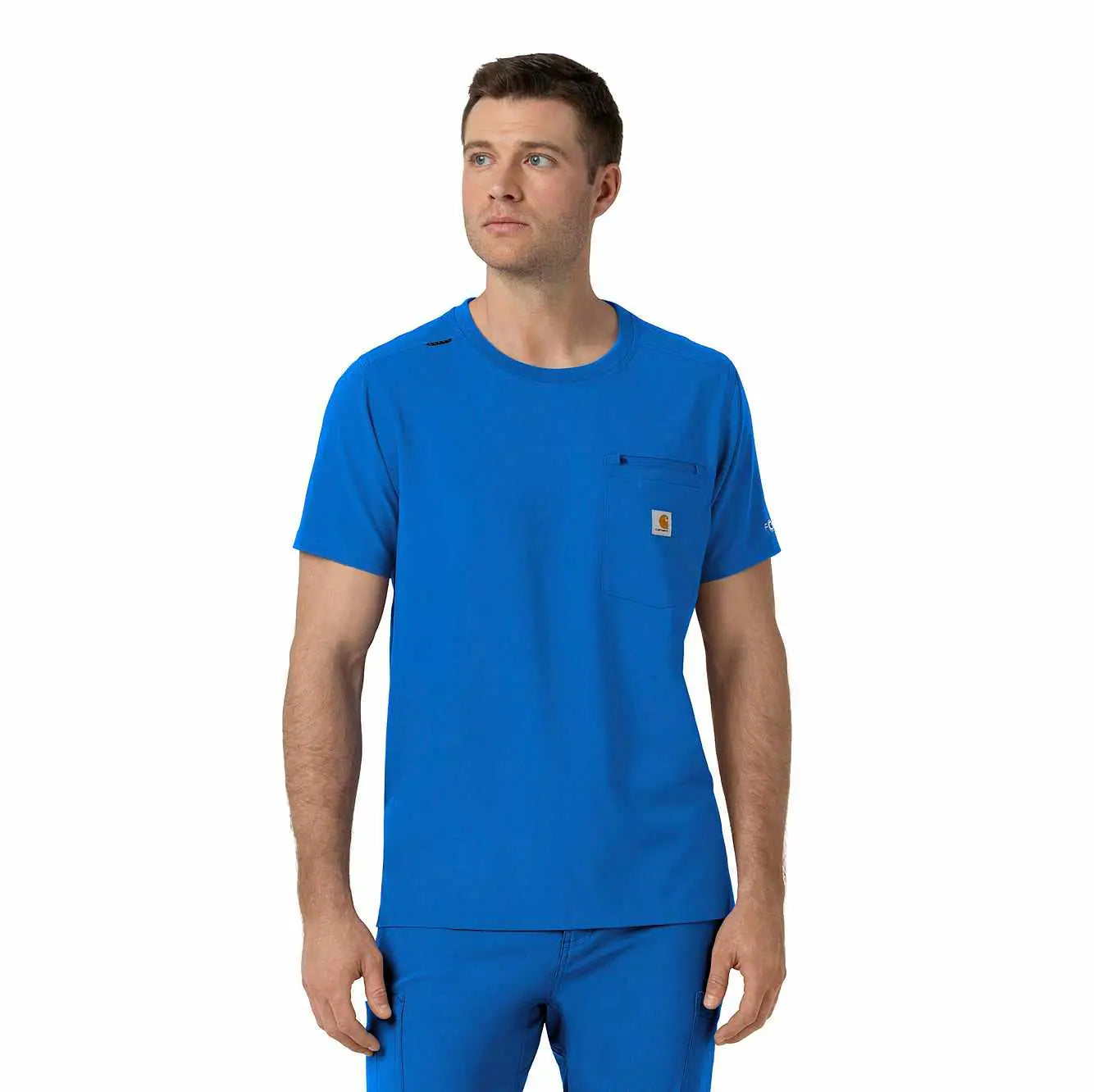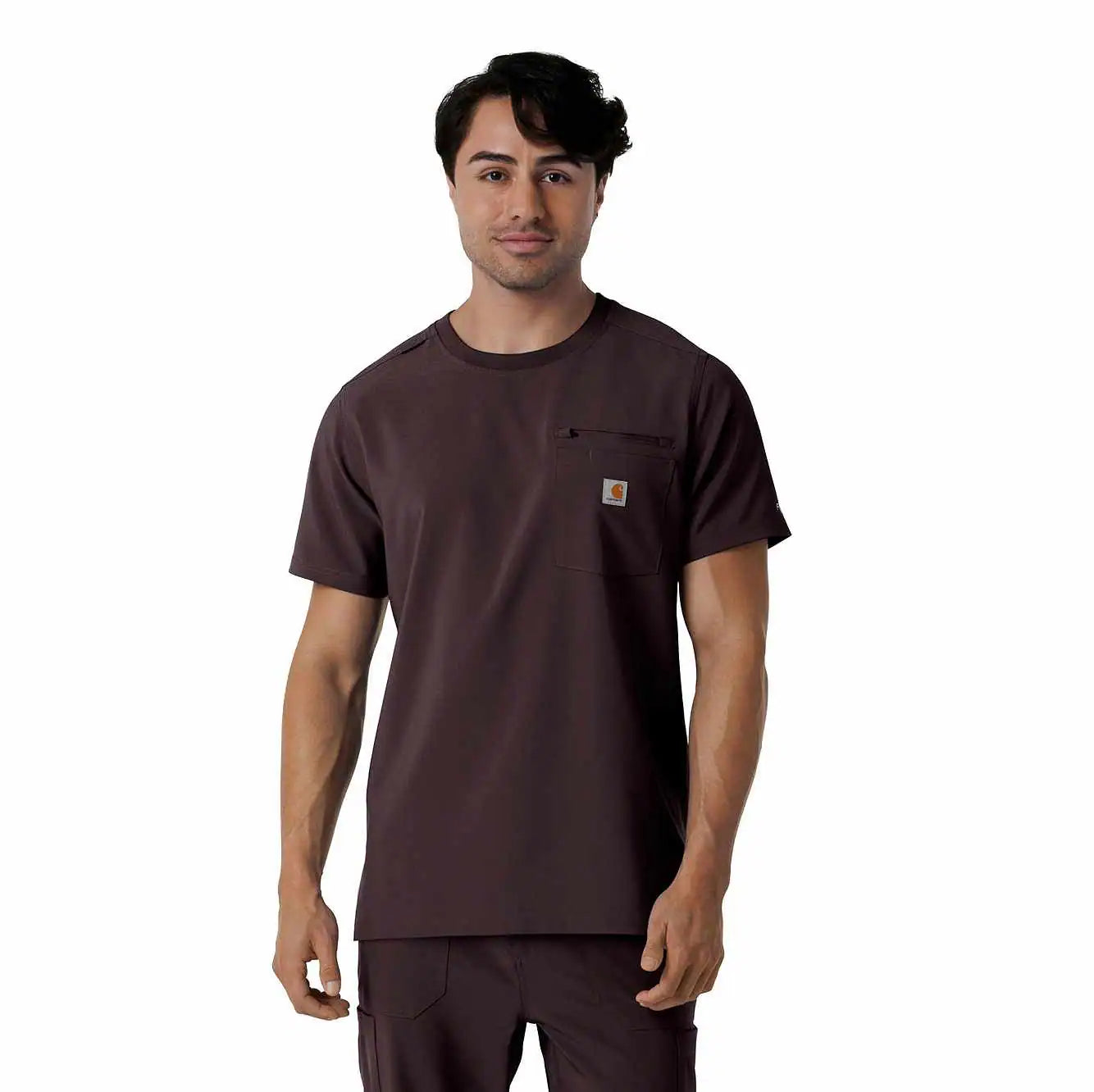 This men's Carhartt scrub top offers the best of both worlds: the relaxed feel of a t-shirt with the robust functionality of a professional scrub top. Engineered to withstand the demands of extended shifts and rigorous work environments, it's a reliable choice for healthcare professionals. Crafted from durable stretch polyester, it provides exceptional flexibility and long-lasting wear, ensuring you can move freely and comfortably throughout your day. Designed with practicality in mind, this scrub top features multiple pockets, offering ample storage for essential tools and personal items. A secure zip pocket ensures valuables remain safe and easily accessible. The integrated shoulder badge loop allows for clear and visible display of your ID, streamlining identification procedures and enhancing workplace efficiency. This Carhartt scrub top is built to endure, offering a blend of comfort, durability, and functional design. It's an essential piece for any professional who requires reliable workwear that can keep up with their demanding schedule.