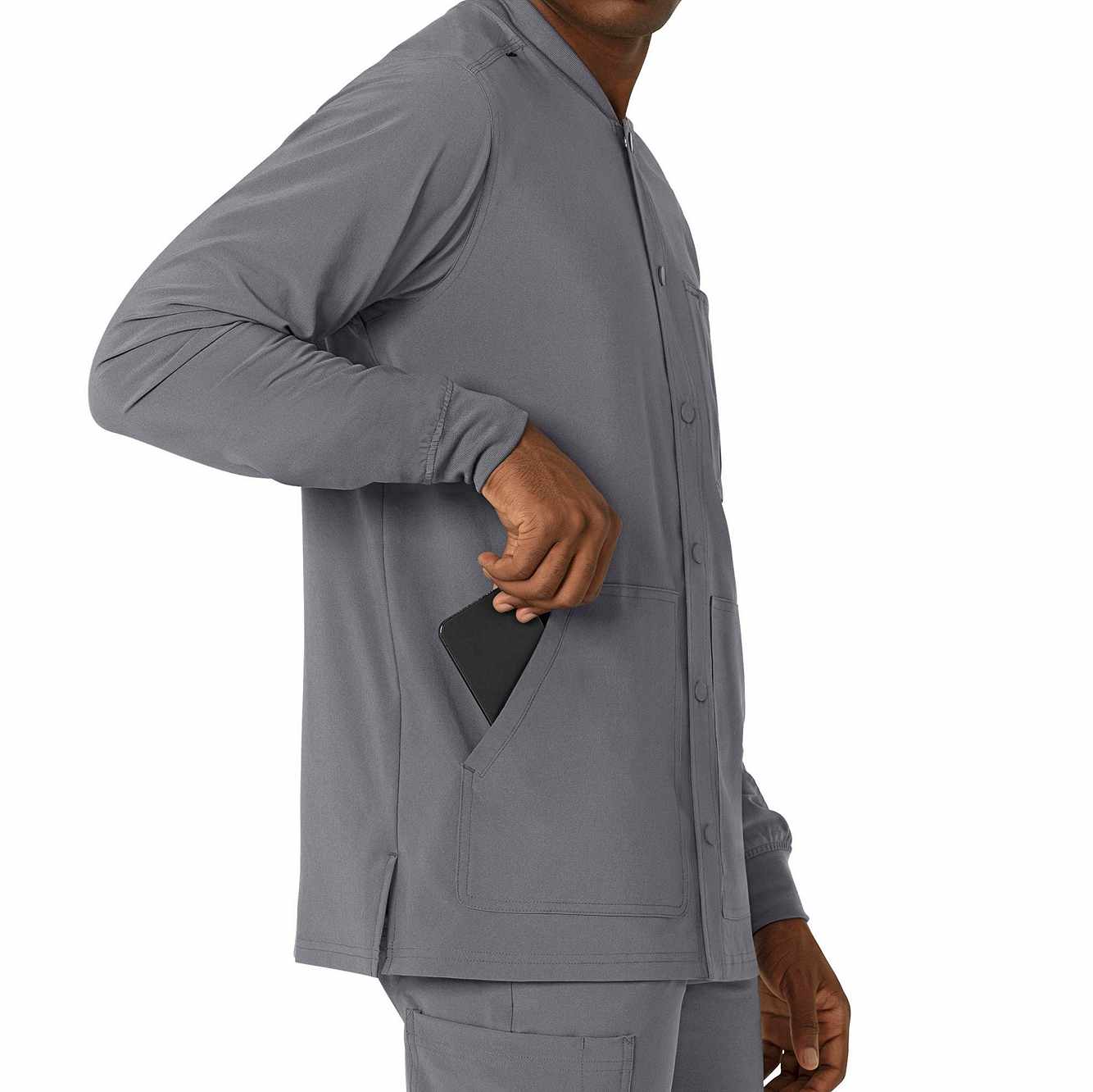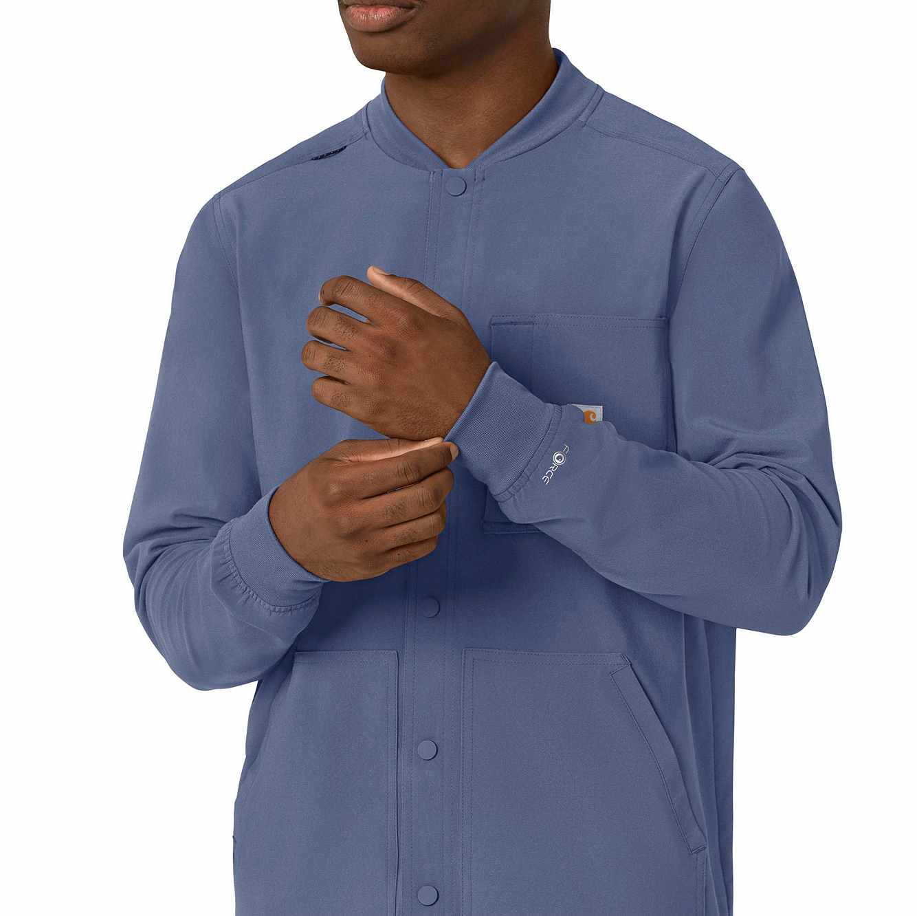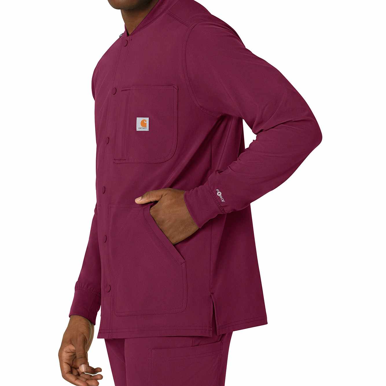 Versatility is the name of your game. You're always ready to switch gears, whether it's completing your own tasks or helping your fellow nurses with theirs. This men's shirt jacket does the same, blending the polished style of a shirt with the coverage of a jacket. It's the perfect layer for days when temperatures fluctuate or the air conditioning varies from room to room. Built for durability, it's made with a stretchy, comfortable fabric that includes micro ripstop to handle the rigors of your daily life at work. A knit collar and snap-button front accent the design for a cozy touch that adds just the right amount of tailoring. Keep everything where you need it with a chest pocket built with a pen slot plus internal loops for your badge or glasses. The lower front pockets are oversized, and there's even a pocket just for your phone for fumble-free access. This shirt jacket is part of our Force Cross-Flex collection, designed to help you excel on every shift. It wicks sweat and dries fast, and it's built to move with Rugged Flex™ stretch technology.