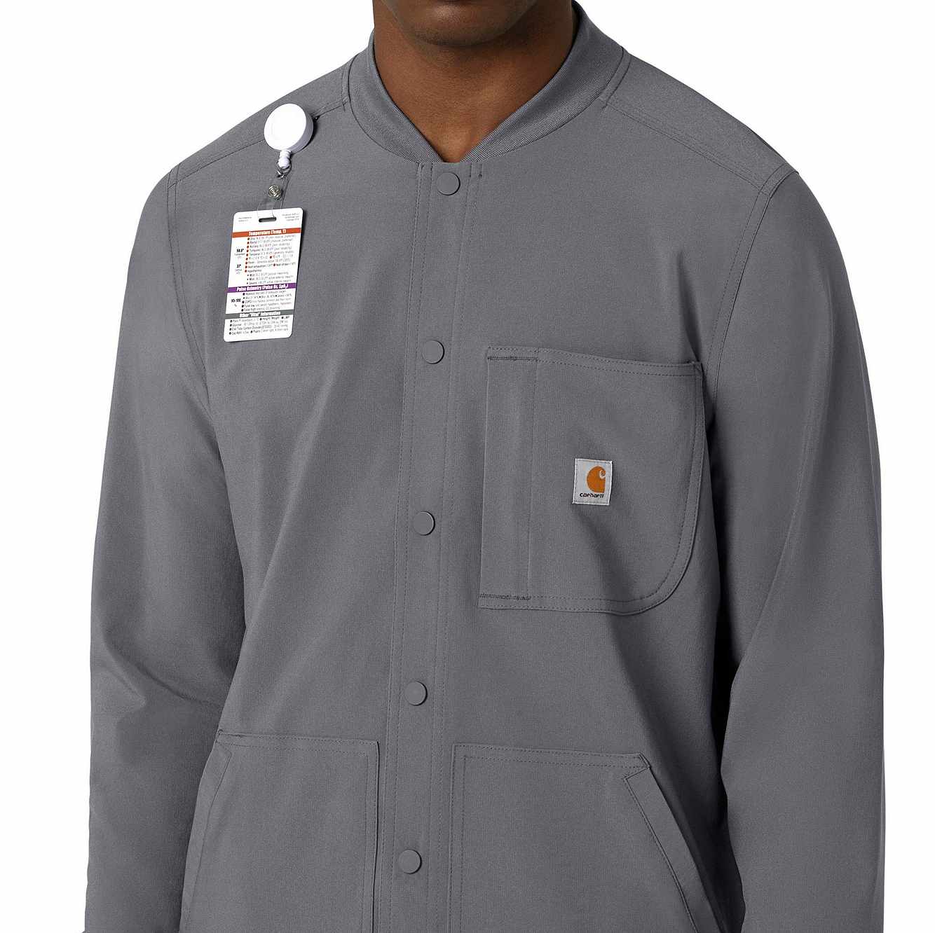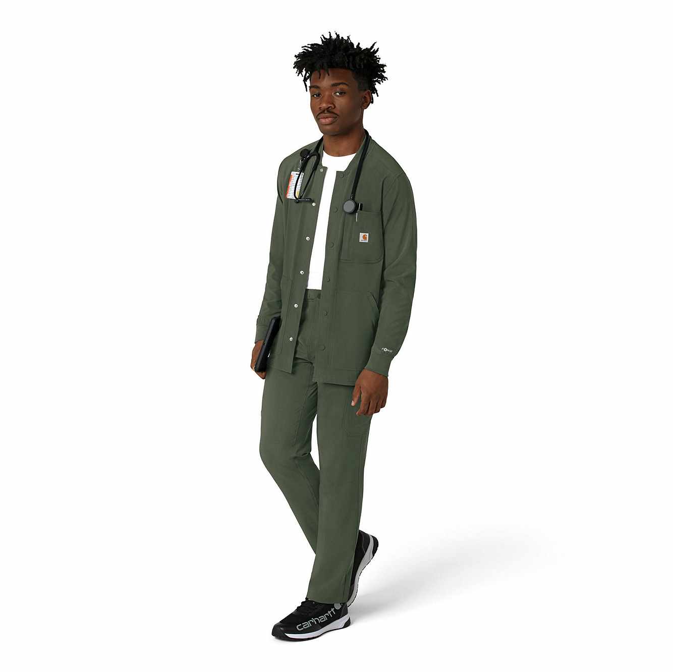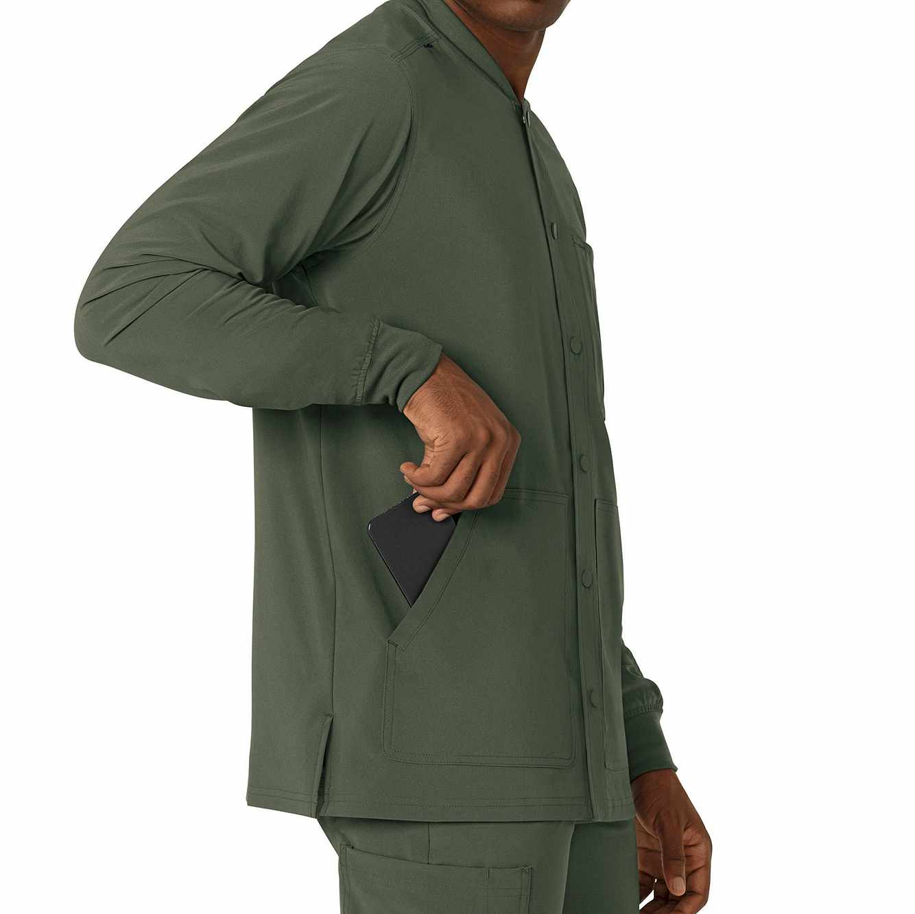 Versatility is the name of your game. You're always ready to switch gears, whether it's completing your own tasks or helping your fellow nurses with theirs. This men's shirt jacket does the same, blending the polished style of a shirt with the coverage of a jacket. It's the perfect layer for days when temperatures fluctuate or the air conditioning varies from room to room. Built for durability, it's made with a stretchy, comfortable fabric that includes micro ripstop to handle the rigors of your daily life at work. A knit collar and snap-button front accent the design for a cozy touch that adds just the right amount of tailoring. Keep everything where you need it with a chest pocket built with a pen slot plus internal loops for your badge or glasses. The lower front pockets are oversized, and there's even a pocket just for your phone for fumble-free access. This shirt jacket is part of our Force Cross-Flex collection, designed to help you excel on every shift. It wicks sweat and dries fast, and it's built to move with Rugged Flex™ stretch technology.