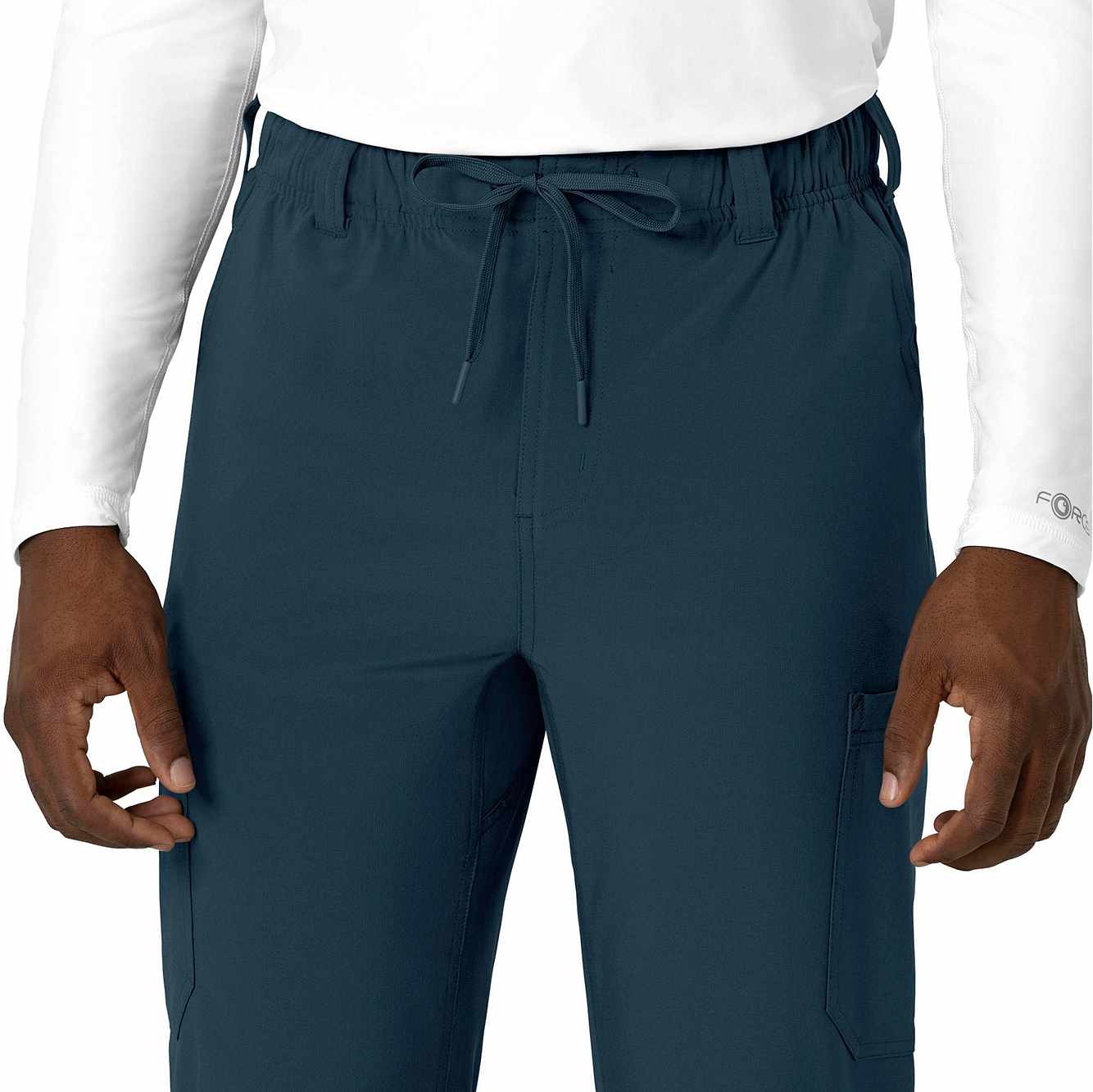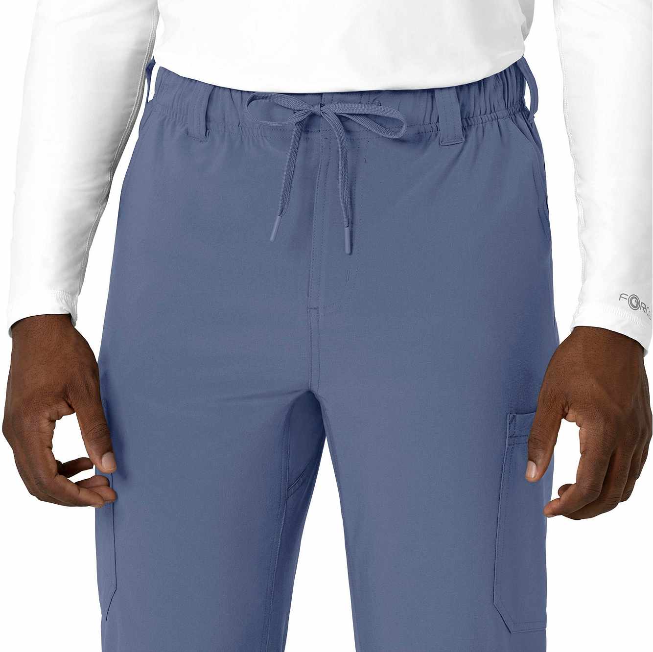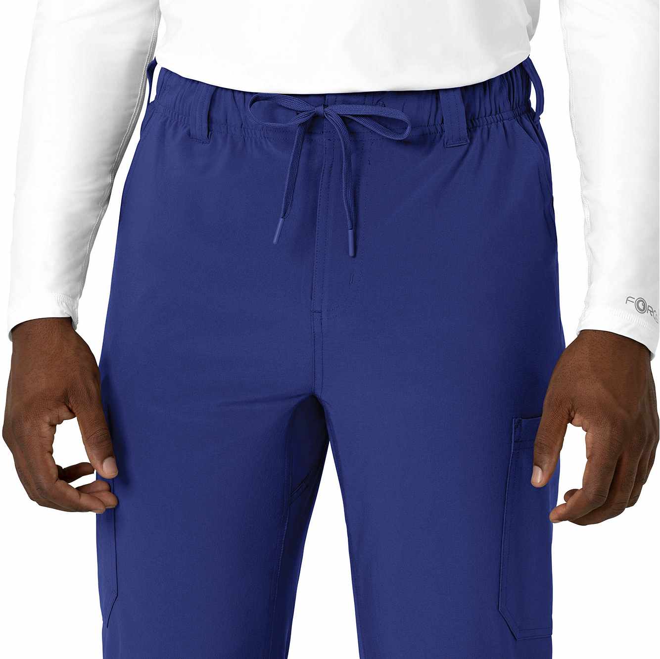 Show up to each shift in a fresh and modern look that delivers on utility with practical design. These men's scrub pants have a straight-leg fit that keeps things simple and streamlined. They're made with a soft and stretchy material that has micro ripstop built into it, making the most of durability for long-lasting wear. No worries when it comes to the essentials you need to keep your shift moving smoothly — these scrub pants are designed with pockets that hold it all. Two deep front pockets and two back pockets make it easy to access items and tools, while one hidden zip pocket at the right keeps small valuables out of sight. On the right is a cargo pocket with a pen slot plus utility loops that give you a convenient spot to secure things like your glasses or badge. On the left is another cargo pocket built with an interior mesh pocket for your phone. These scrub pants are part of our Force Cross-Flex collection that wicks sweat and dries fast, making them perfect for any shift.