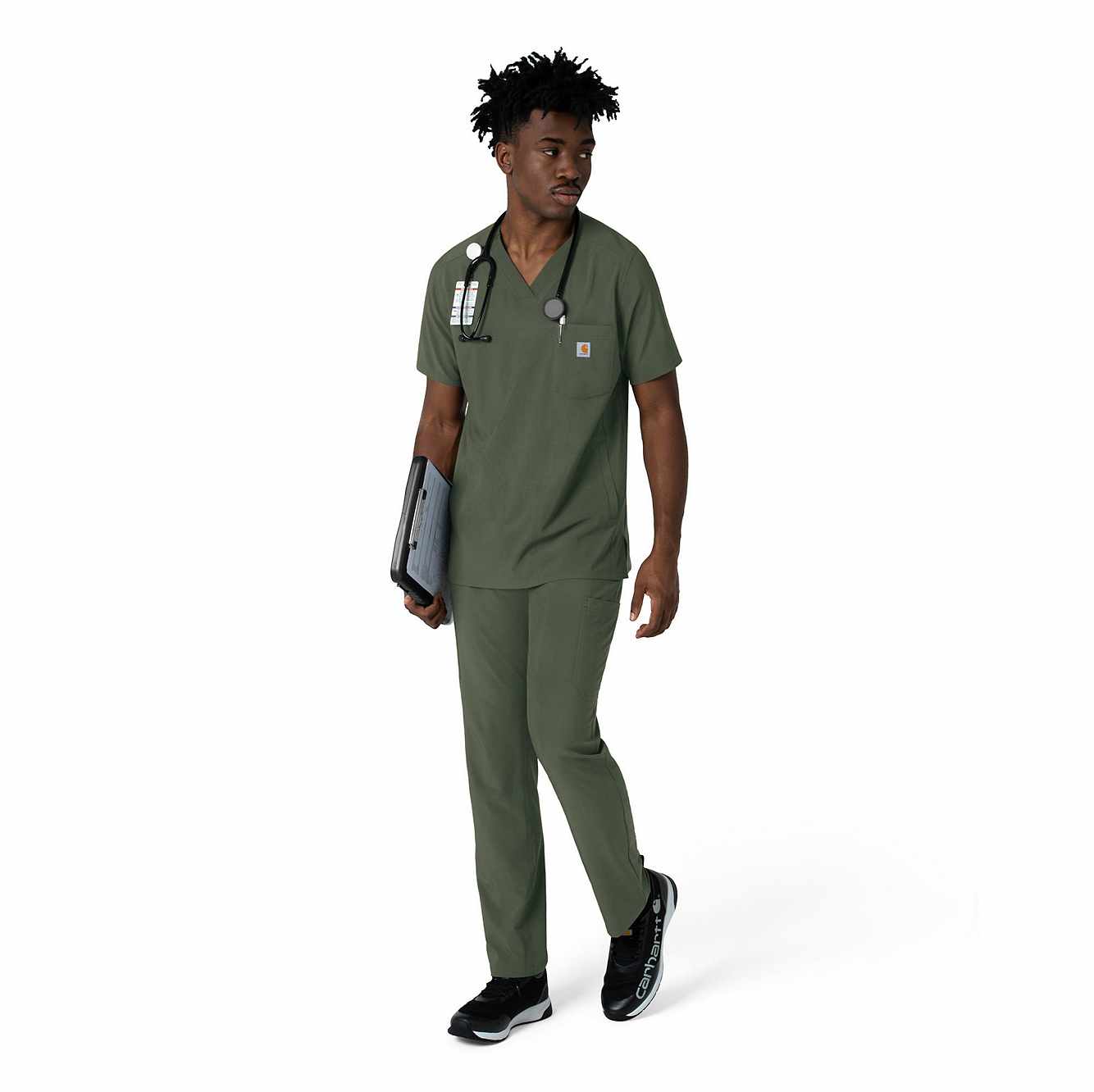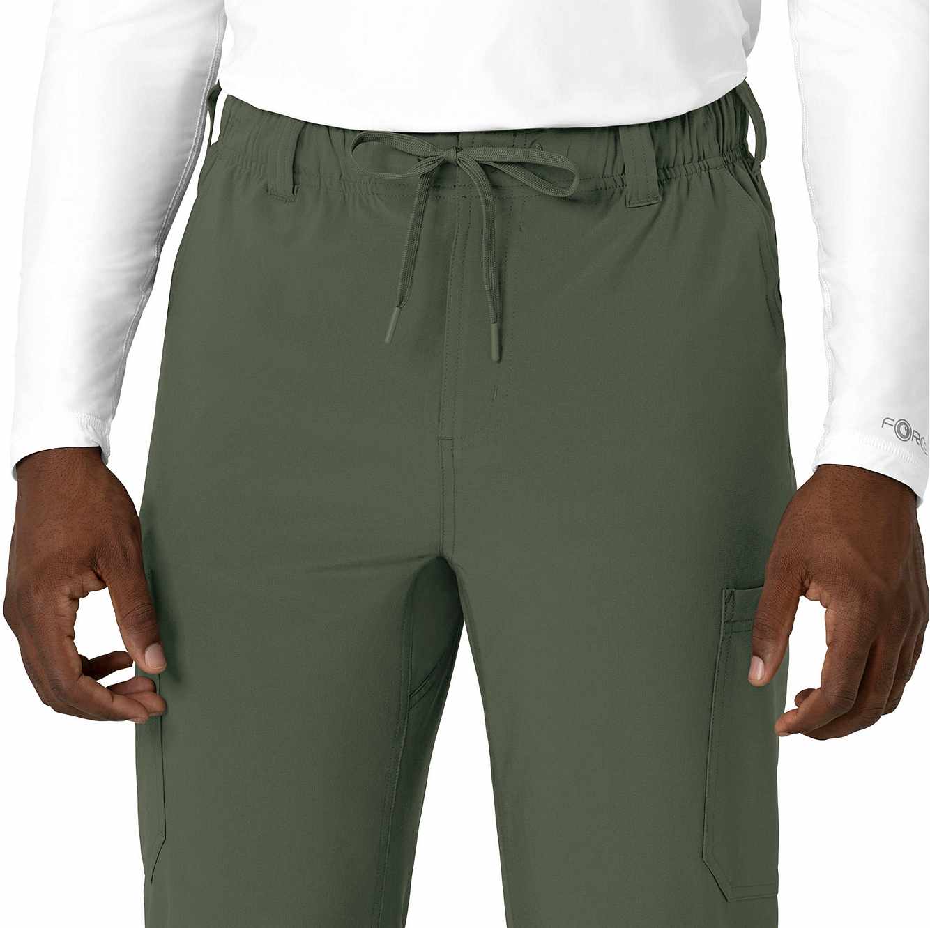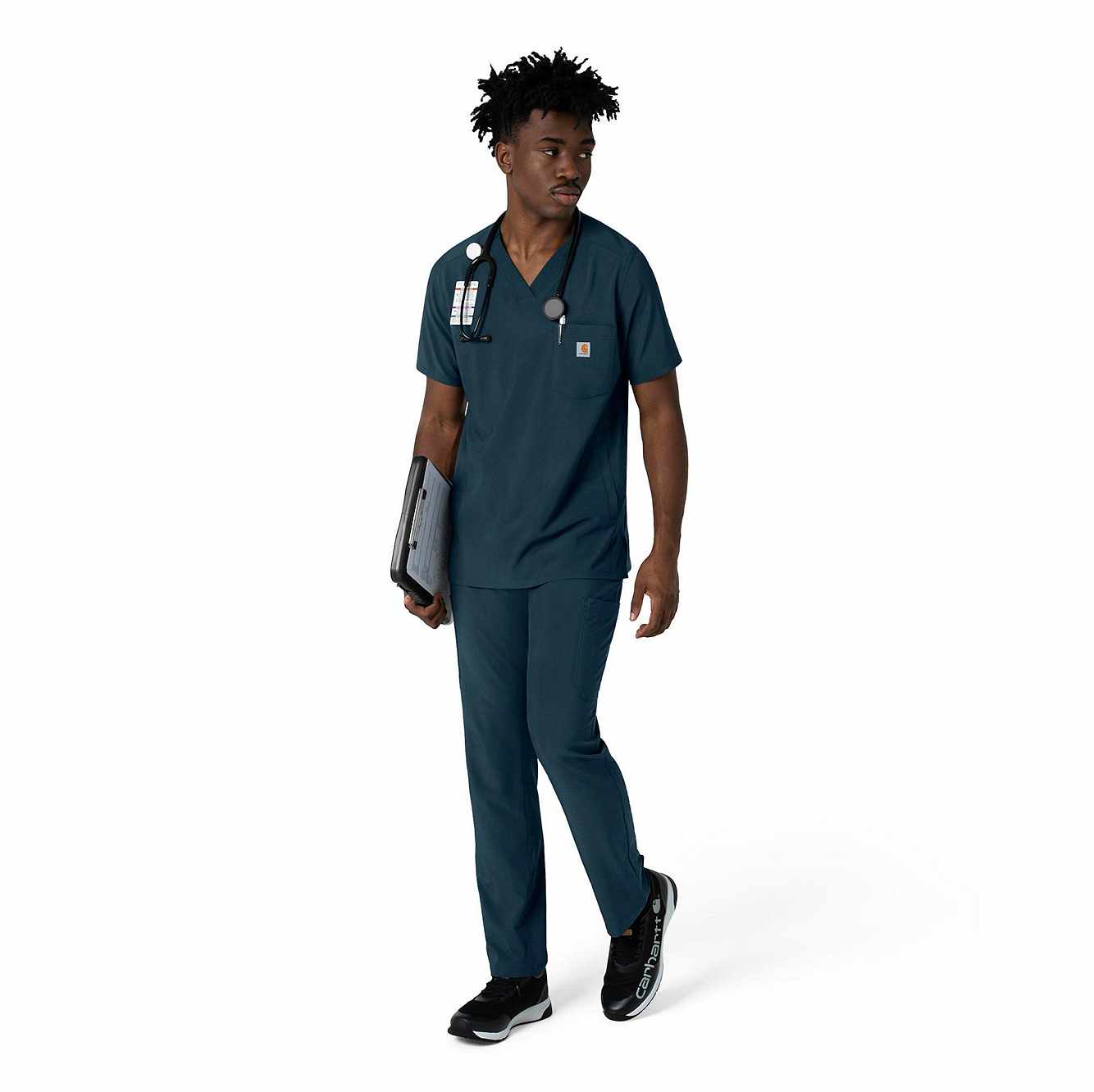 Show up to each shift in a fresh and modern look that delivers on utility with practical design. These men's scrub pants have a straight-leg fit that keeps things simple and streamlined. They're made with a soft and stretchy material that has micro ripstop built into it, making the most of durability for long-lasting wear. No worries when it comes to the essentials you need to keep your shift moving smoothly — these scrub pants are designed with pockets that hold it all. Two deep front pockets and two back pockets make it easy to access items and tools, while one hidden zip pocket at the right keeps small valuables out of sight. On the right is a cargo pocket with a pen slot plus utility loops that give you a convenient spot to secure things like your glasses or badge. On the left is another cargo pocket built with an interior mesh pocket for your phone. These scrub pants are part of our Force Cross-Flex collection that wicks sweat and dries fast, making them perfect for any shift.
