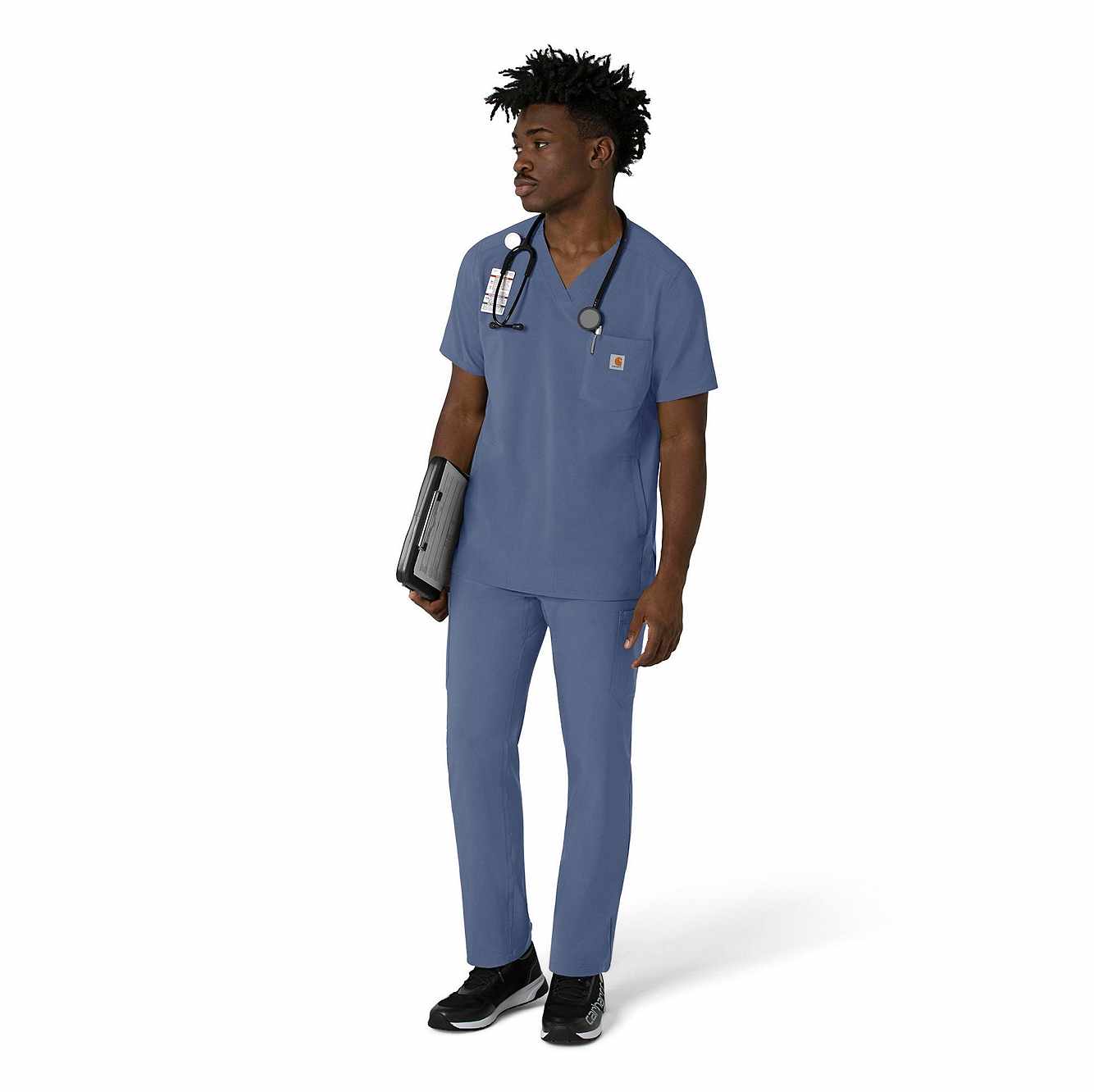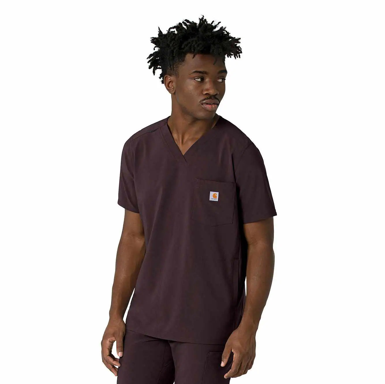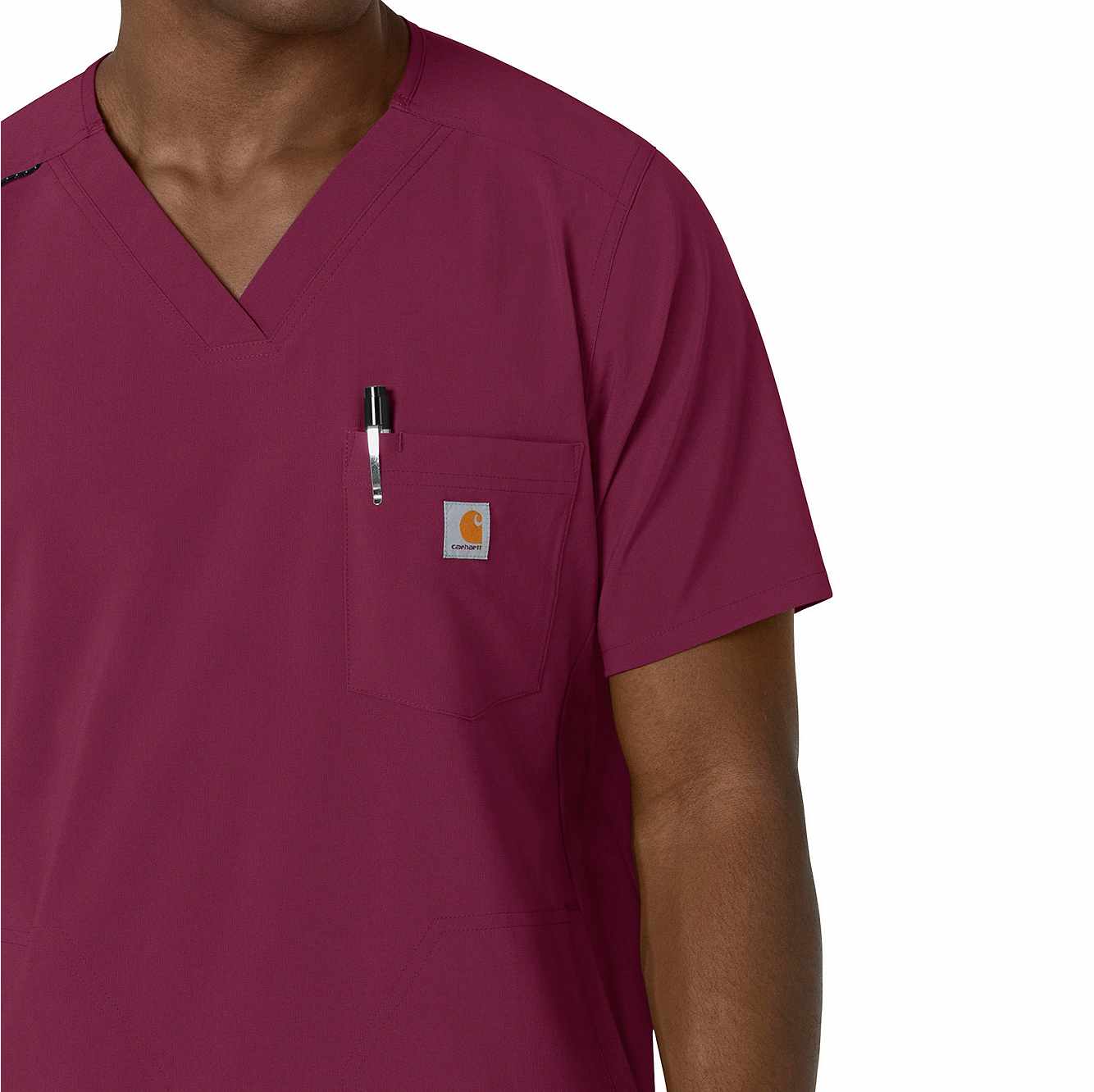 You need comfort and utility you can always count on, from the moment a shift starts until you're ready to head home. This men's scrub top gets it, and it's built to last through every demanding day. It's made with a soft, stretchy material that includes micro ripstop for durability. Keep your most-used items right where you need them in a chest pocket that has a pen slot, plus two larger pockets on the side that allow for easy access to tools and supplies. Whenever you reach up high or stretch across a surface, you'll get full range of motion with knit panels on the back arm. Side hem vents add even more flexibility while creating a clean look that lets your scrub top drape with ease over your scrub pants. Secure your badge in place with a loop at the shoulder. Made for all the demands of your day, this scrub top wicks moisture to keep you confident and dries quickly to keep you comfortable.