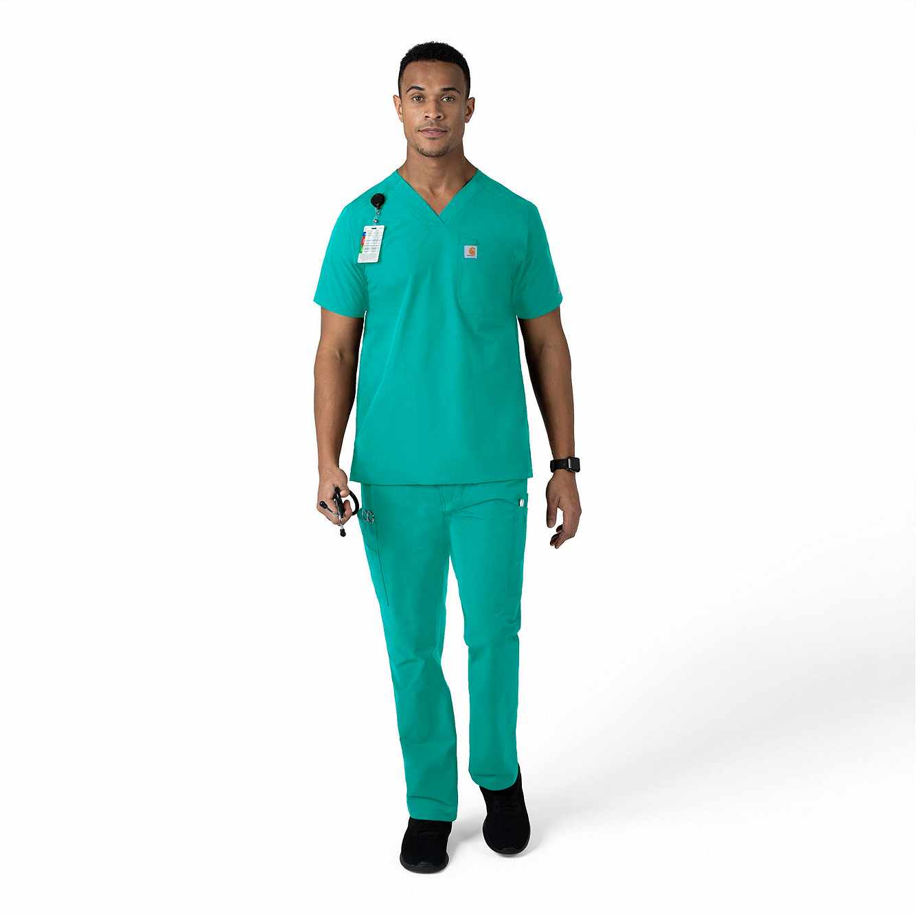 Carhartt Men’s Force Essentials Straight Leg Pant is built with all the features men ask for in medical scrubs. These scrub pants are packed with convenient features like a functioning zipper fly, snap closure, and a full elastic waistband with 7 belt loops total! With the addition of the fully constructed waistband with a drawstring, these scrubs allow you to achieve the perfect fit with every wear. The durable stretch ripstop fabric is reinforced with double-needle stitching at the inseam and added comfort thanks to the wider 7 3/4 leg opening. The fabric is enhanced with FastDry, Rugged Flex Stretch and Stain Breaker Technology so during your hectic shifts the fabric stays dry, moves with you and those inevitable stains are released with ease. Functionality is always a factor when designing Carhartt scrubs and these men’s scrub pants were built with 10 pockets! Two easy to access front and back pockets, a triple cargo pocket and angled top accessory pocket with a pen holder. An additional cargo pocket rounds out all your compartment needs for storing your much needed essentials. You won’t find a more functional pair of men’s scrub pants than this!