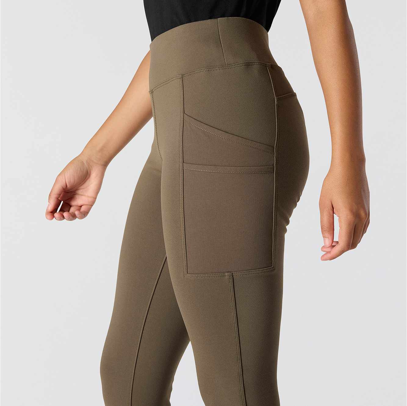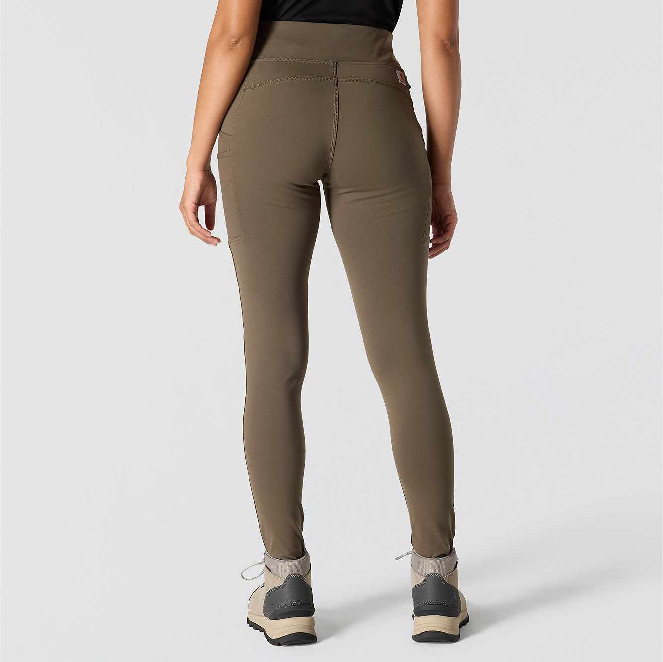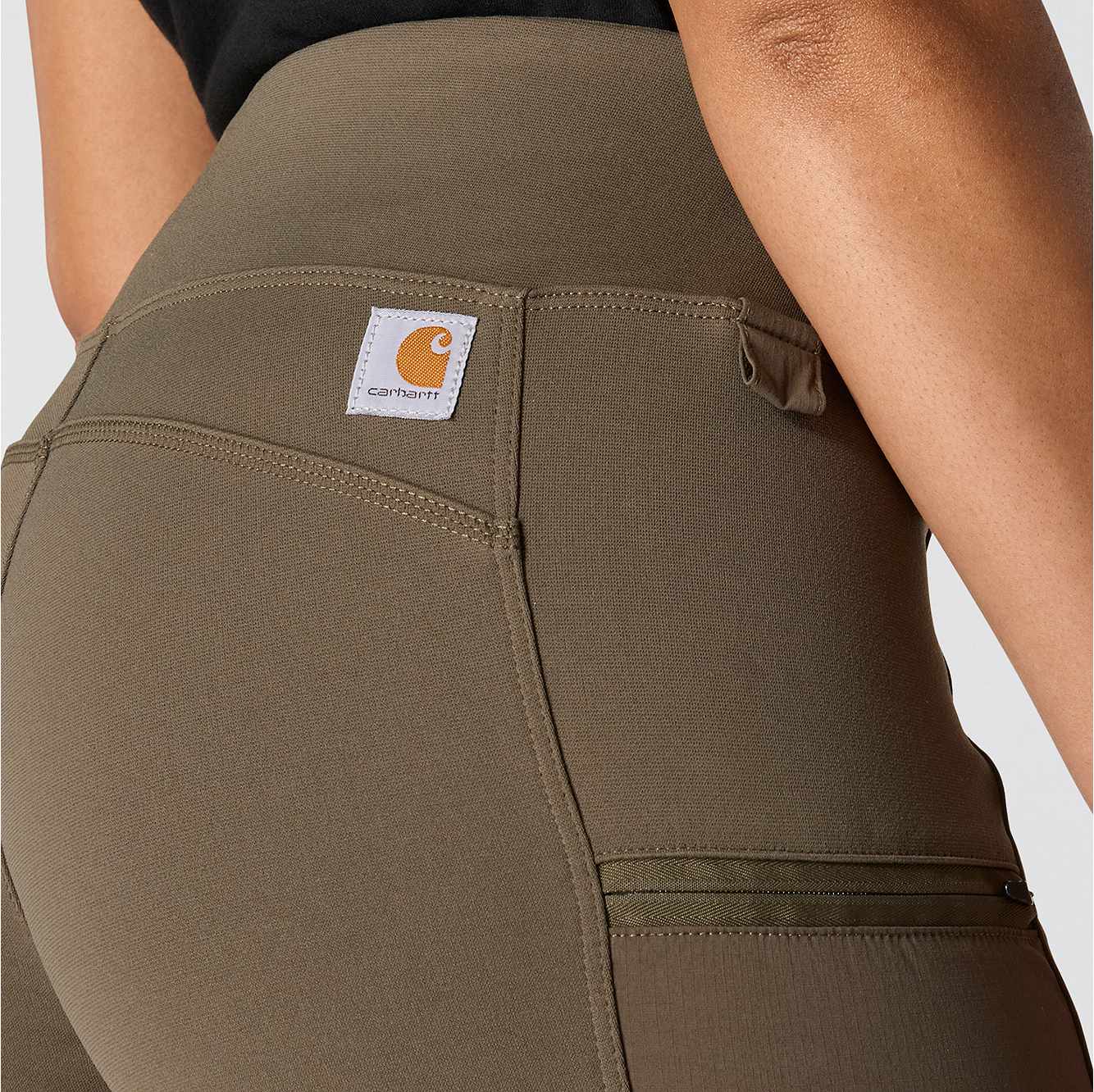 A comfortable essential done the Carhartt way. These women's mid-rise leggings give you the ultimate mix of flex and durability. They're made from lightweight fabric that wicks sweat and fights odor. Designed with extra stretch between the legs, these pocket leggings give you the range of motion you need when climbing ladders, riding horses, or crawling under the sink to fix a pipe.