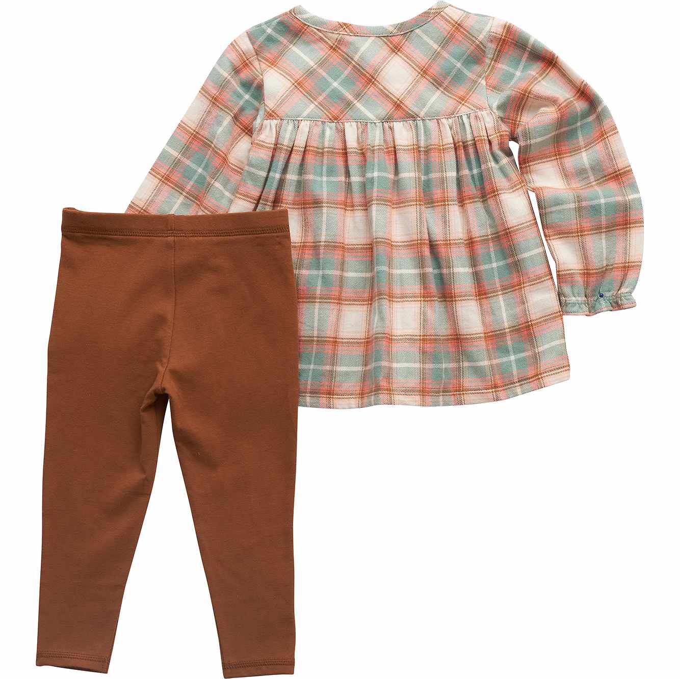 Carhartt tough has never looked so downright adorable. This baby girls' set includes a top made of yarn-dyed flannel and stretchy cotton leggings. Both pieces are durable enough for the hard work of being a baby but gentle on her skin.