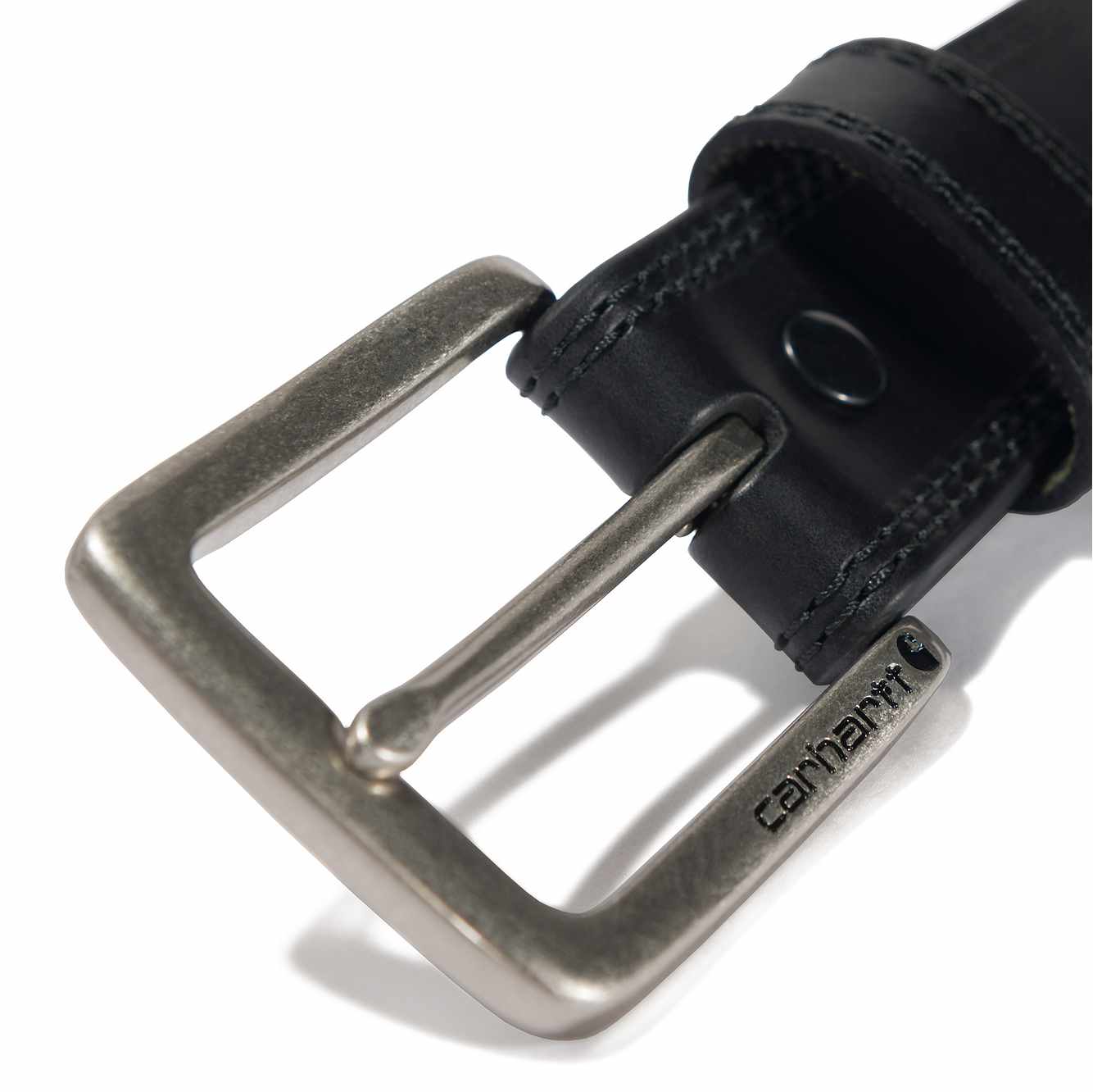 Get two belts in one with this men's reversible belt. Choose from a black side or a brown side, both made of full-grain leather. It's finished with a debossed Carhartt logo on the rugged center-bar buckle.