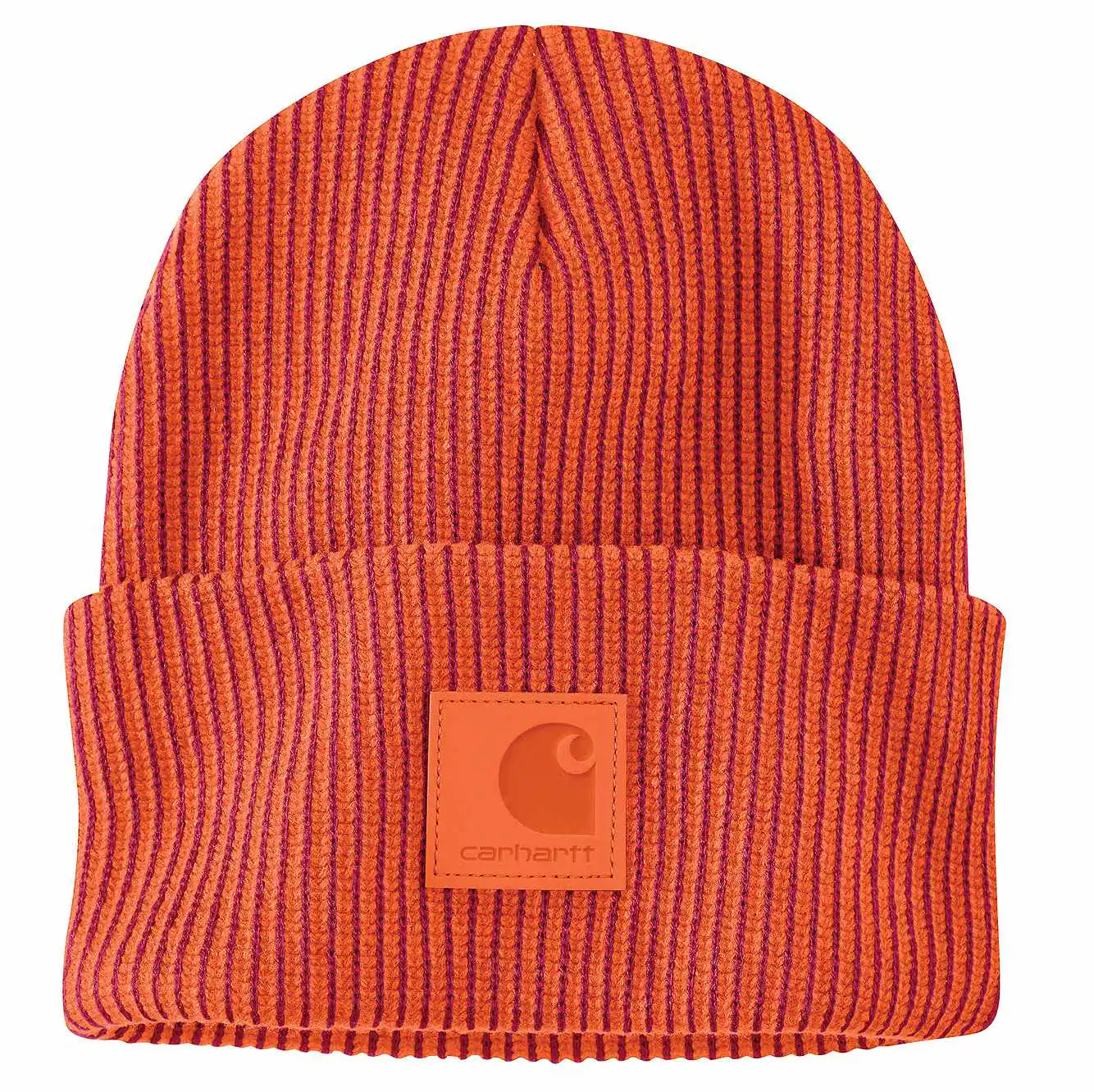 This men's plaited beanie features a traditional hand-knit look. The soft acrylic rib-knit features a stretch fit to seal in warmth. A leather patch accents the cuff.