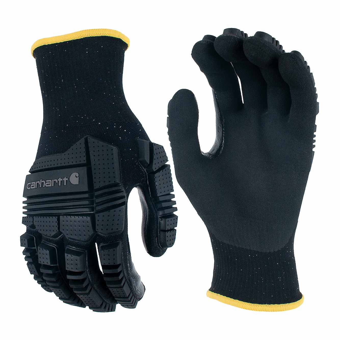 For high dexterity jobs, our men's Knuckle Guard Nitrile Work Gloves provide secure grip, natural dexterity, and padded protection for the back of the hand and fingers. They offer a good grip surfaces. Touch-sensitive fingertips allow for phone and tablet use, and reinforcement at the thumb saddle increases durability.