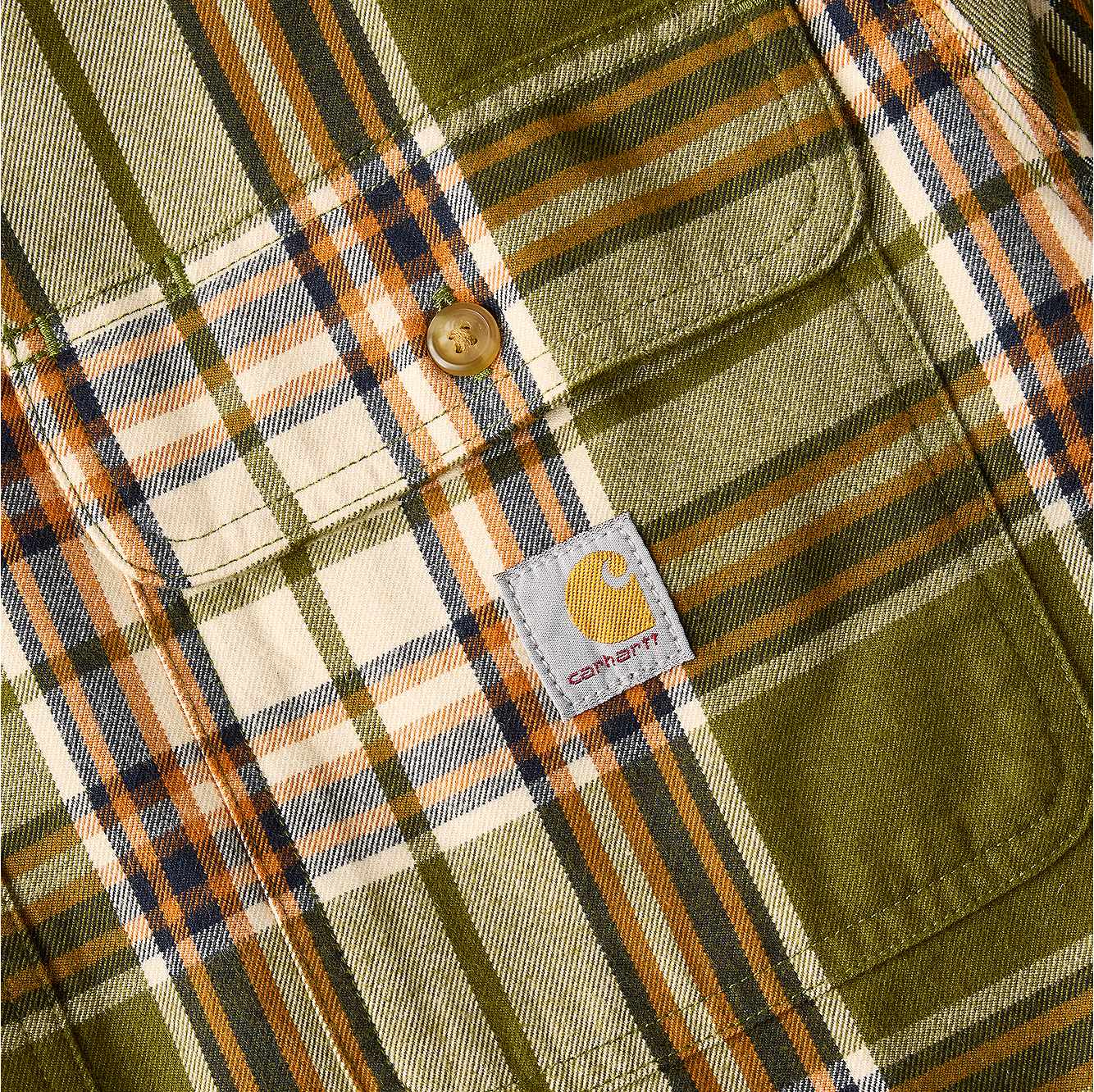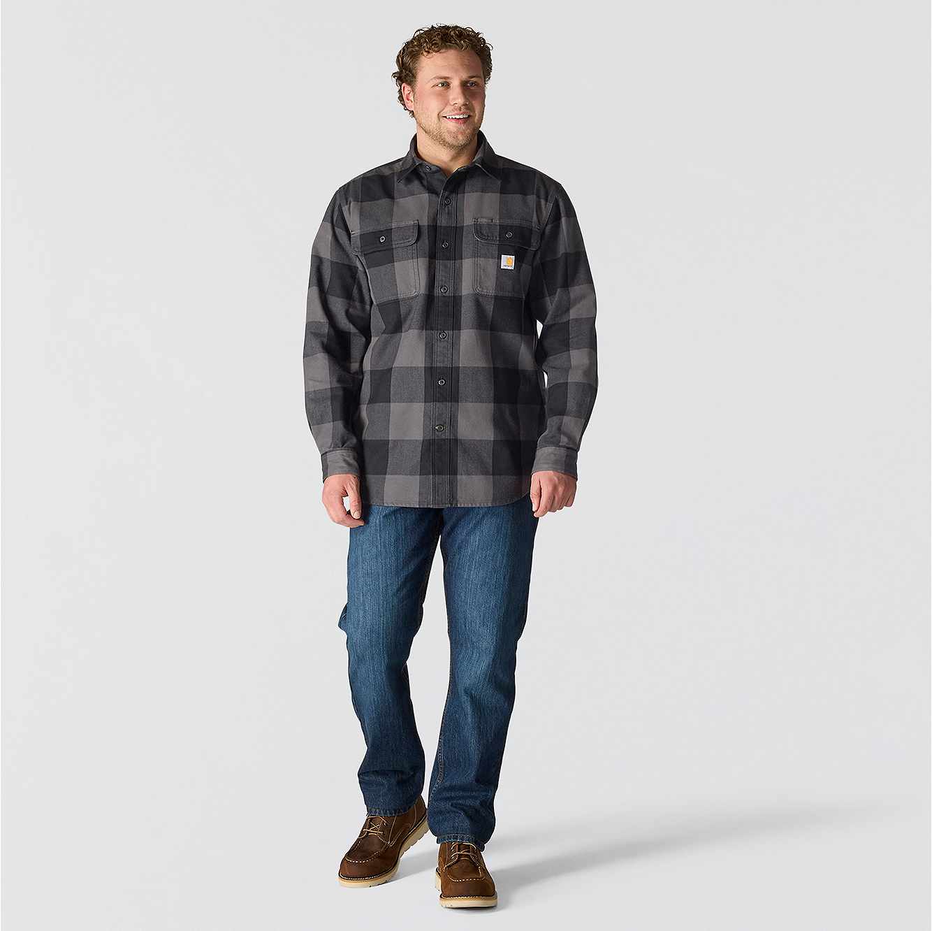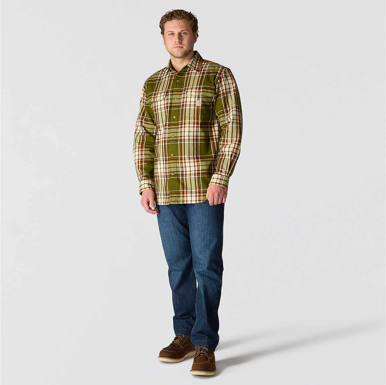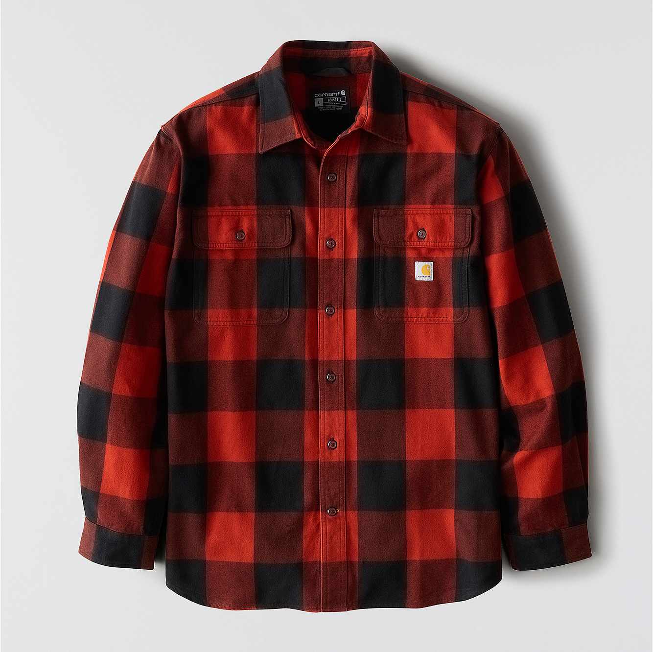 Built for cooler weather and rugged days, this men's Carhartt flannel shirt features a heavyweight cotton flannel with a brushed finish for a soft feel. A loose fit allows for easy layering and plenty of room to move.