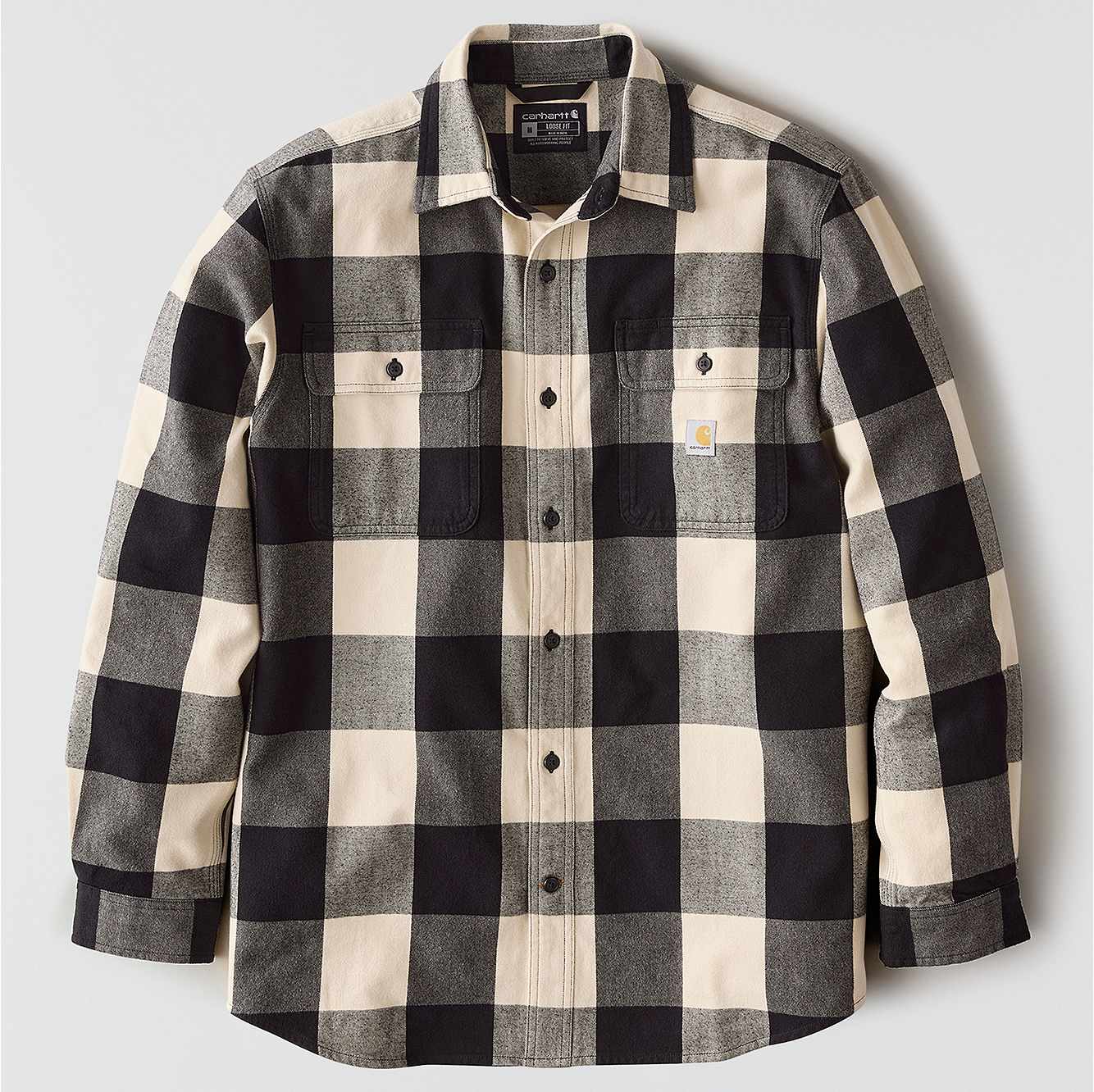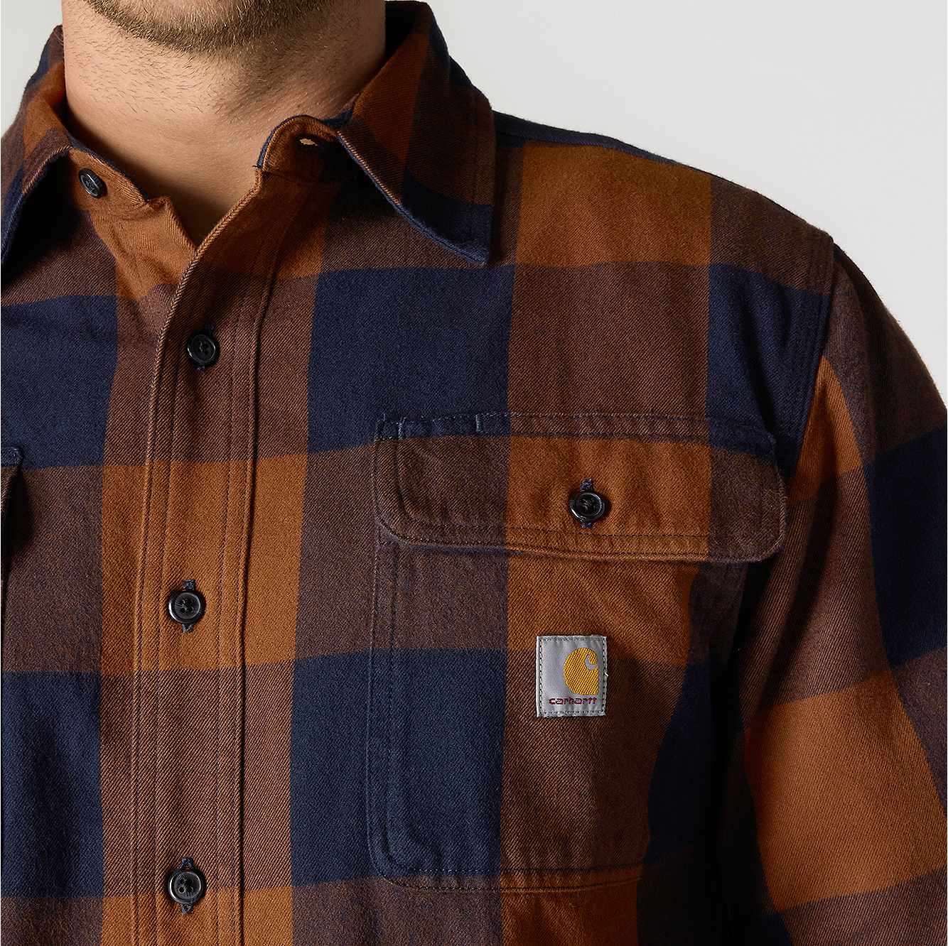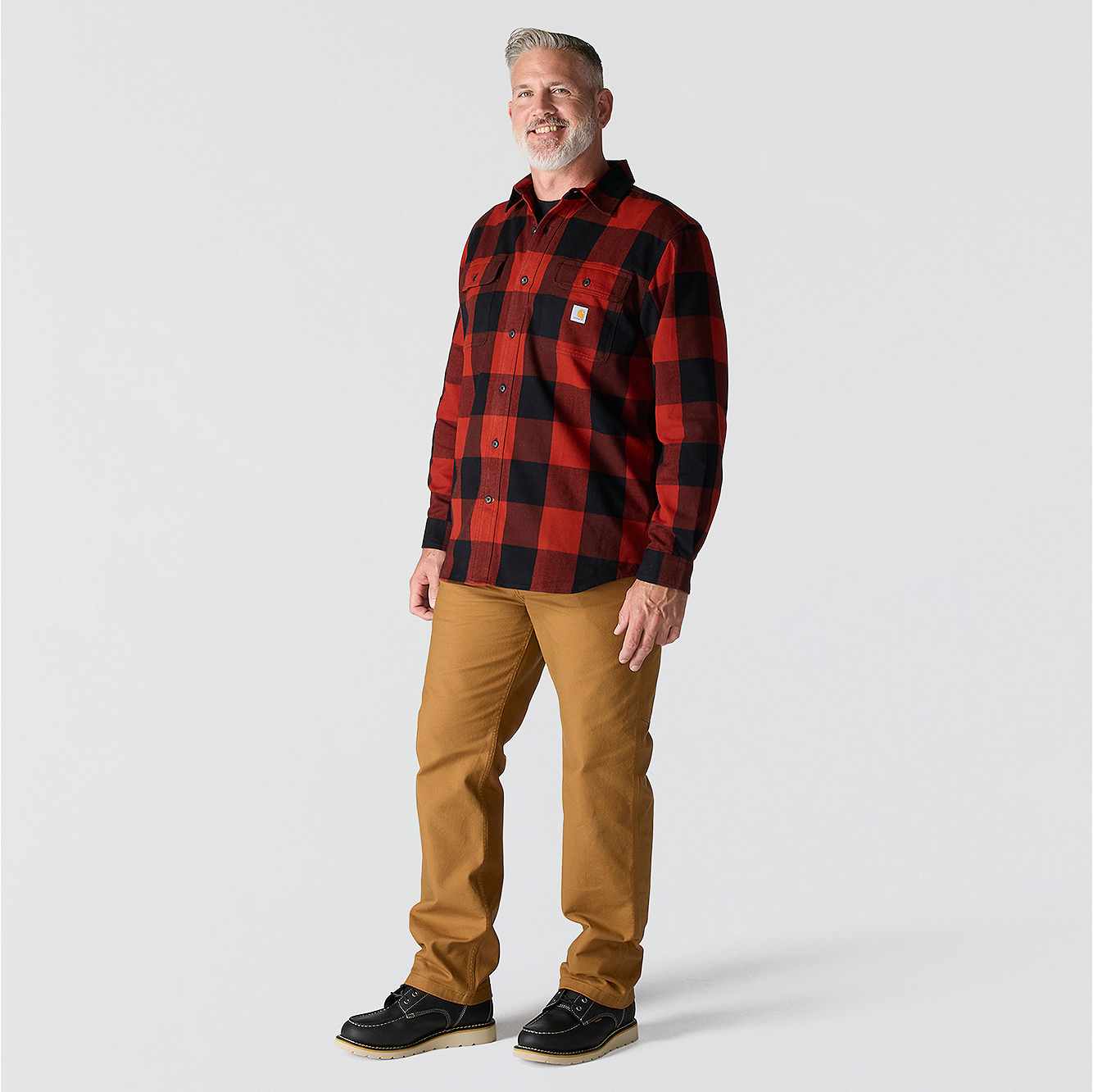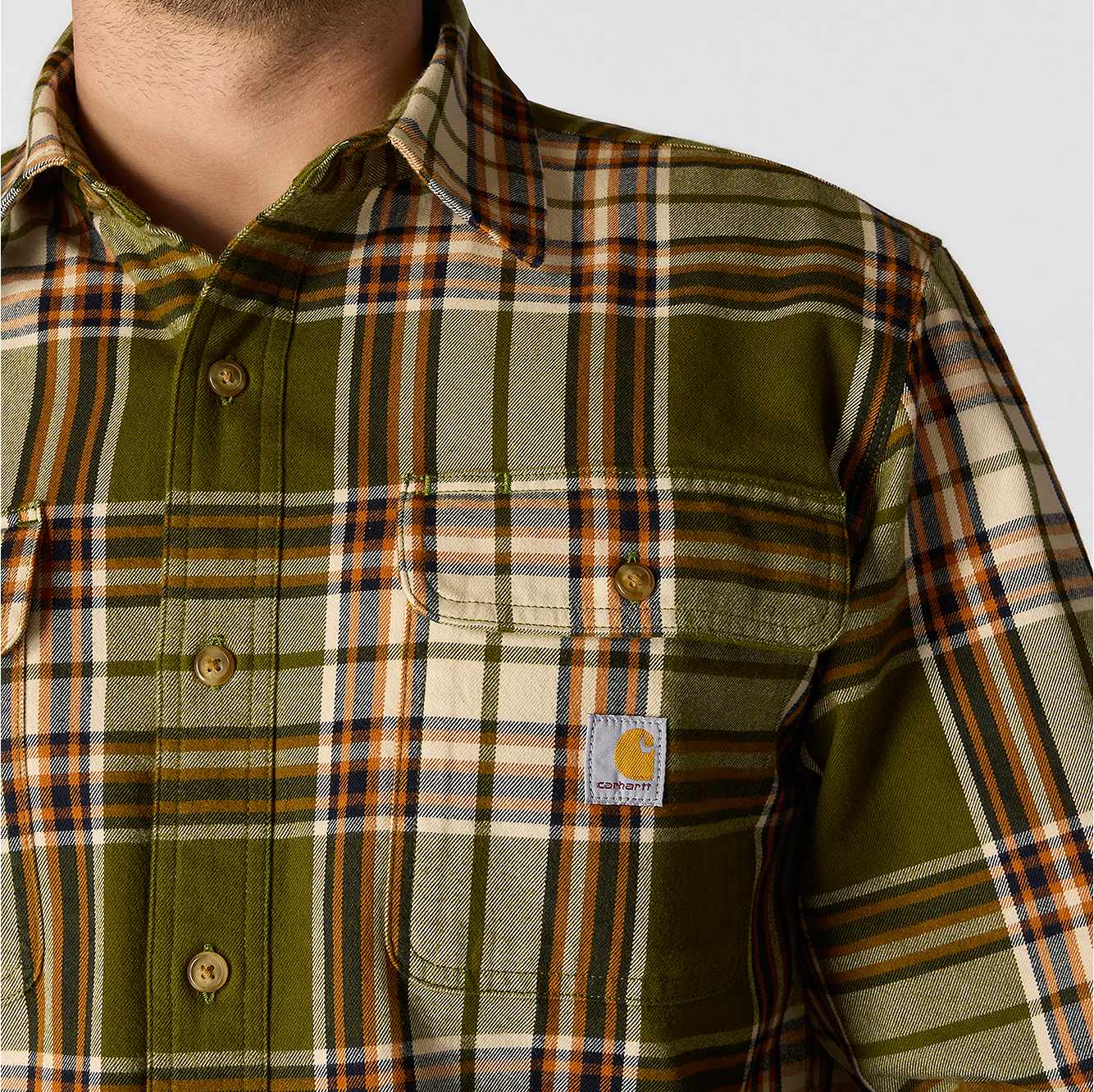 Built for cooler weather and rugged days, this men's Carhartt flannel shirt features a heavyweight cotton flannel with a brushed finish for a soft feel. A loose fit allows for easy layering and plenty of room to move.