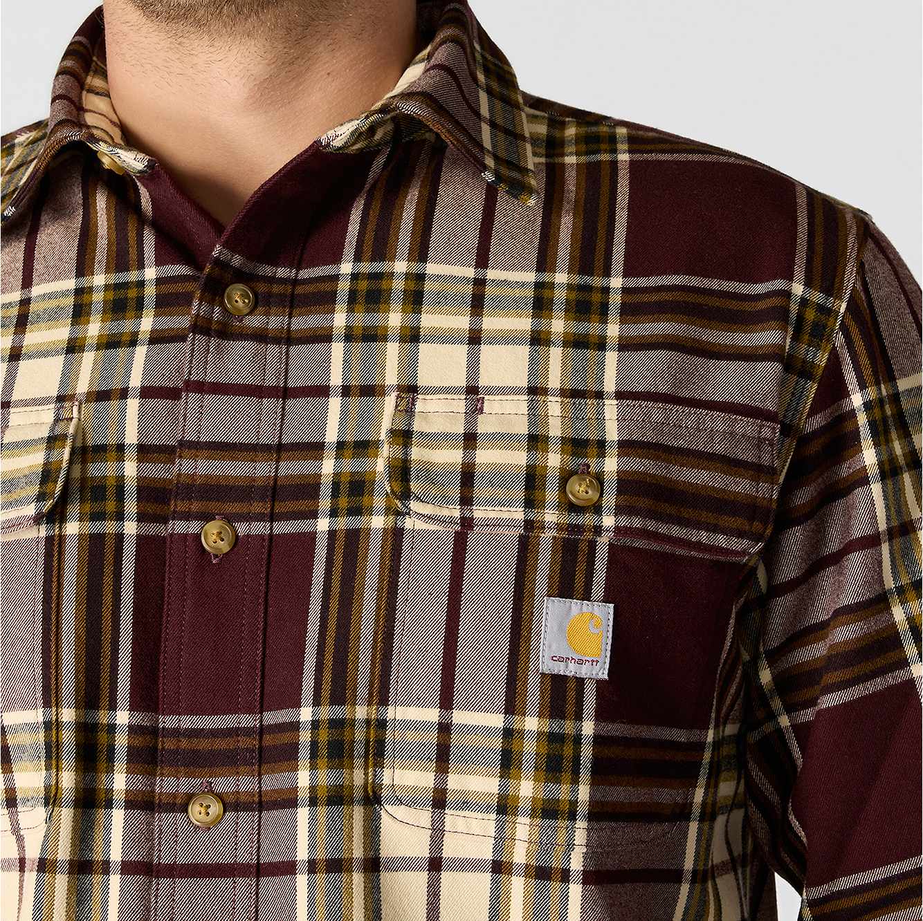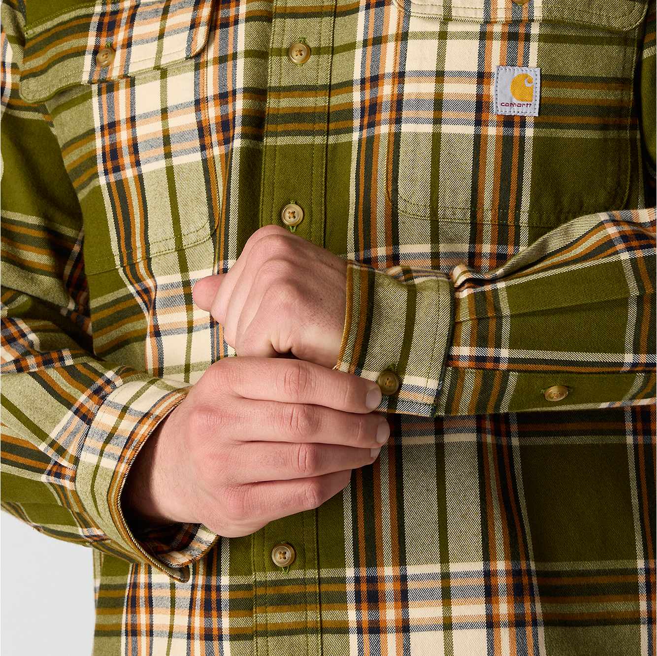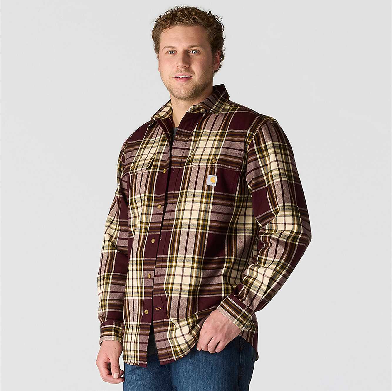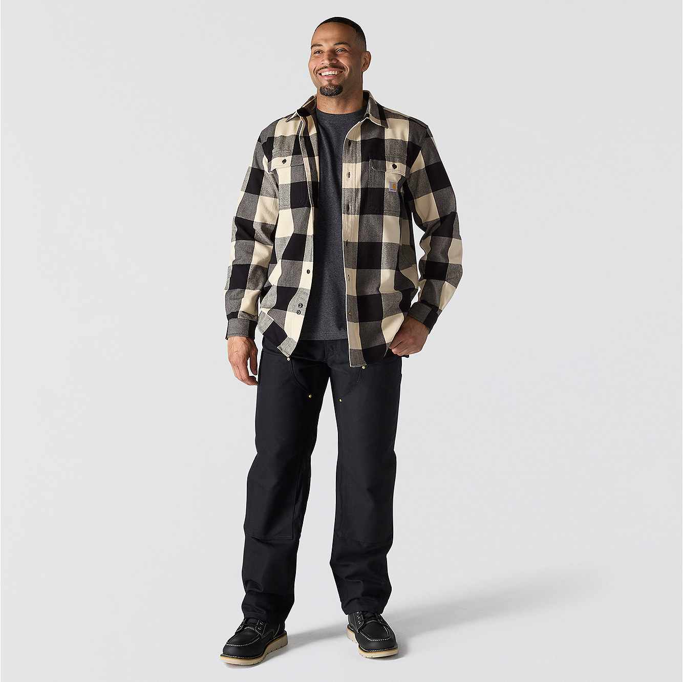 Built for cooler weather and rugged days, this men's Carhartt flannel shirt features a heavyweight cotton flannel with a brushed finish for a soft feel. A loose fit allows for easy layering and plenty of room to move.