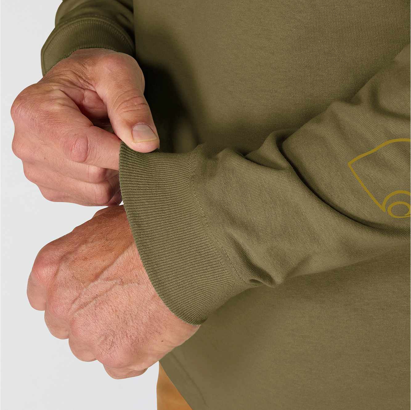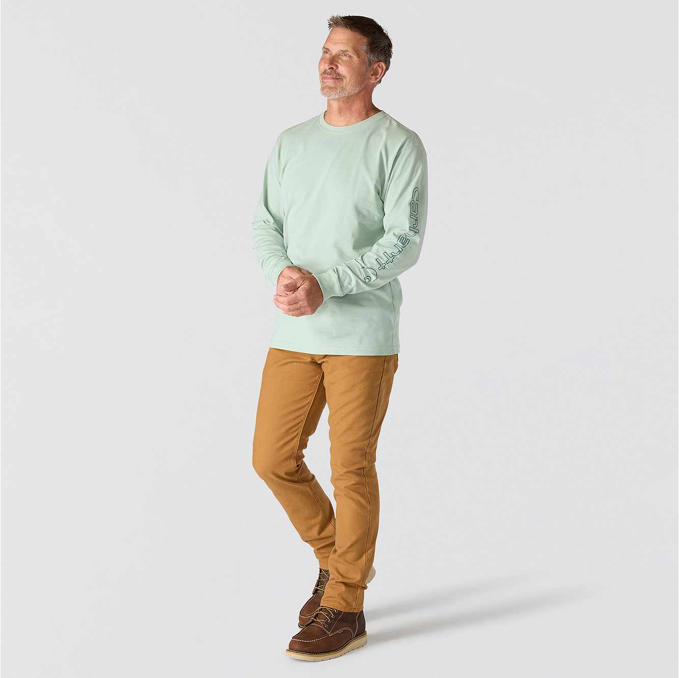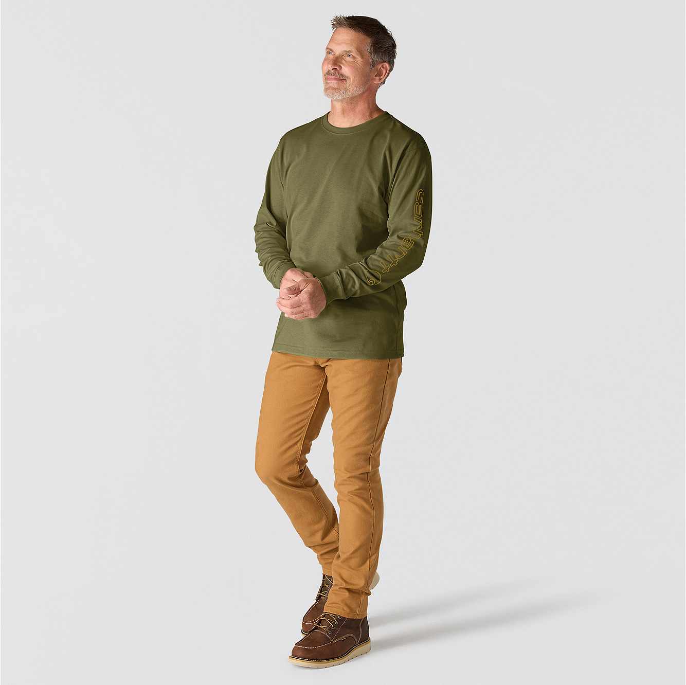 Since 1889, Carhartt has made durable workwear you can count on as you tackle the toughest jobs. This men's long-sleeve t-shirt bears the name proudly on the sleeve. It's made of heavyweight cotton jersey and cut generously for a roomy fit.