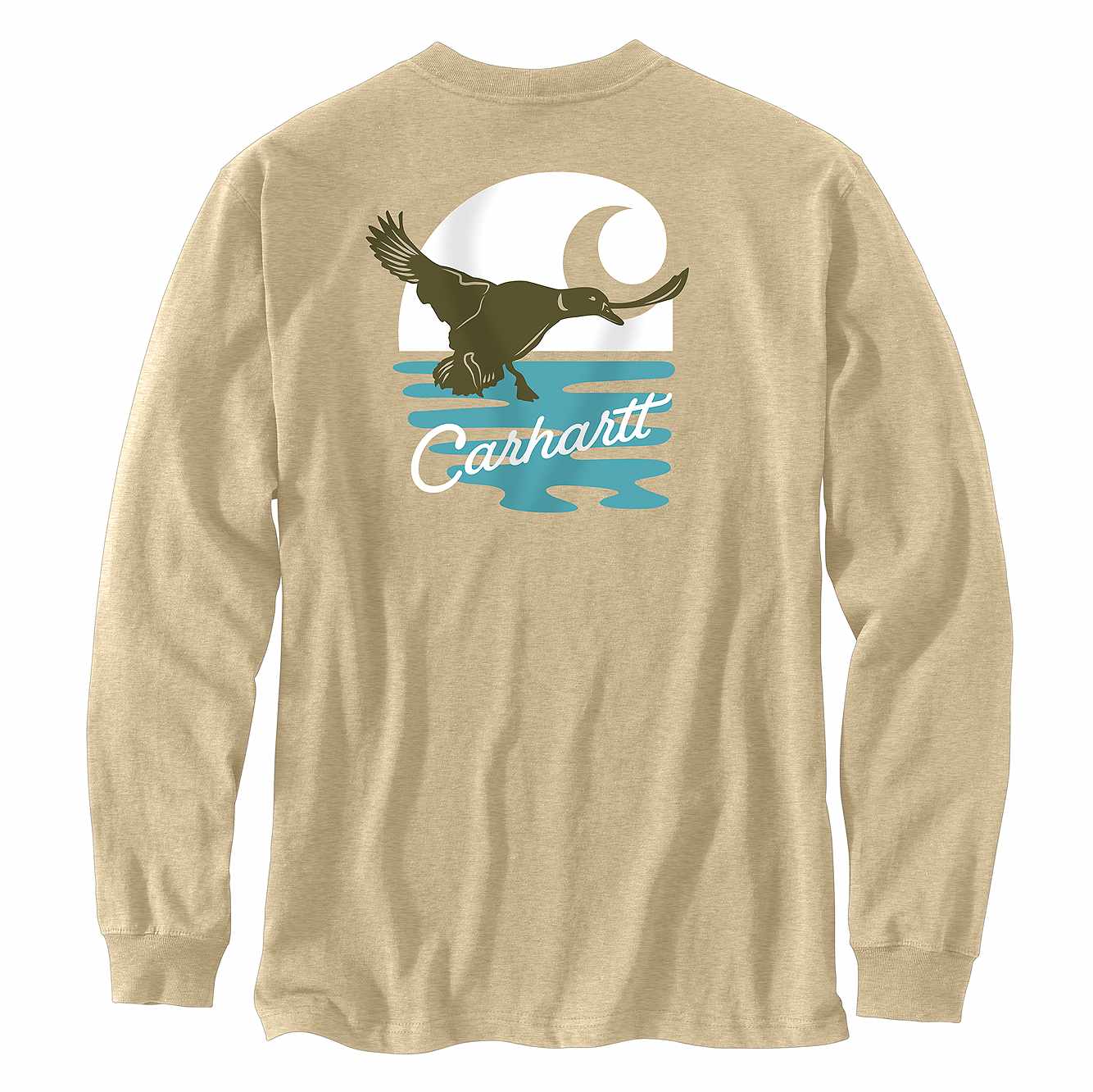 Work, camp, or shop, this men's long-sleeve graphic tee is a go-to for the daily routine. Its heavyweight cotton jersey stands up to the test of time, and a loose fit offers extra room to move, bend, and twist. A Carhartt duck graphic lends it a classic feel.