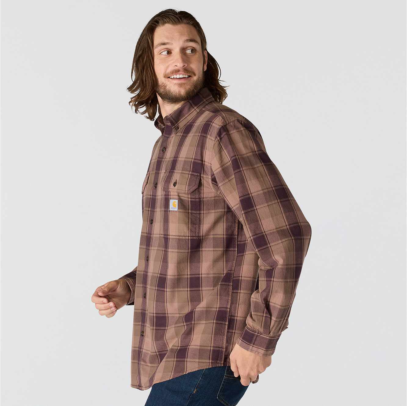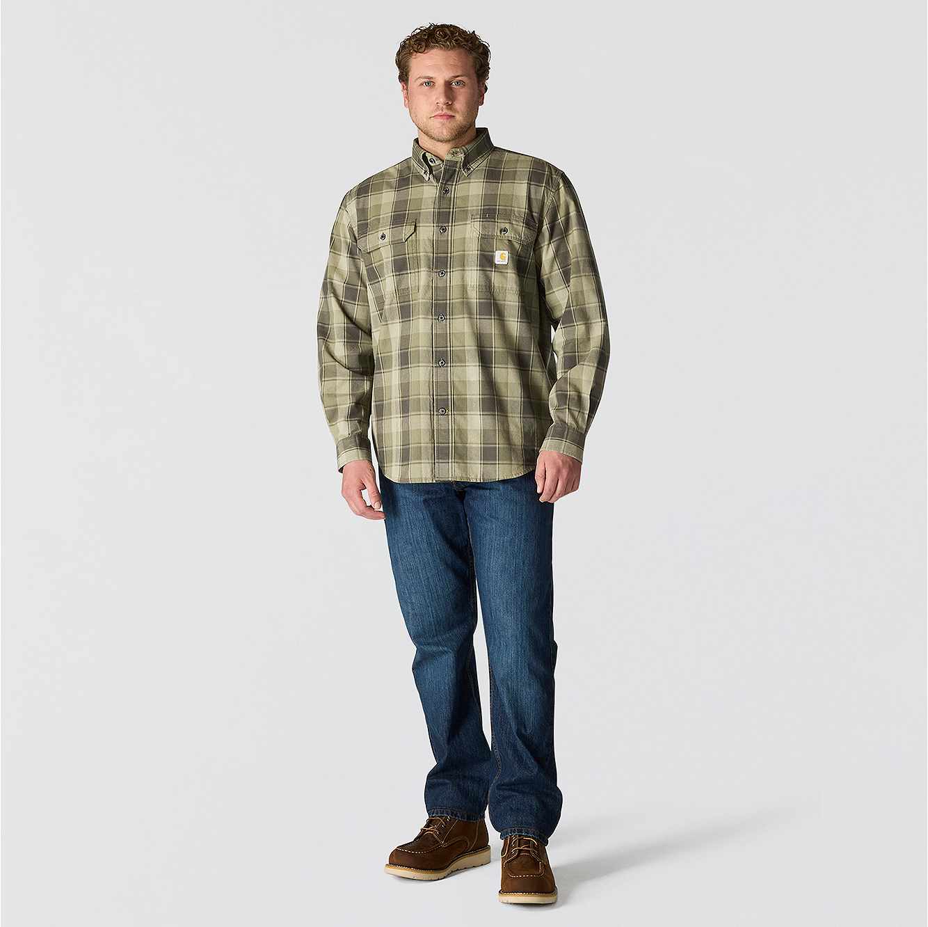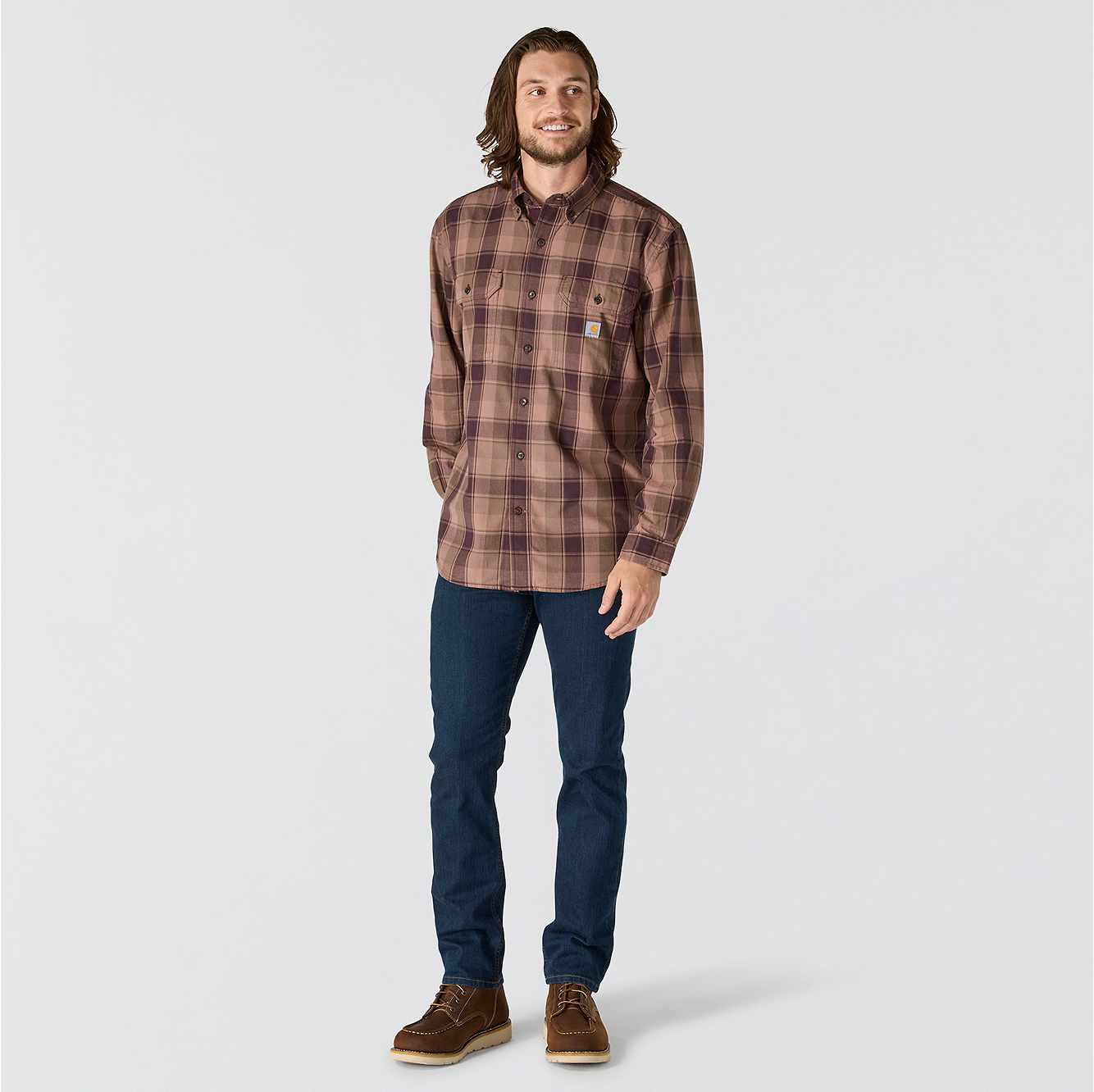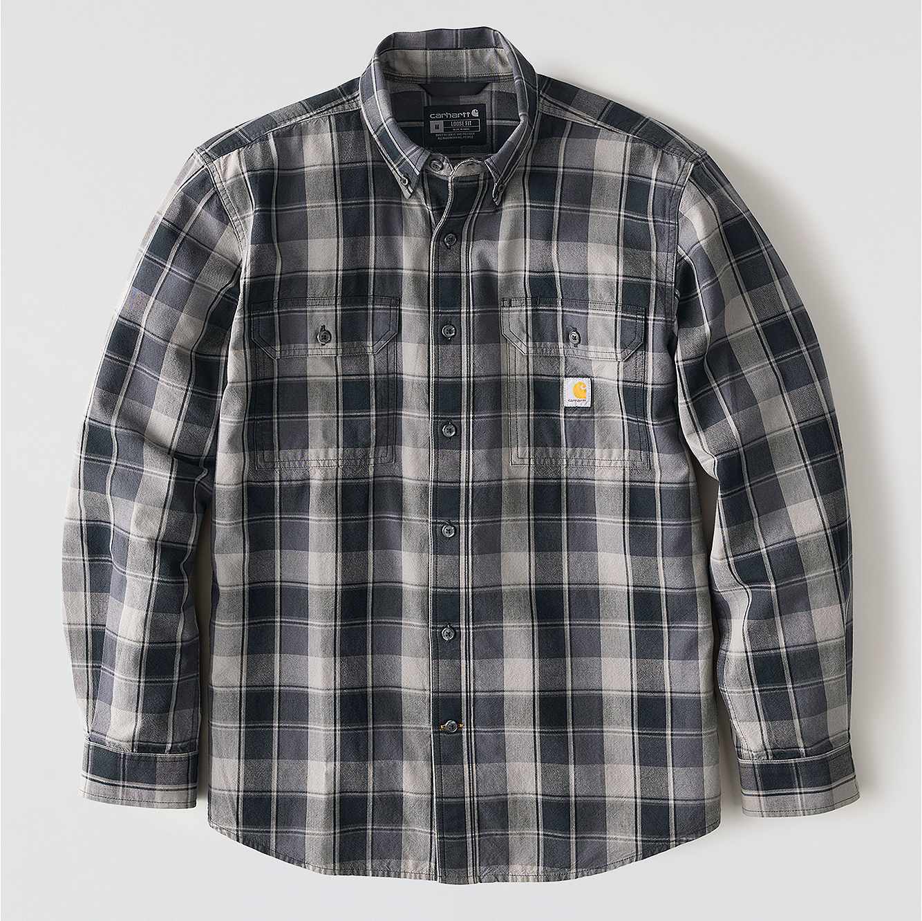 Workday to weekend, this men's chambray button-down features soft midweight ringspun cotton weave for durability. A loose fit allows for easy layering and a natural range of motion.