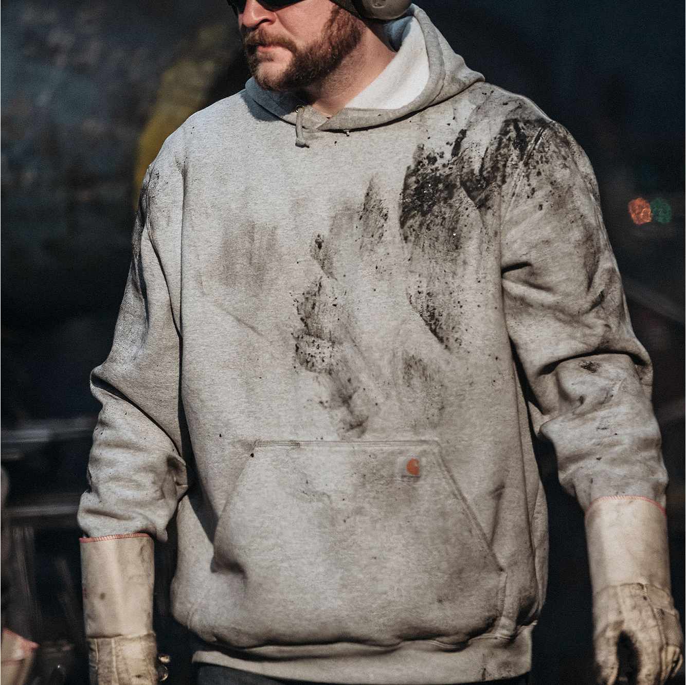 From job site to weekend projects, this men's sweatshirt offers easy-wearing warmth. Carhartt durability and familiar hoodie comfort mean you can swing a hammer or relax with equal ease. A midweight cotton blend offers everyday versatility.