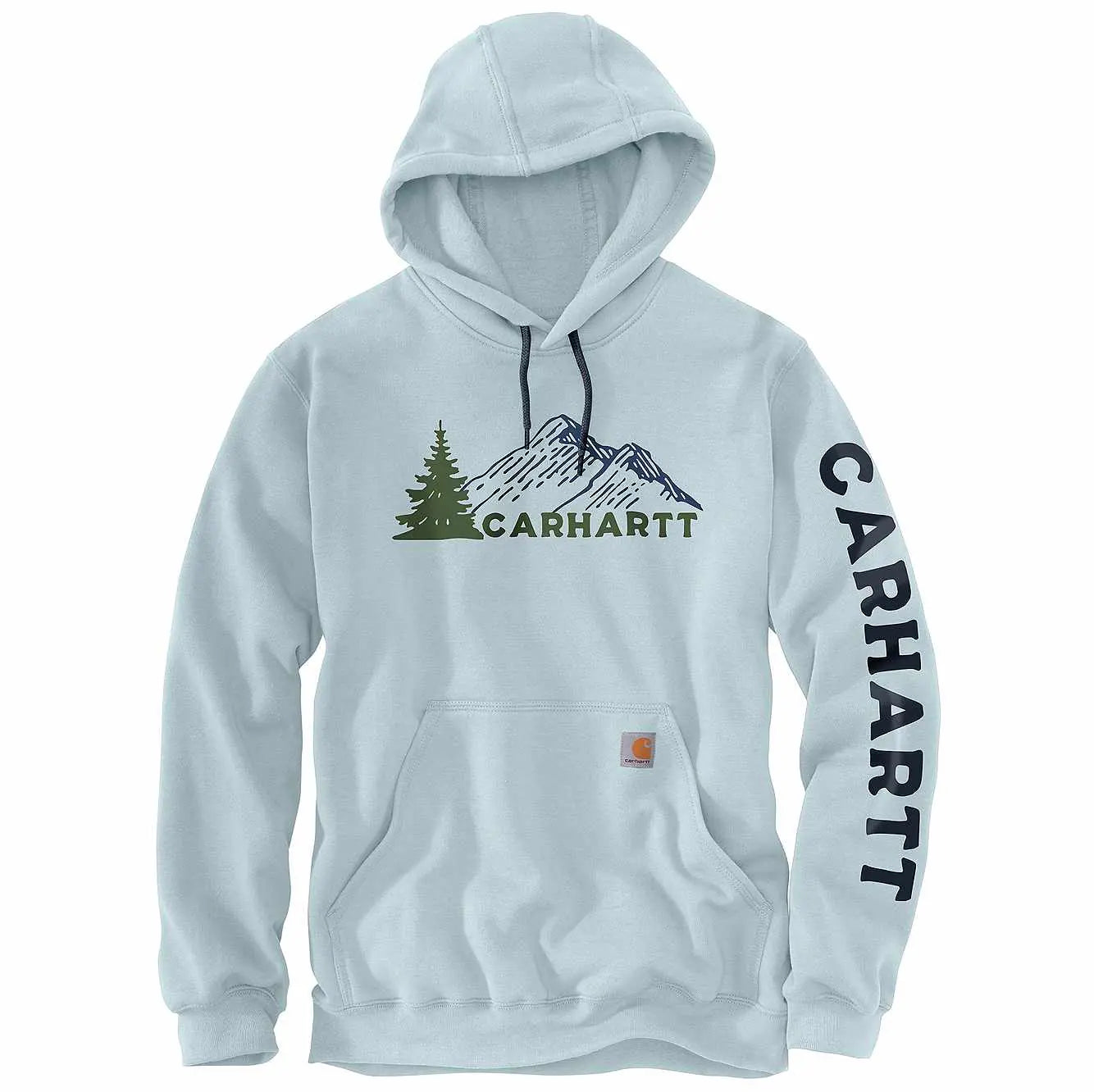 Versatile midweight warmth and casual comfort. This men's cotton-blend graphic hoodie is a go-to layer for cool mornings and everyday wear. A mountain graphic sits front and center. A loose fit allows for easy layering and unrestricted movement.