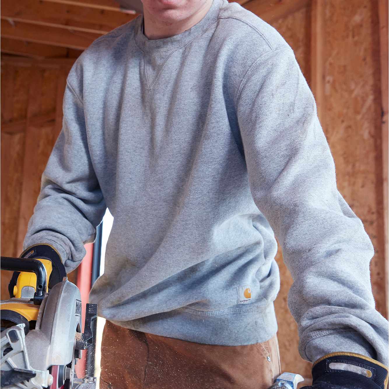 Cut the morning chill with this men's sweatshirt. A traditional cotton blend makes for versatile layering. Carhartt durability and familiar sweatshirt comfort mean you can haul lumber or relax with equal ease. A midweight cotton blend offers everyday versatility.