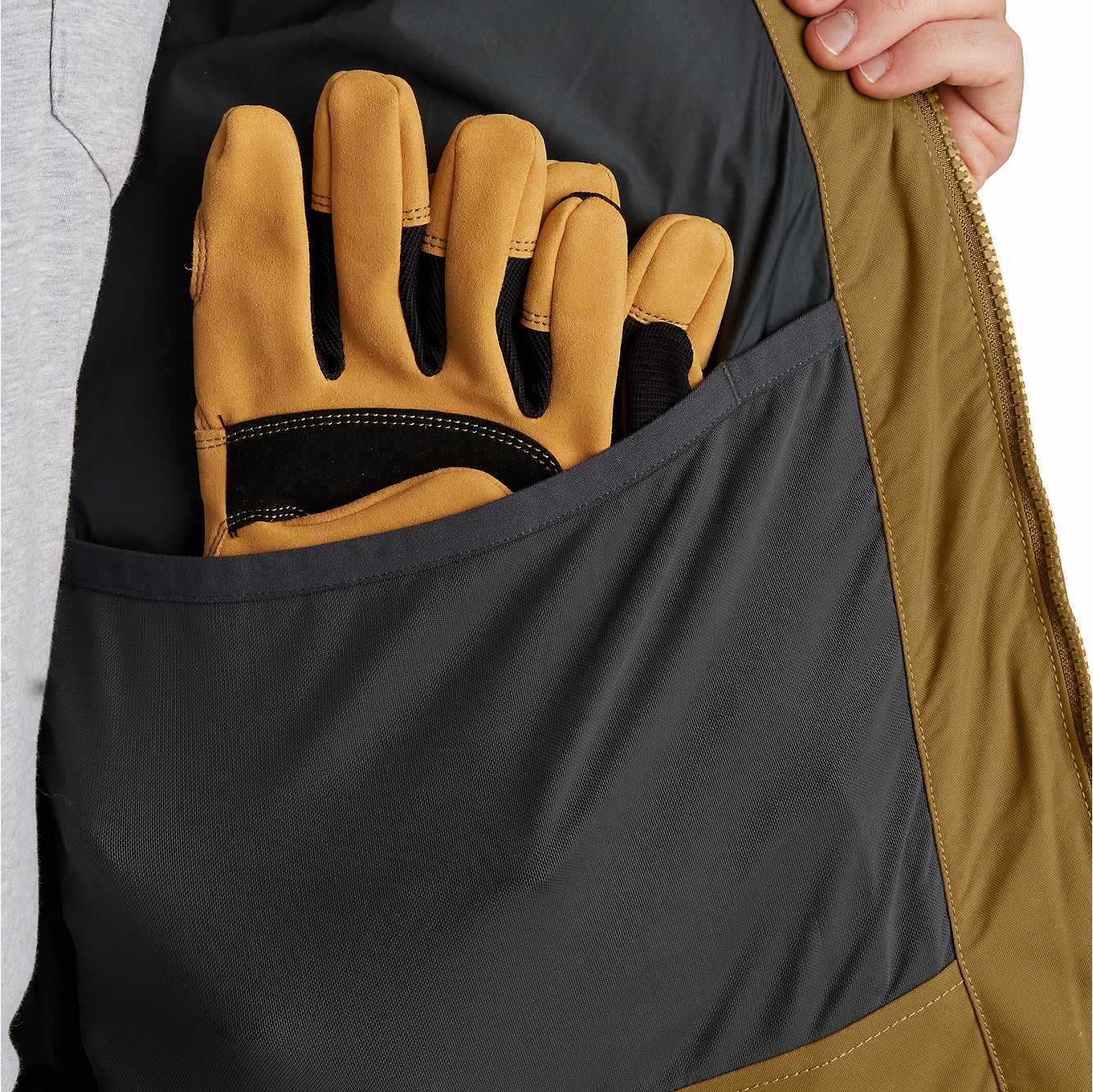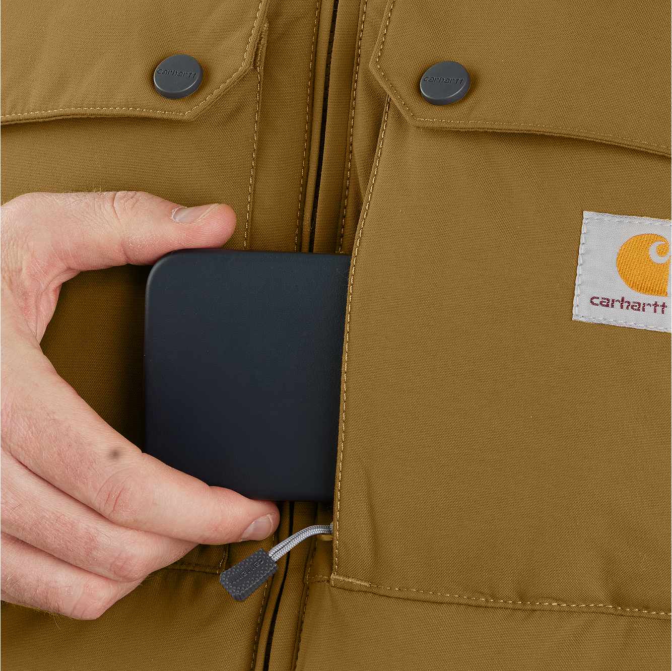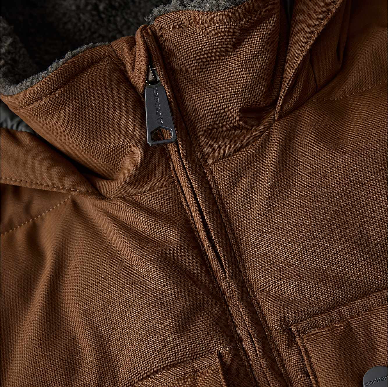 When it comes to wet weather, it's all about the right gear. This men's jacket offers insulated warmth to keep you working. Wind resistant and water repellent, it comes equipped with synthetic down insulation plus a sherpa fleece lining in the upper body to seal in heat. Pockets inside and out offer plenty of storage.
