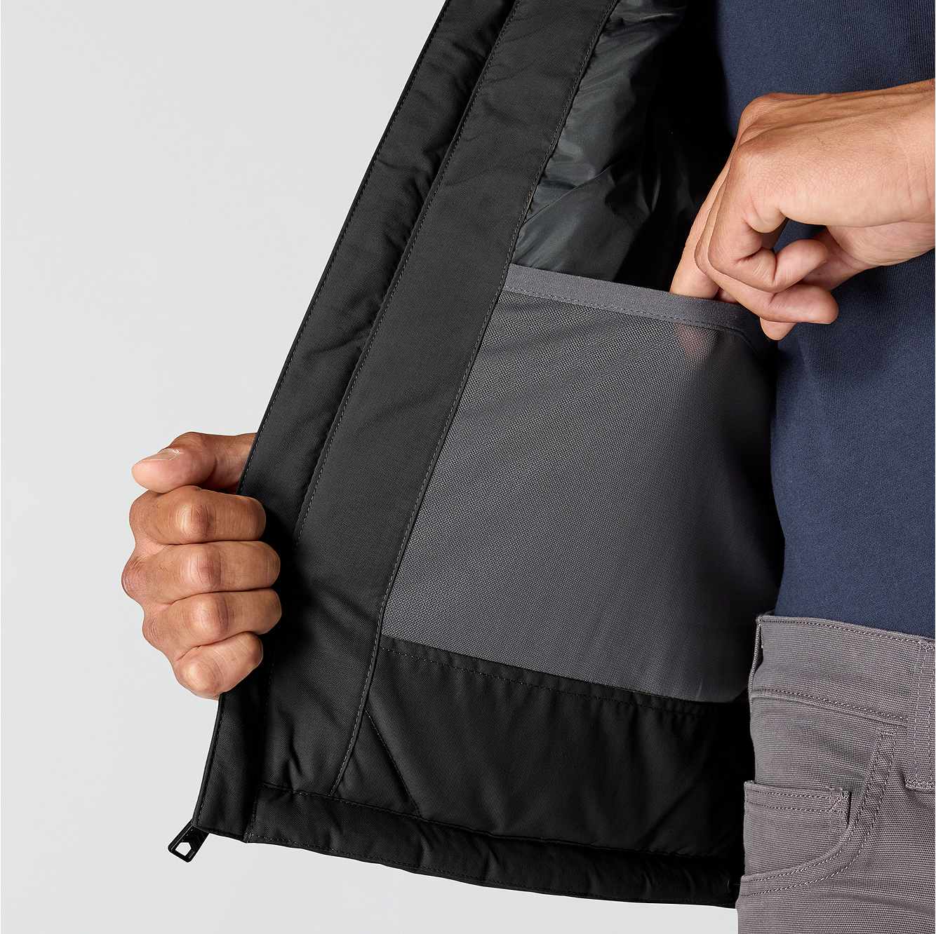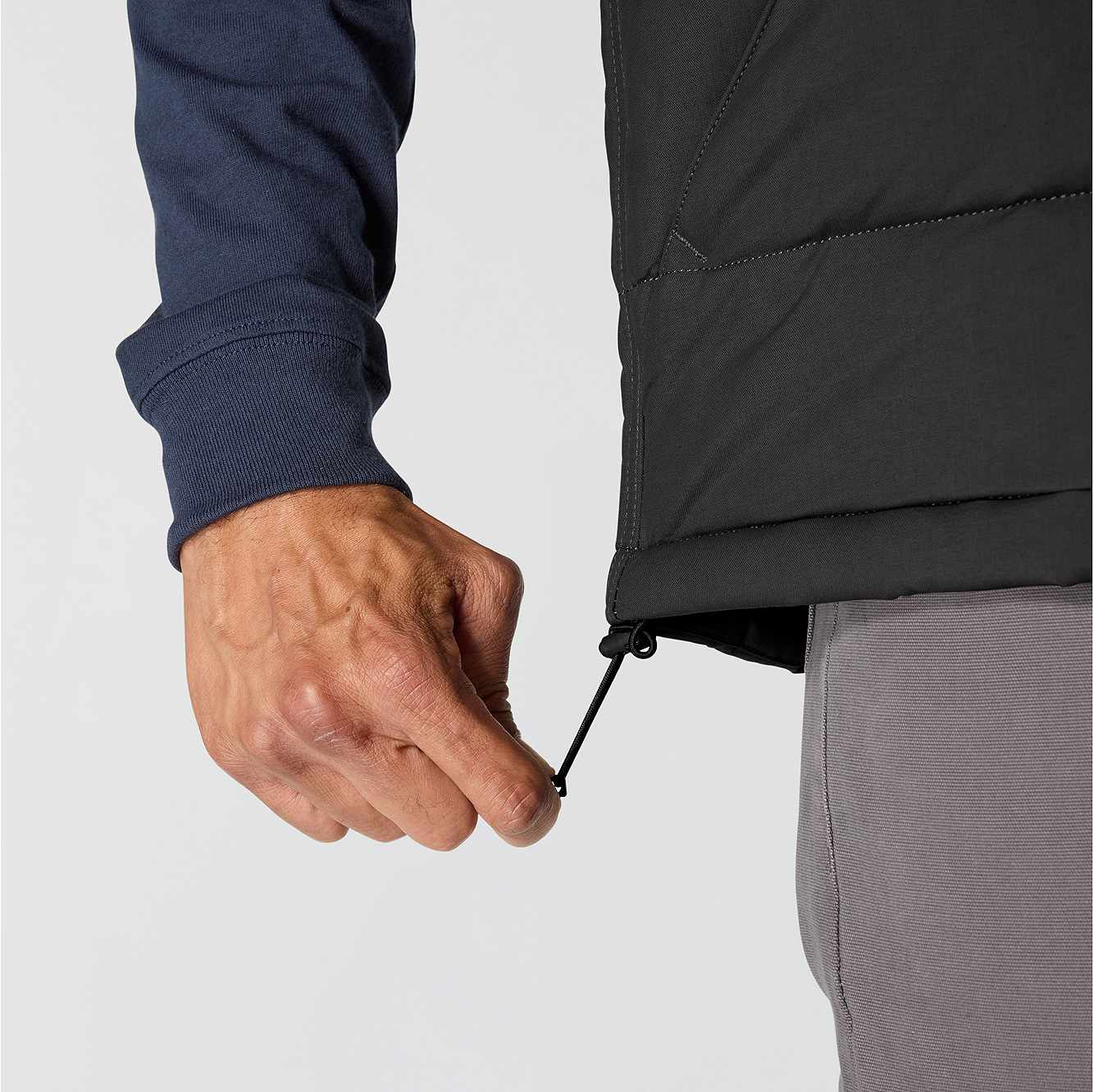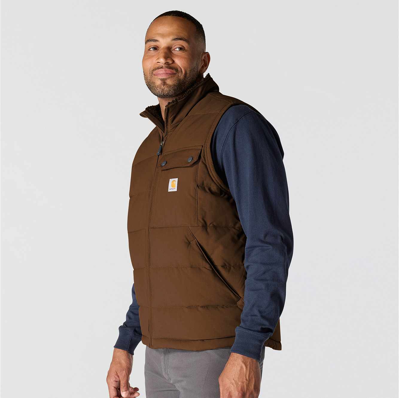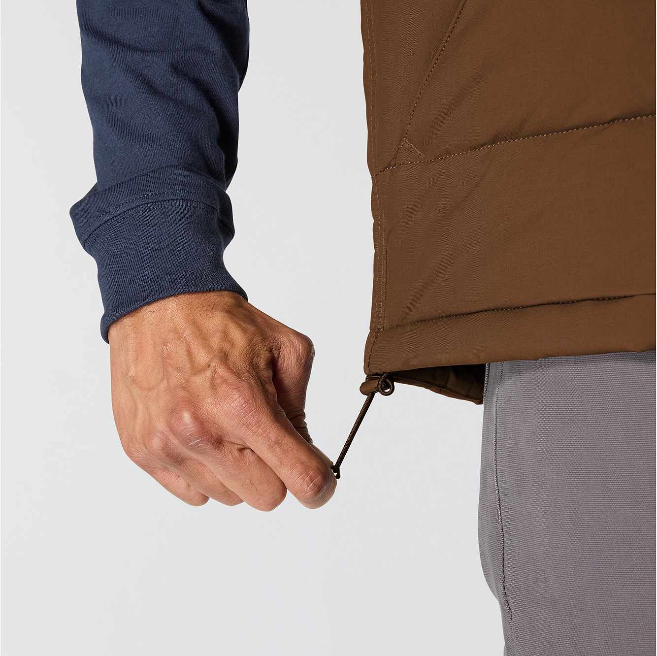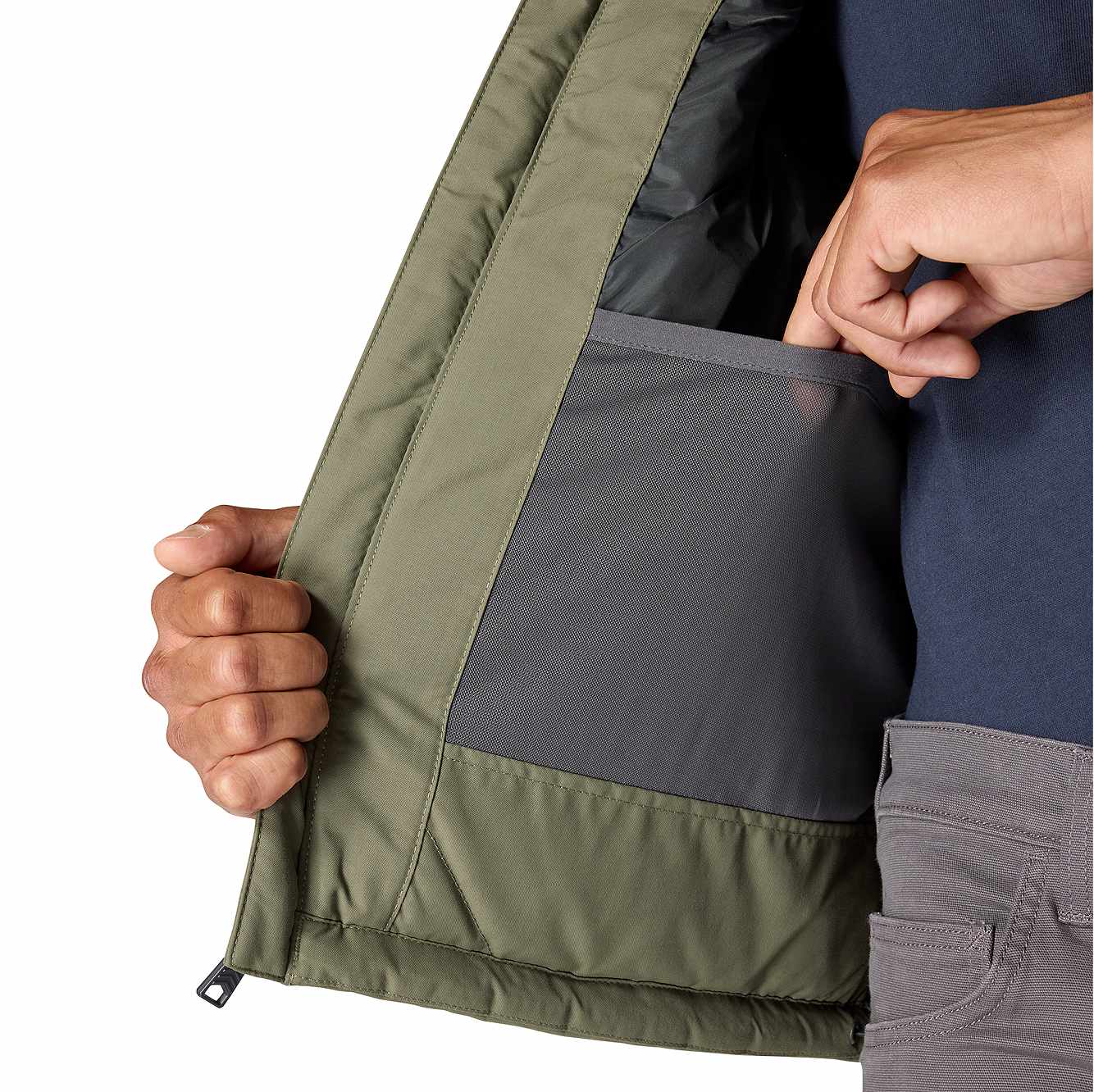 Keep your core warm and dry in this men's insulated vest when the weather takes a turn. Water repellent and wind resistant, it has a sherpa fleece lining and synthetic down insulation to keep chill winds and light rain or snow at bay. Pockets inside and out offer plenty of storage.