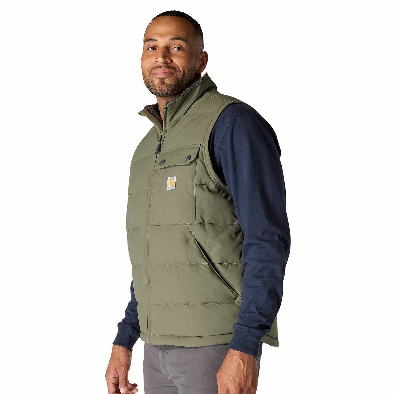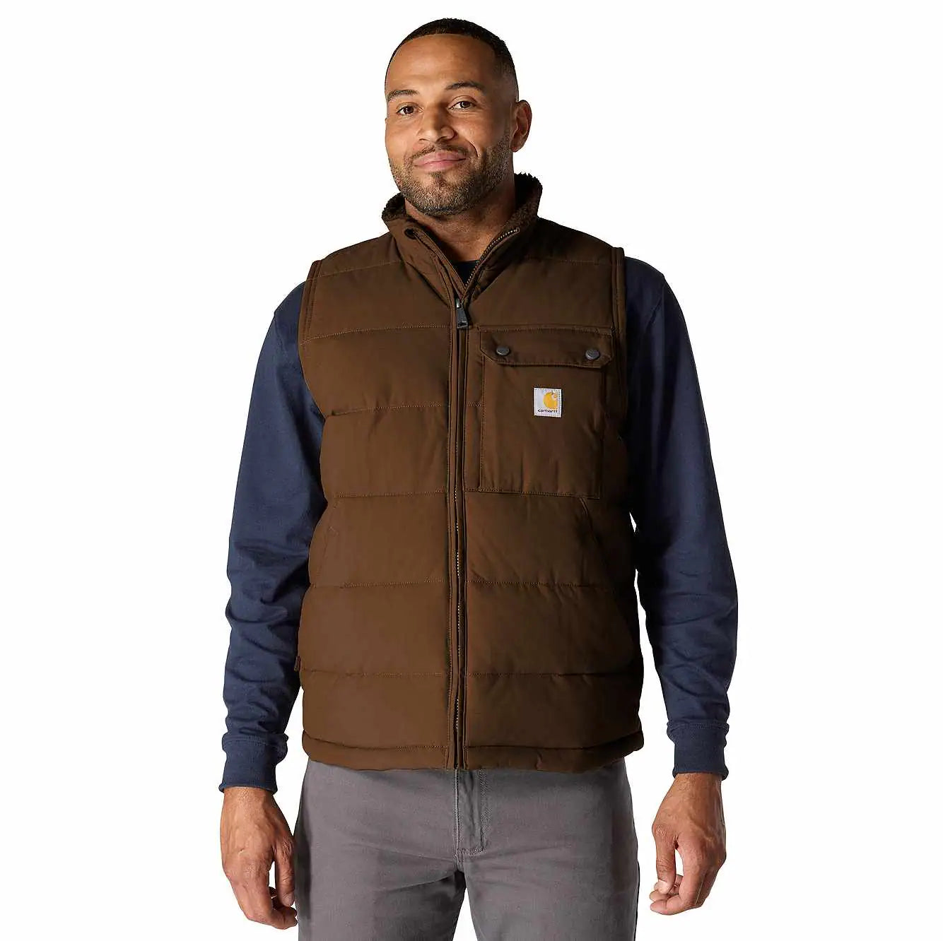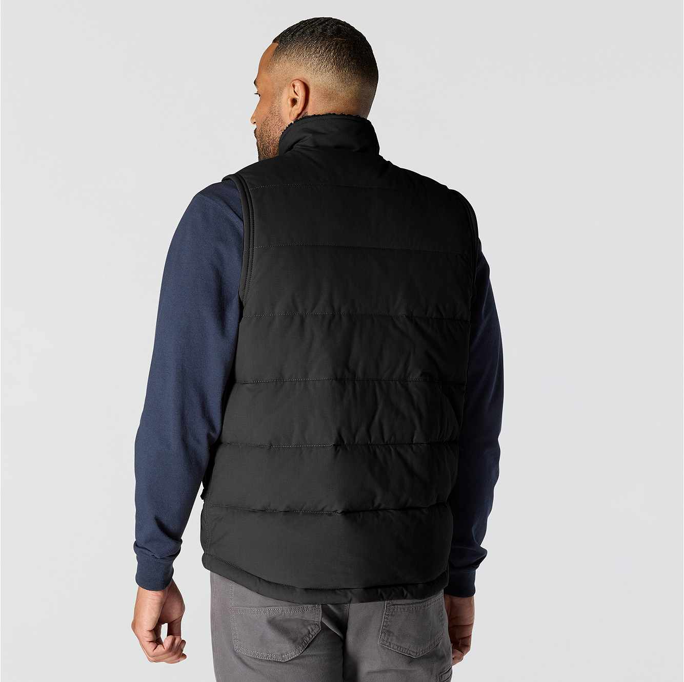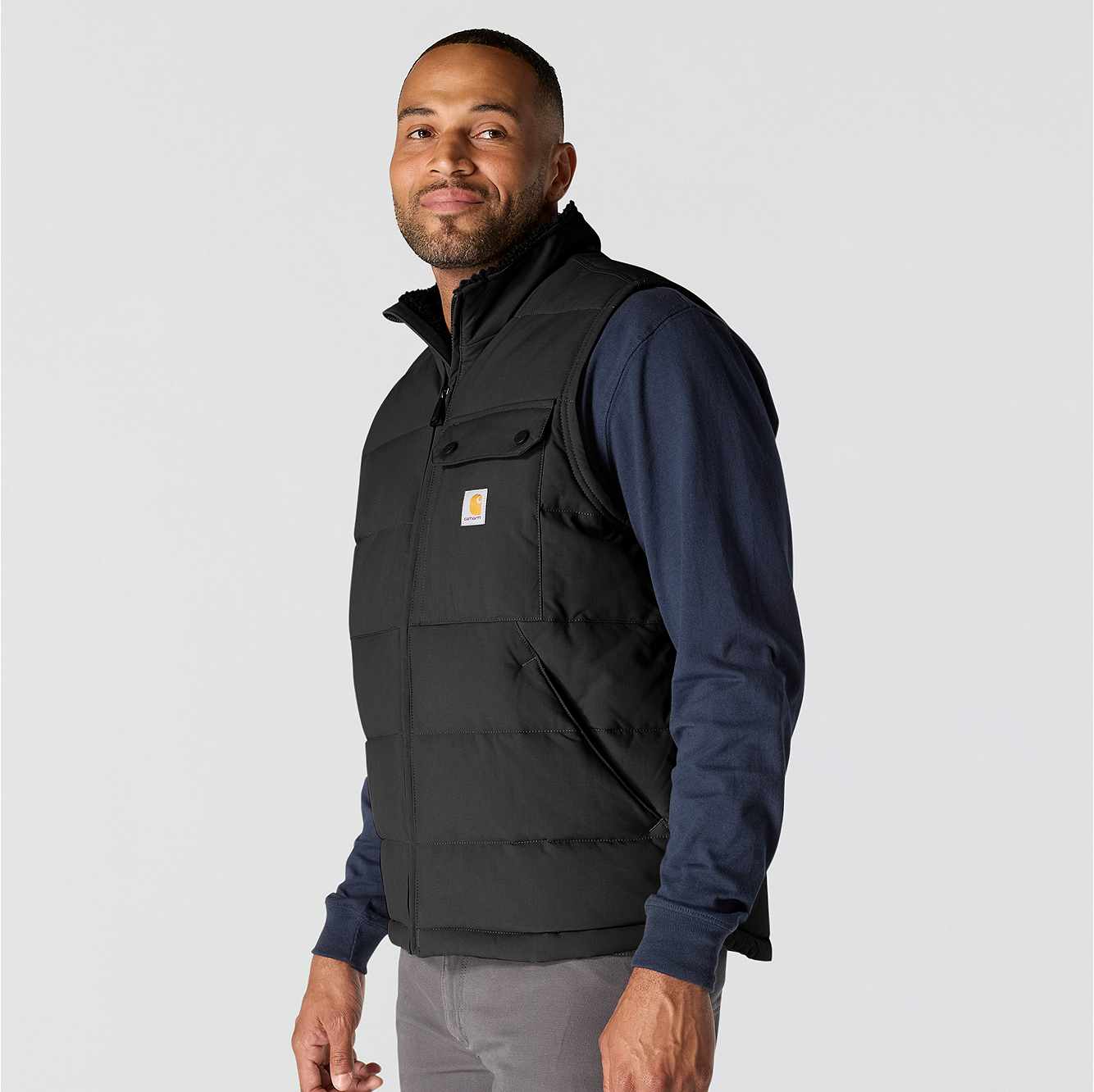 Keep your core warm and dry in this men's insulated vest when the weather takes a turn. Water repellent and wind resistant, it has a sherpa fleece lining and synthetic down insulation to keep chill winds and light rain or snow at bay. Pockets inside and out offer plenty of storage.