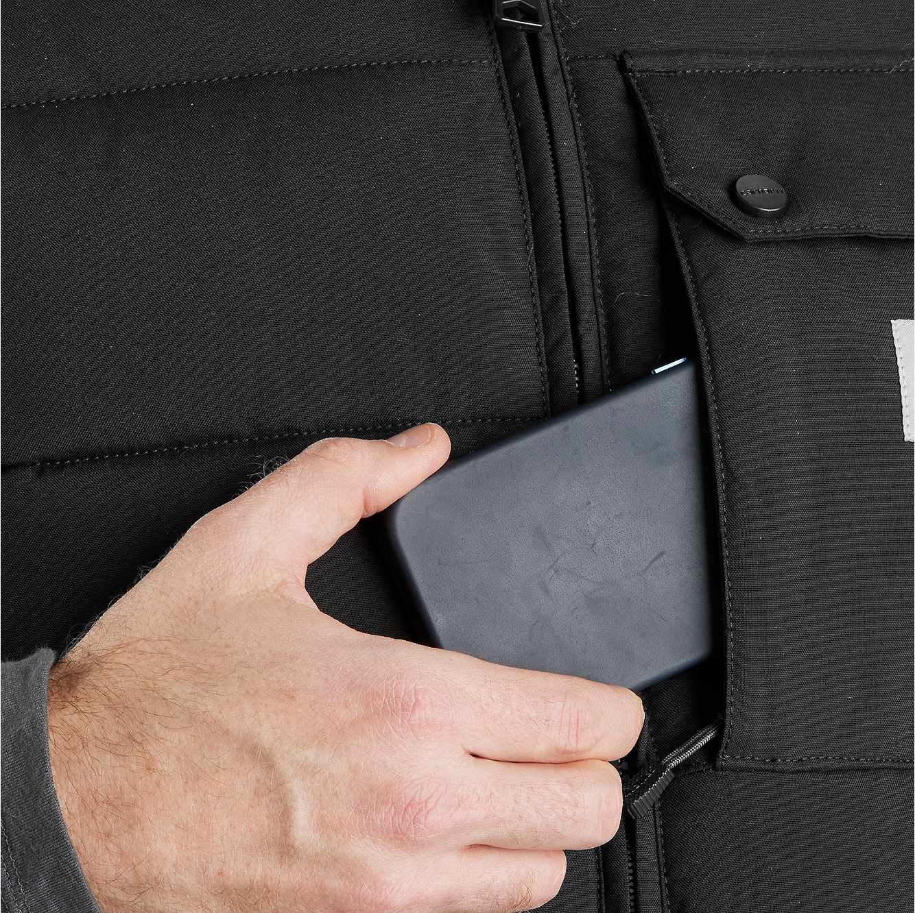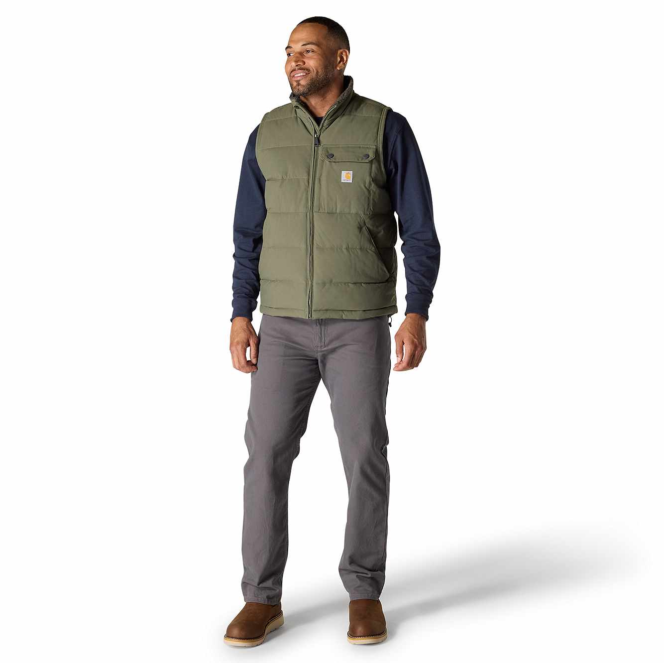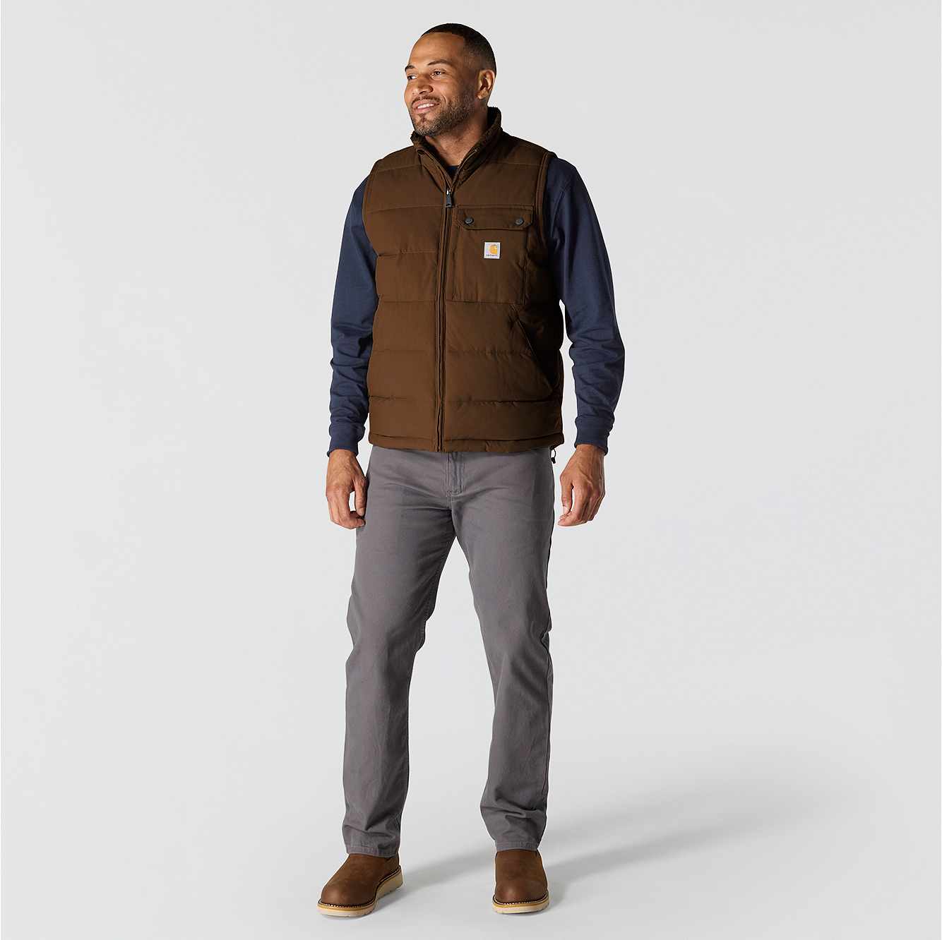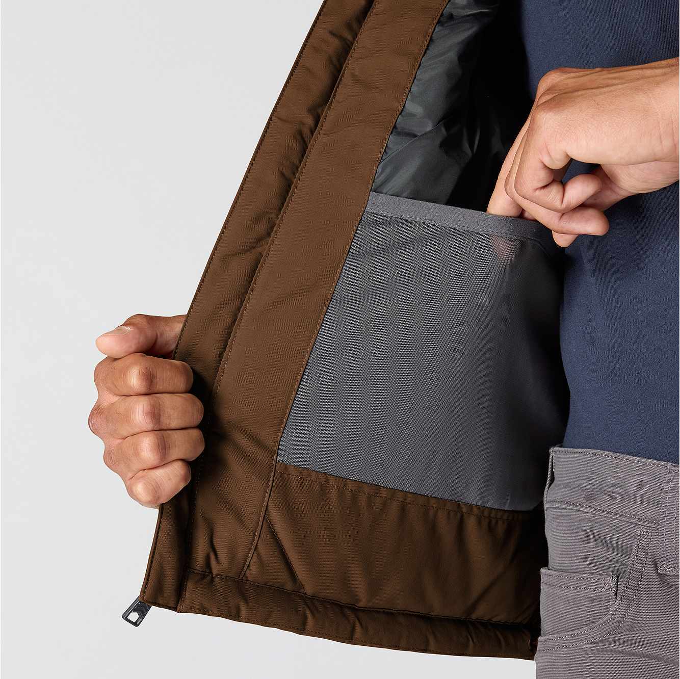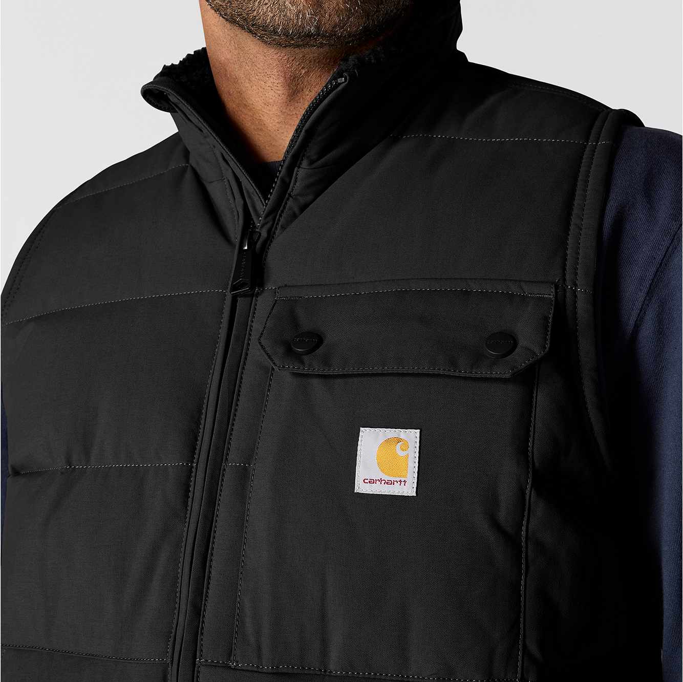 Keep your core warm and dry in this men's insulated vest when the weather takes a turn. Water repellent and wind resistant, it has a sherpa fleece lining and synthetic down insulation to keep chill winds and light rain or snow at bay. Pockets inside and out offer plenty of storage.