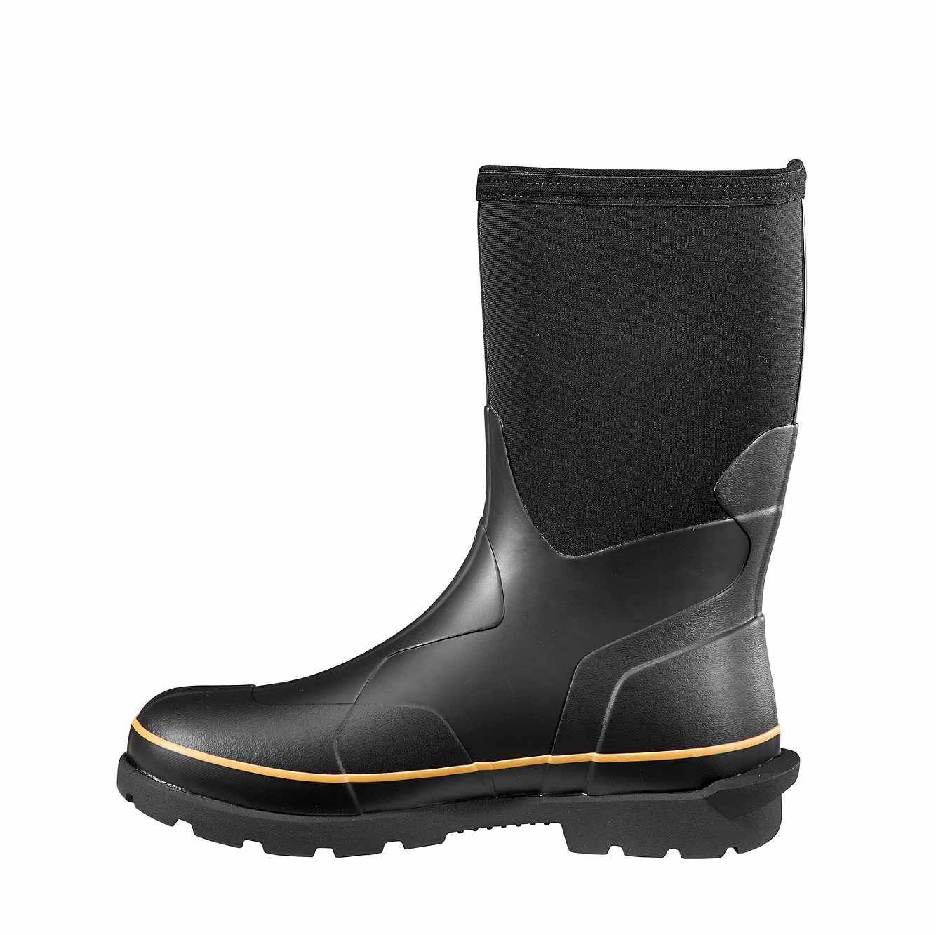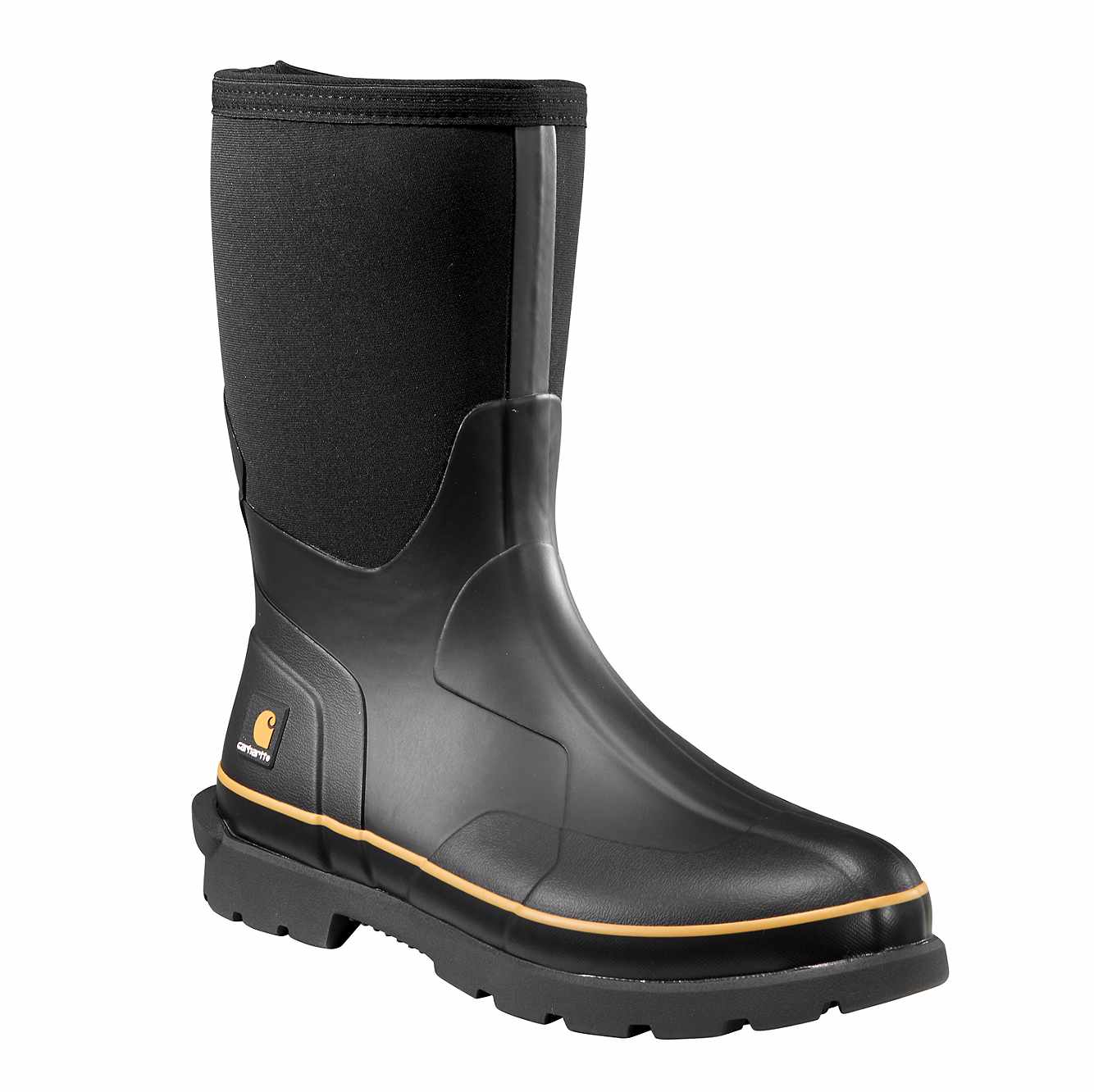 Chicken farm, dairy, or ranch, when the job involves mud and muck these men's boots can do the job. These boots are made of a rubber and neoprene construction, that repels water to keep feet dry while you're working hard. A kick-off plate on the outsole makes them easy to get on and off.