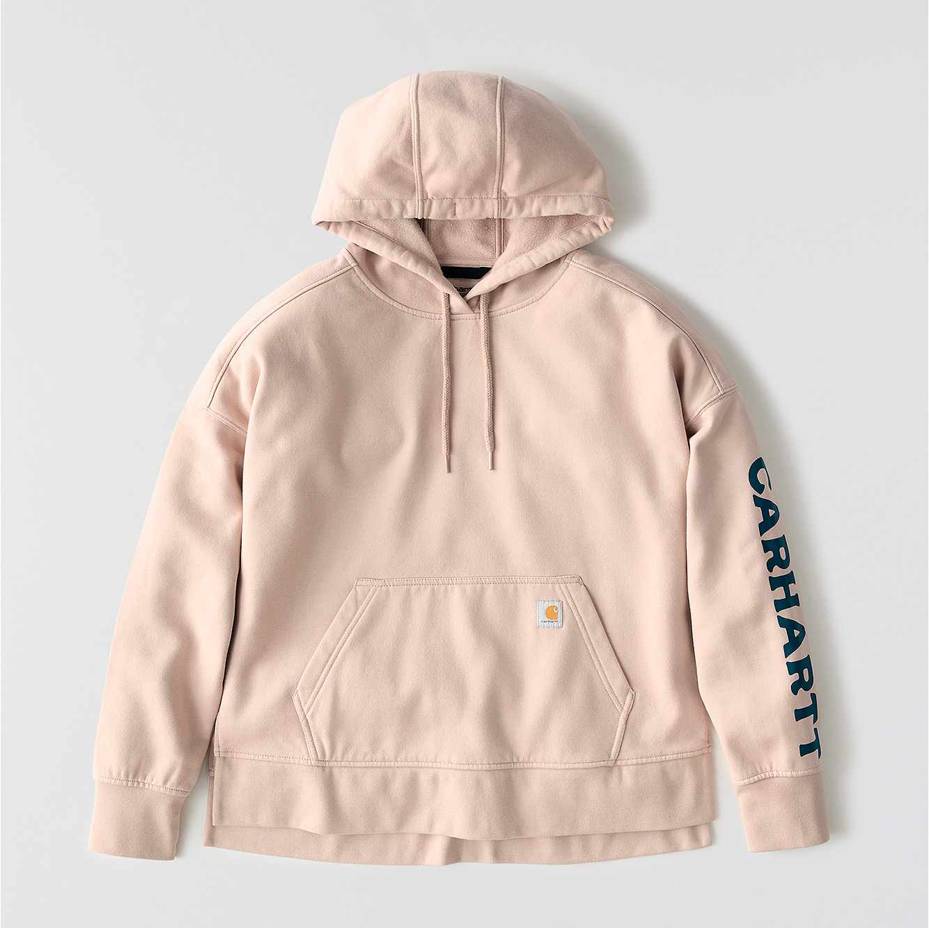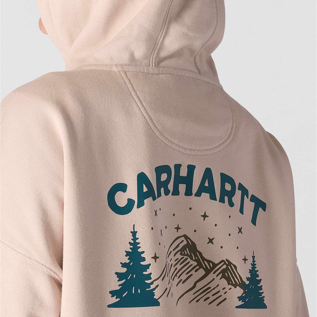 Peak comfort. With mountain graphics on back, this women's hooded sweatshirt pays tribute to fresh air and stunning views. It's built with a midweight cotton blend and oversize cut that feels cozy on the job or off.