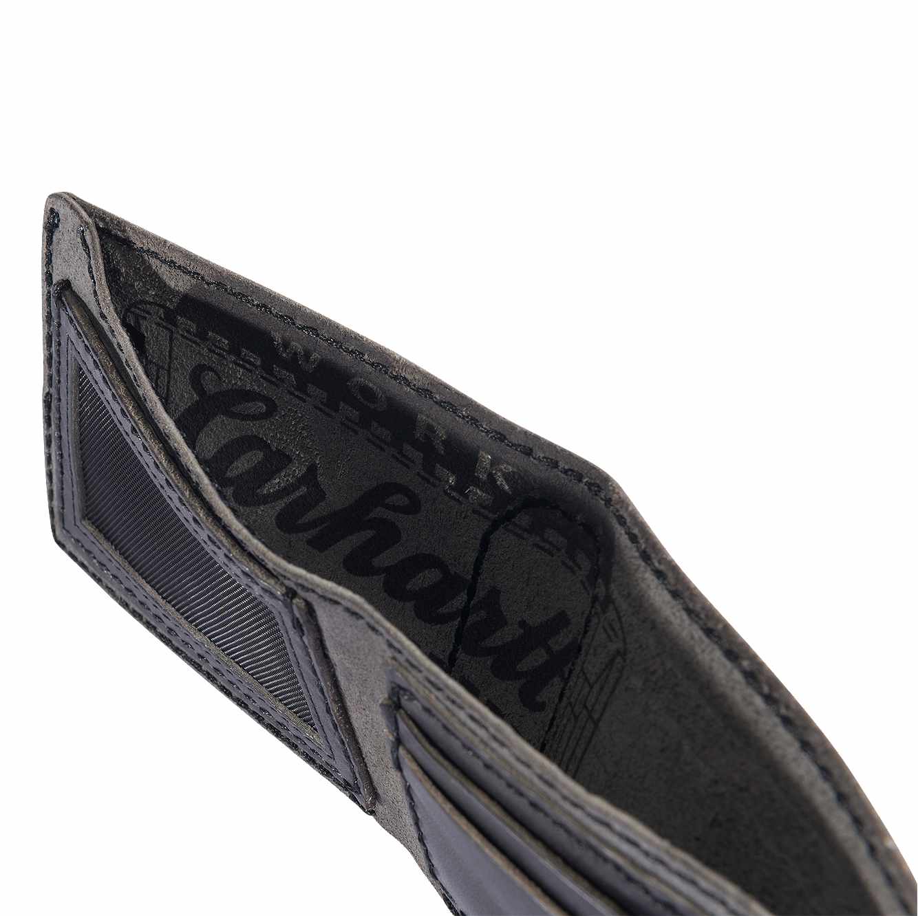 This men’s wallet features distressed leather and a moccasin stitch details for a sleek design. This wallet also features 3 exterior card pockets and 1 main card/cash pocket.
