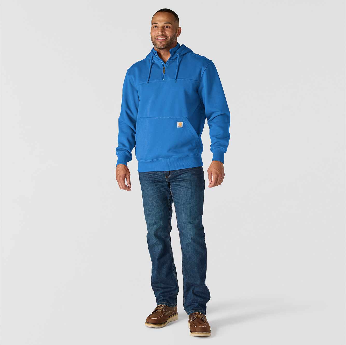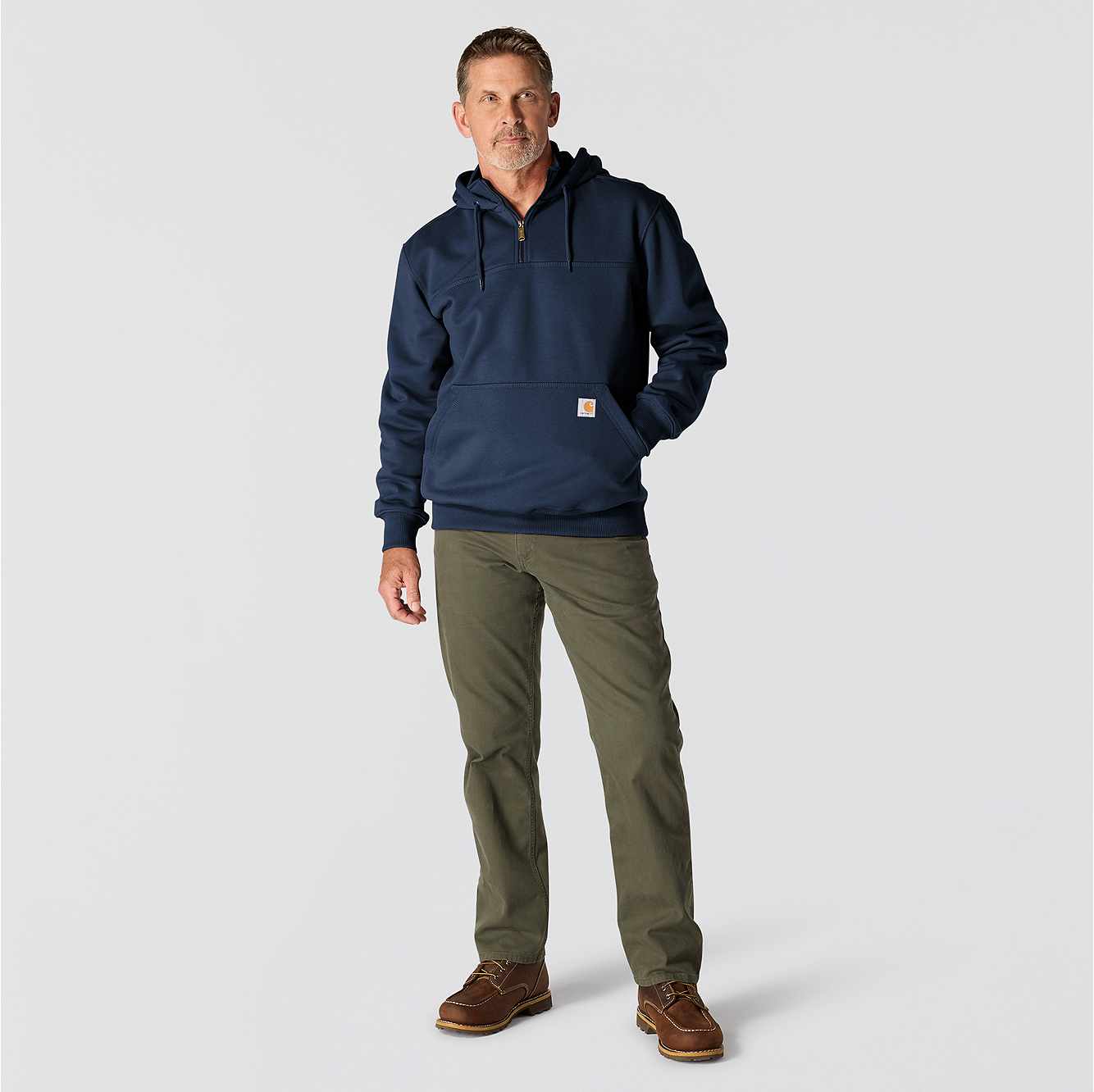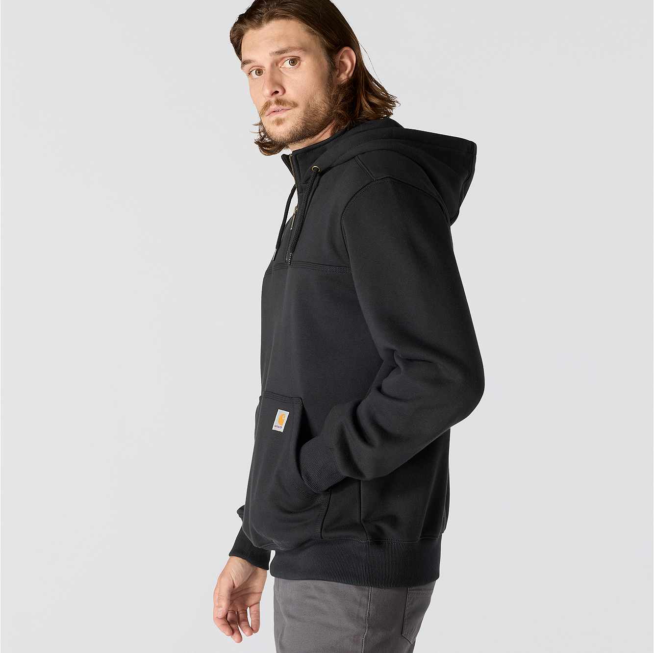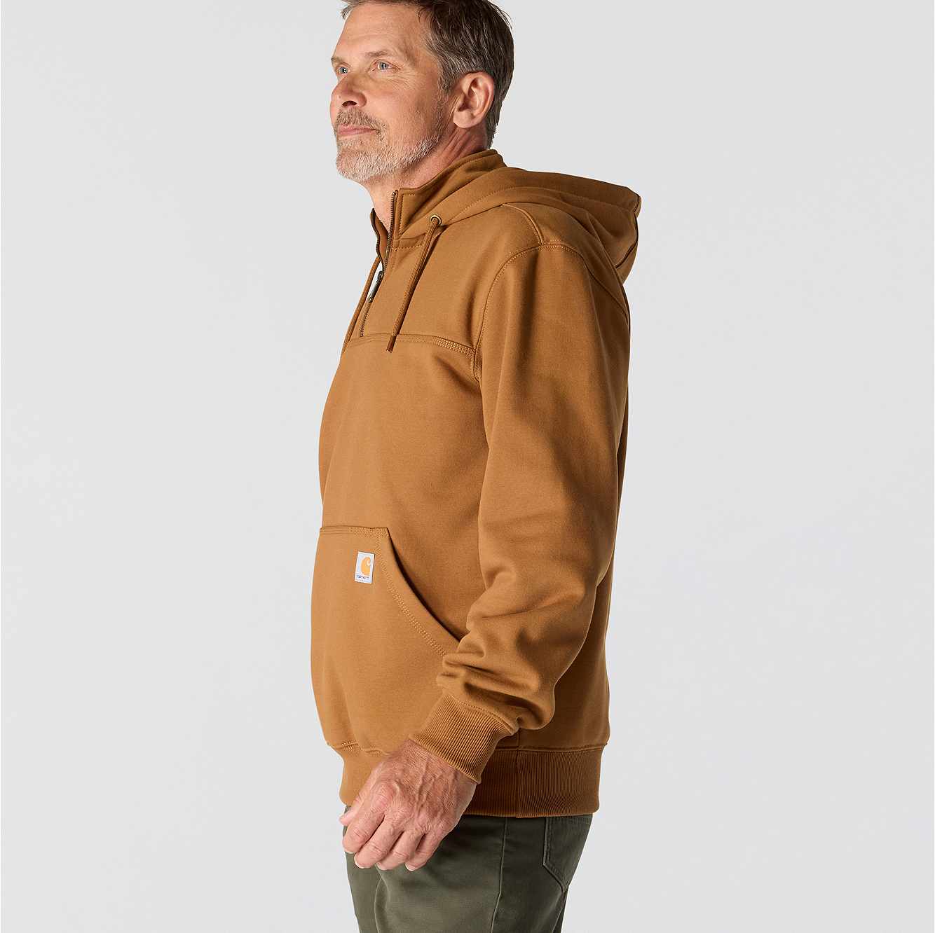 Men's heavyweight, water-repellent sweatshirt for outdoor work.