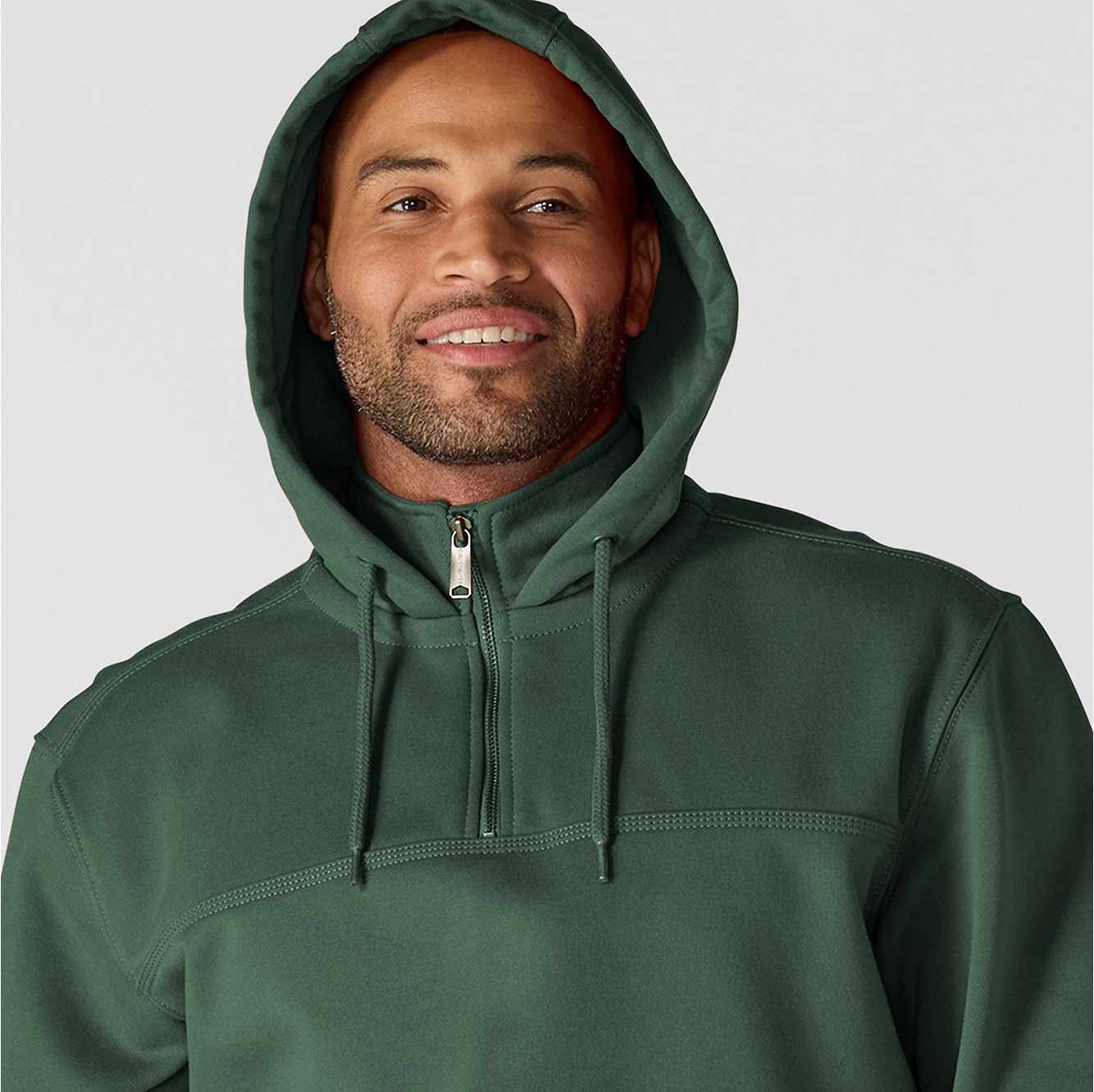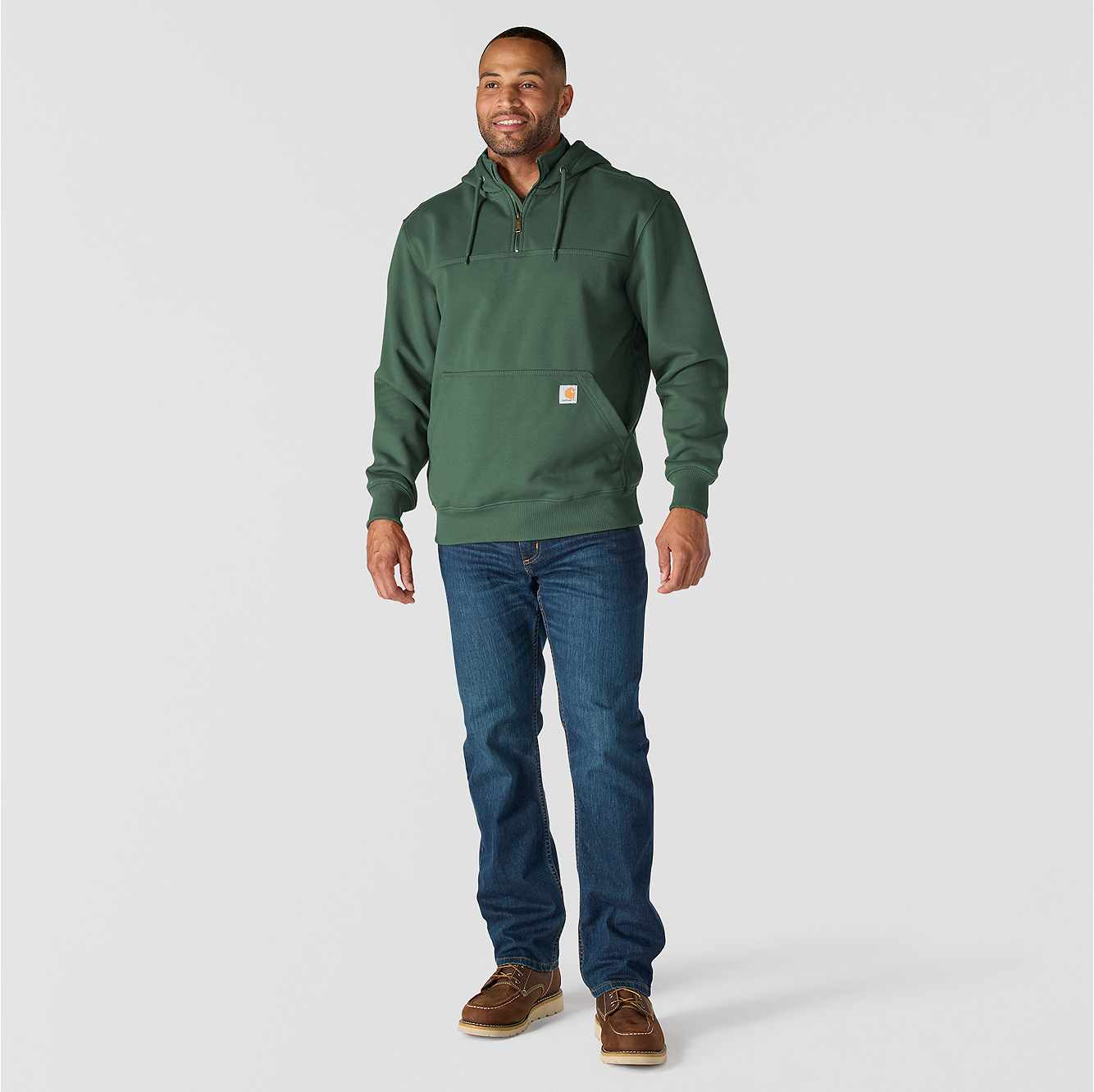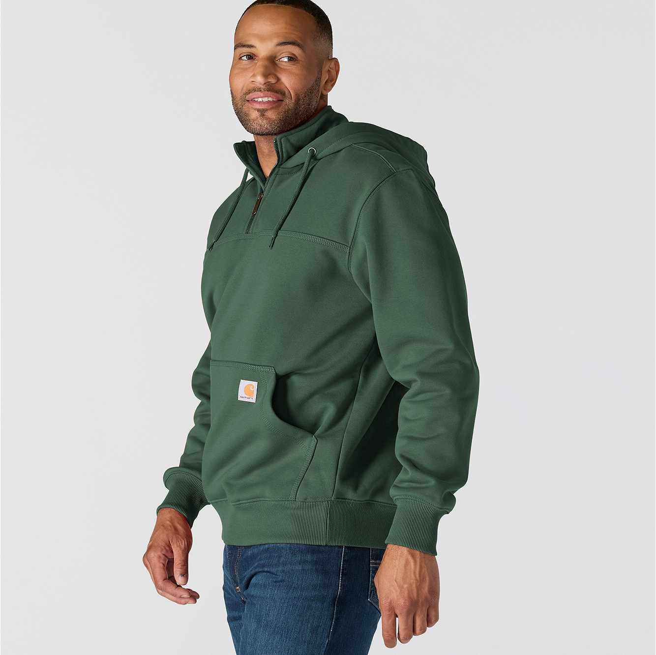 Don't let a little wet weather slow you down. This men's heavyweight hoodie gives you the familiar comfort of a favorite sweatshirt with the added benefit of keeping you dry in light rain. There's a hidden security pocket inside the handwarmer pocket in the front. Previously known as the Rain Defender® Paxton Heavyweight Hooded Zip Mock Sweatshirt
