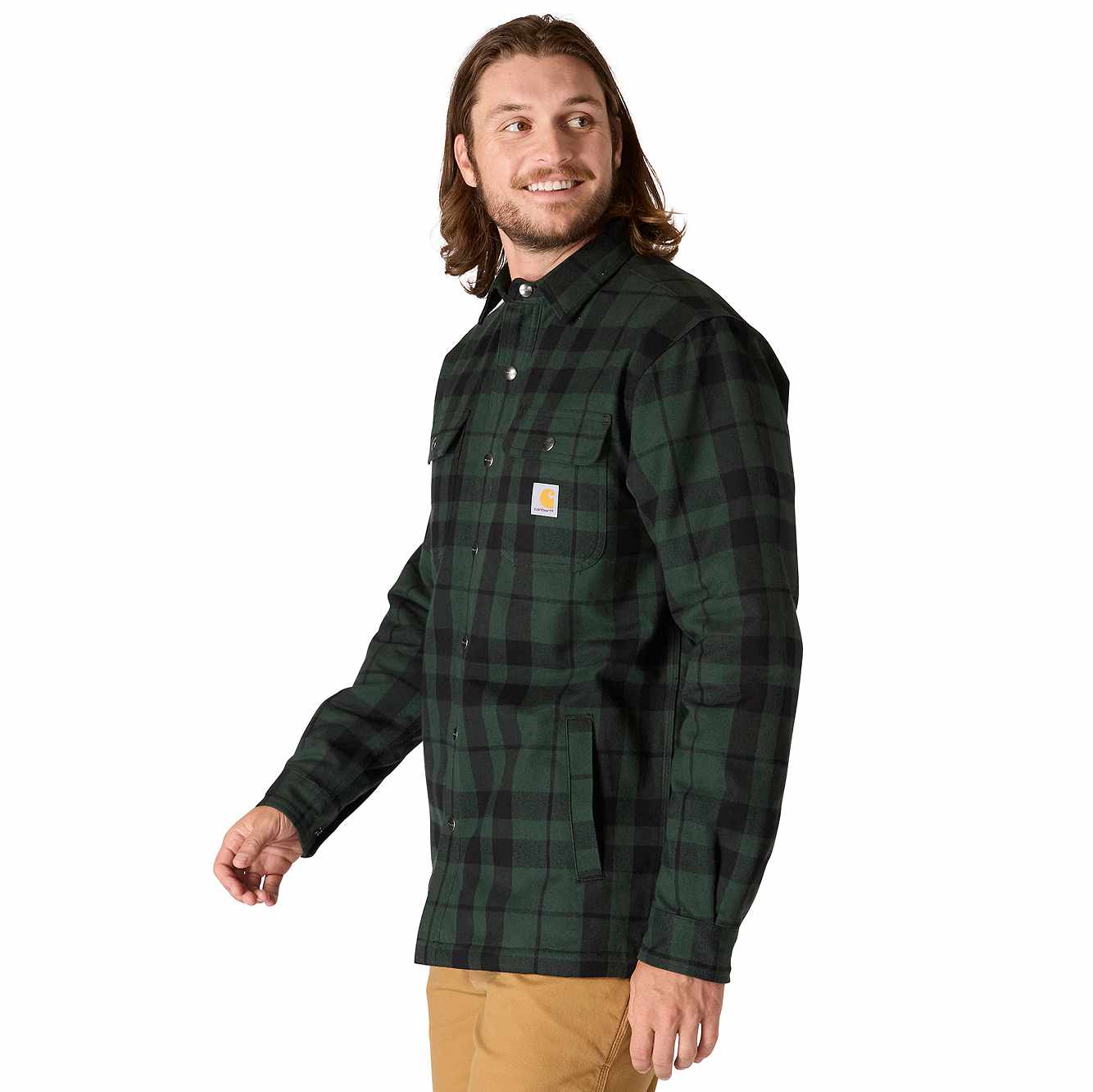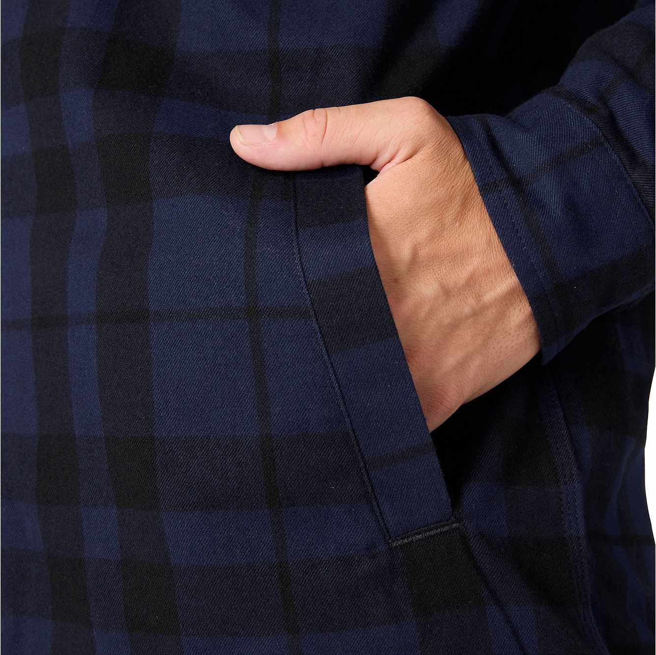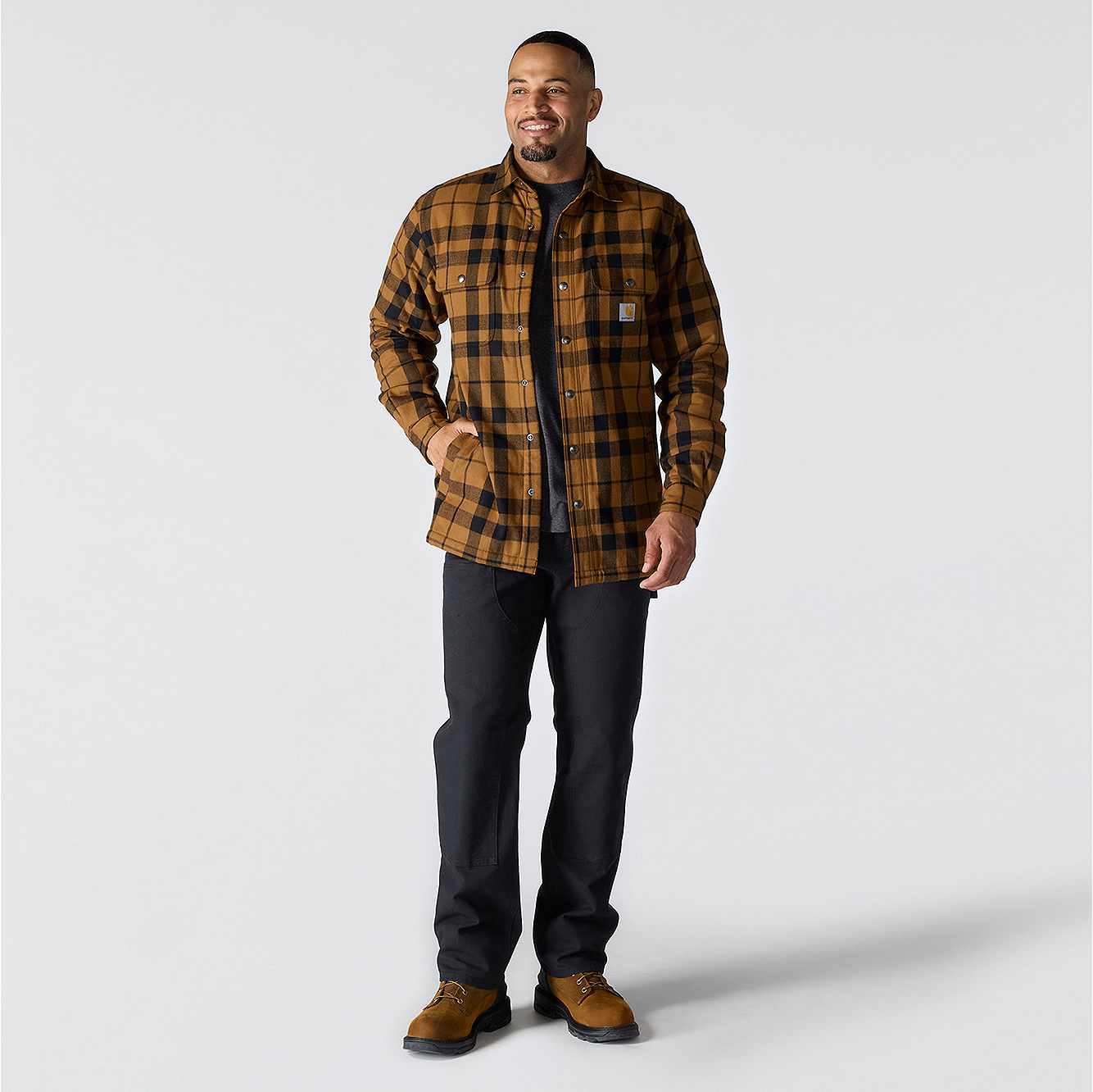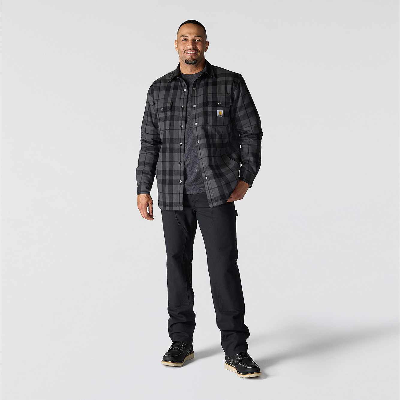 Made for cooler days, this men's sherpa-lined flannel shirt jacket is a versatile layer for cold shops and outdoor work. A sherpa fleece lining turns up the heat without being bulky or heavy. A relaxed fit offers a little extra room to bend and move.