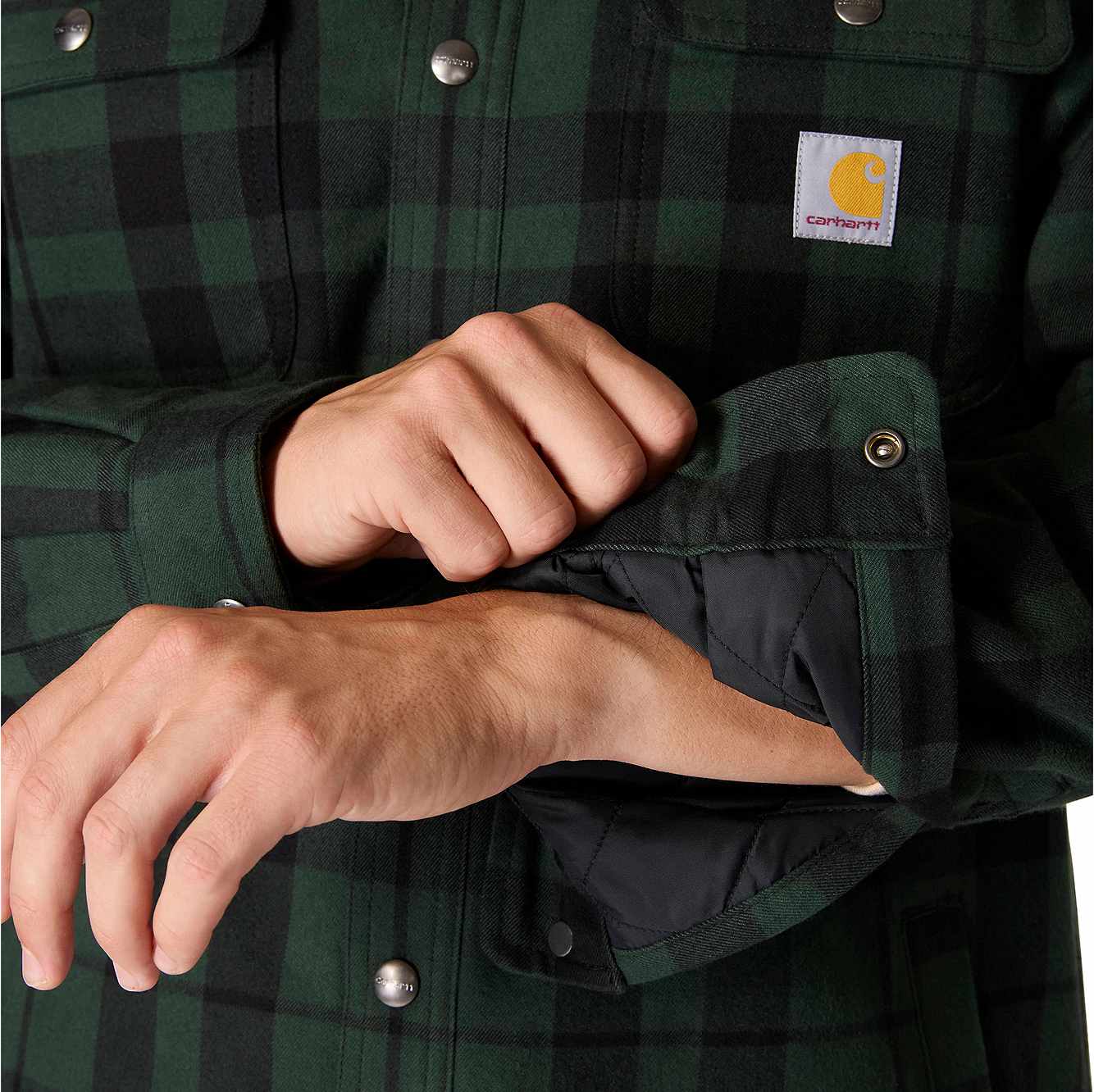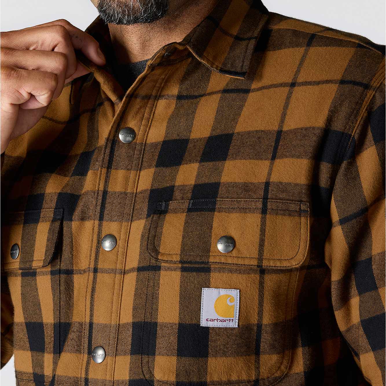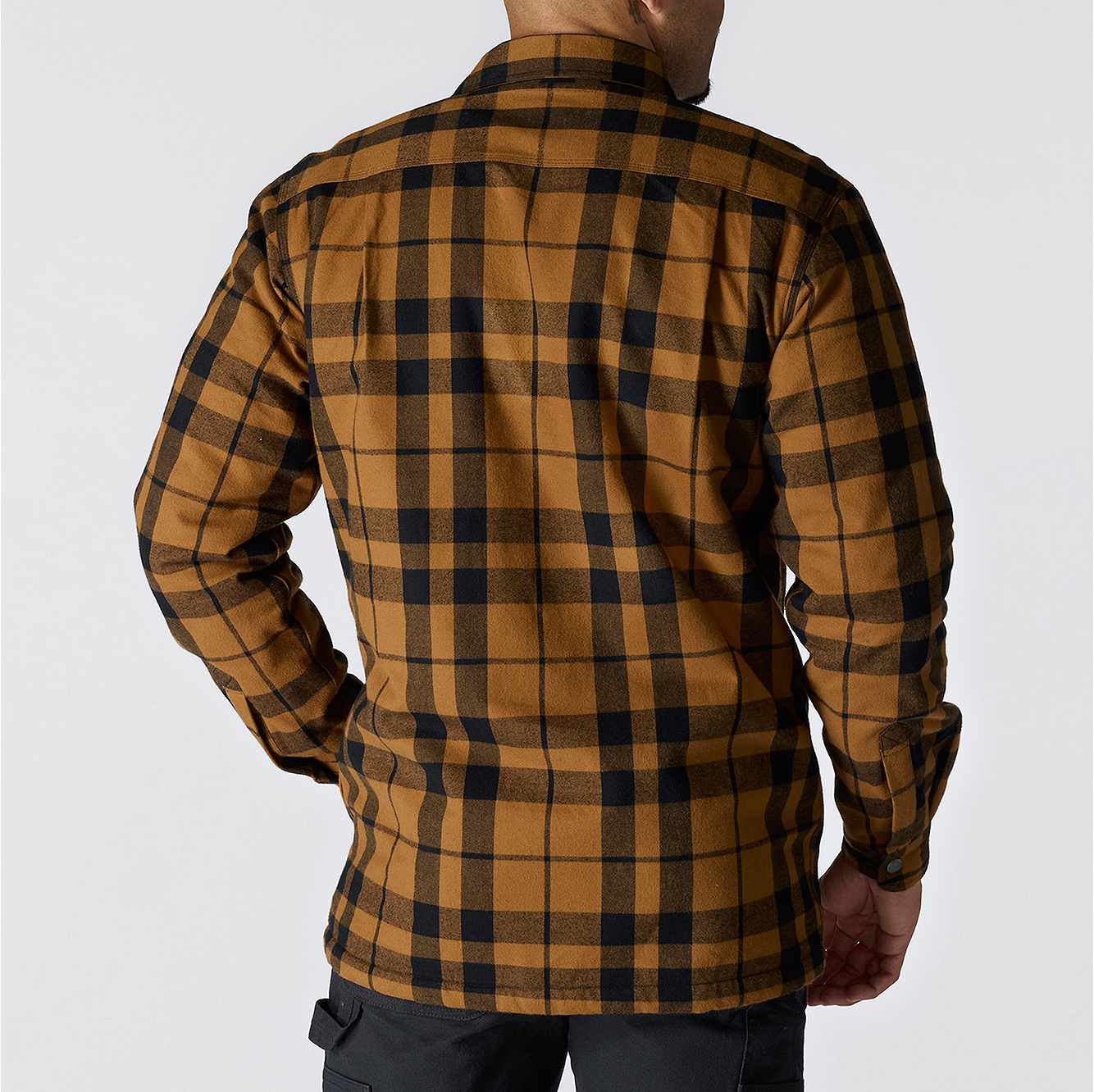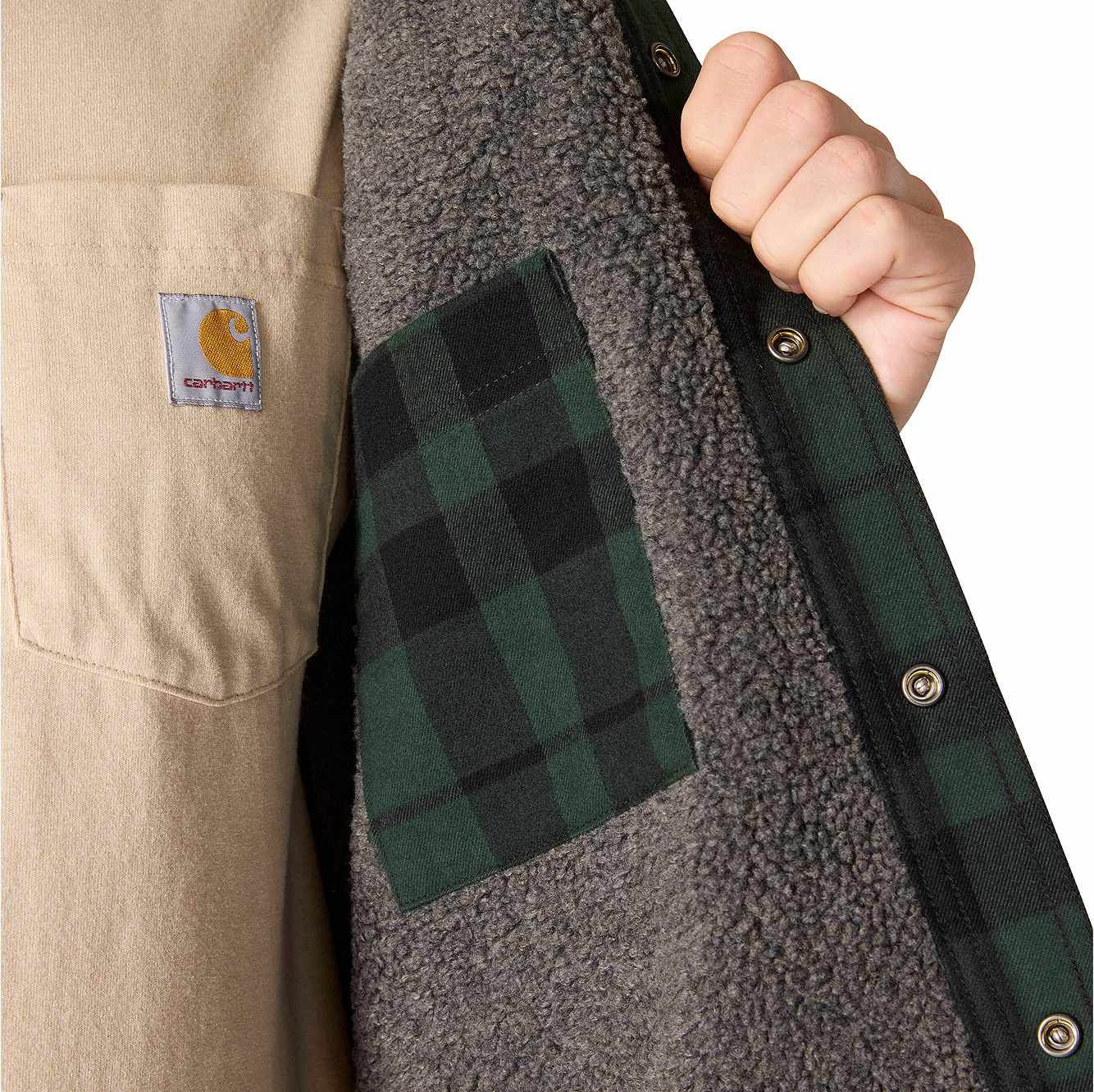 Made for cooler days, this men's sherpa-lined flannel shirt jacket is a versatile layer for cold shops and outdoor work. A sherpa fleece lining turns up the heat without being bulky or heavy. A relaxed fit offers a little extra room to bend and move.