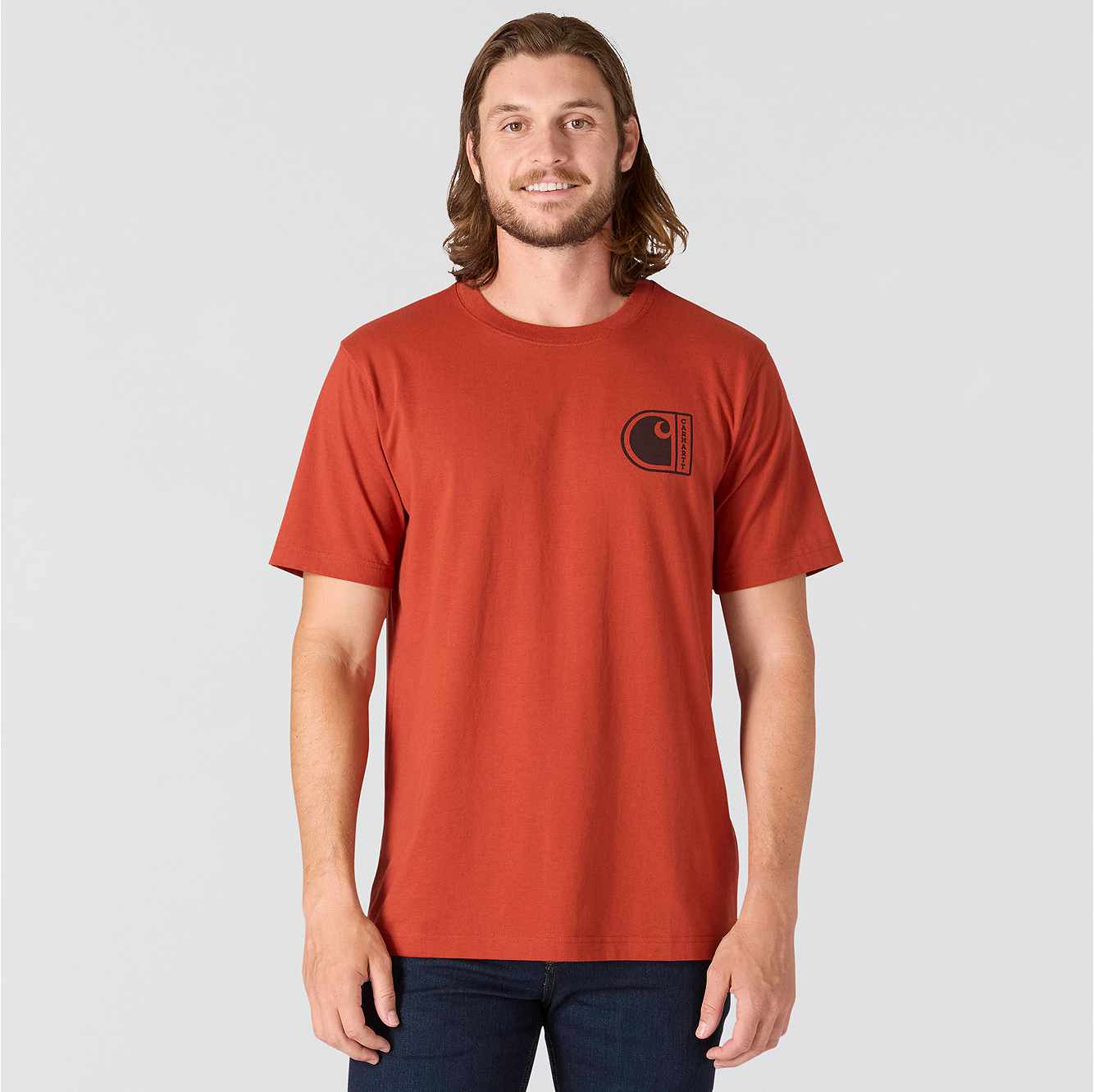 A workwear essential for any trade, this men's short-sleeve graphic tee has a relaxed fit for a little extra room to move. The lightweight cotton blend balances a soft touch with durability for daily wear, and Carhartt C graphics on the chest and back speak to quality.