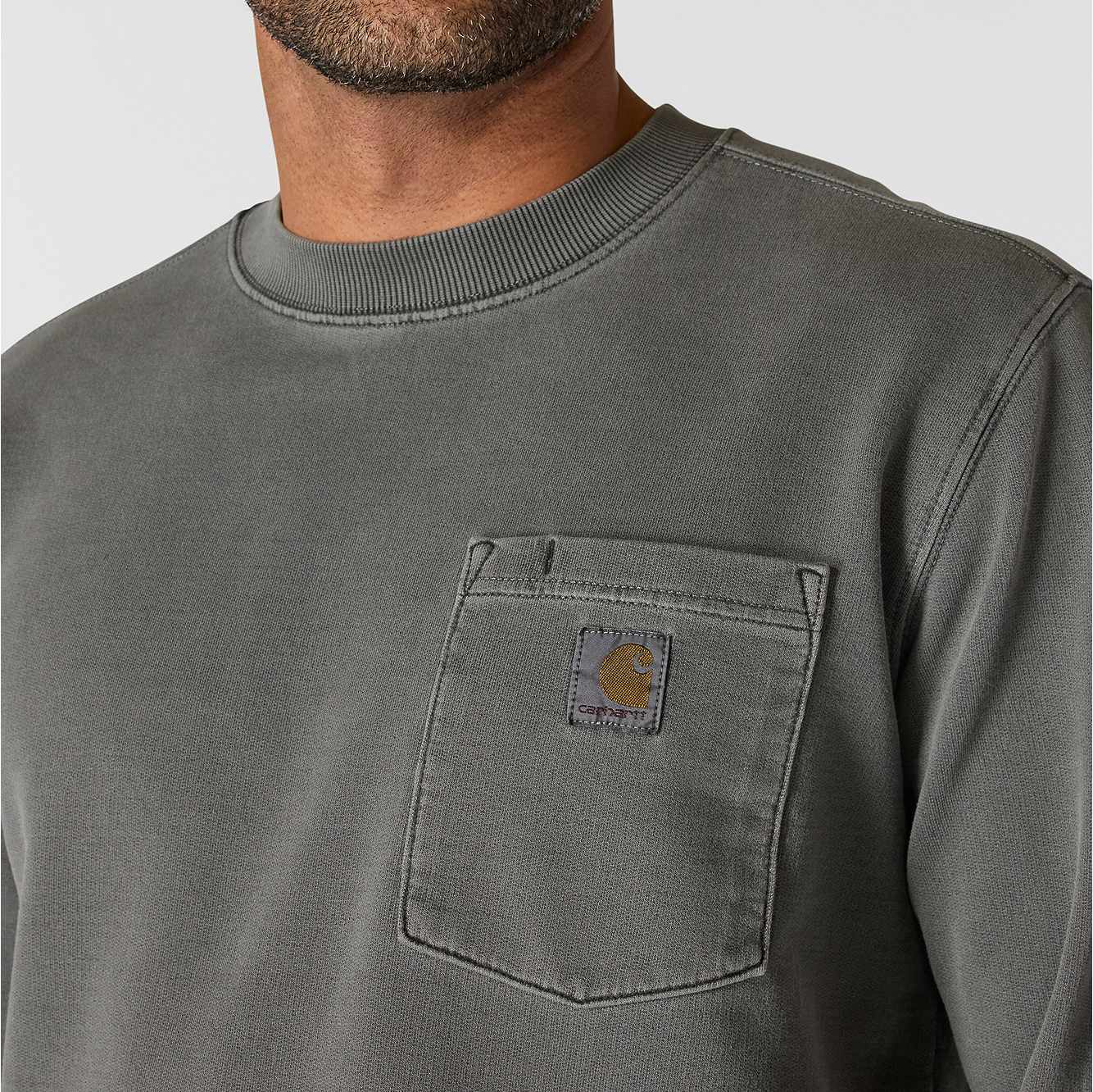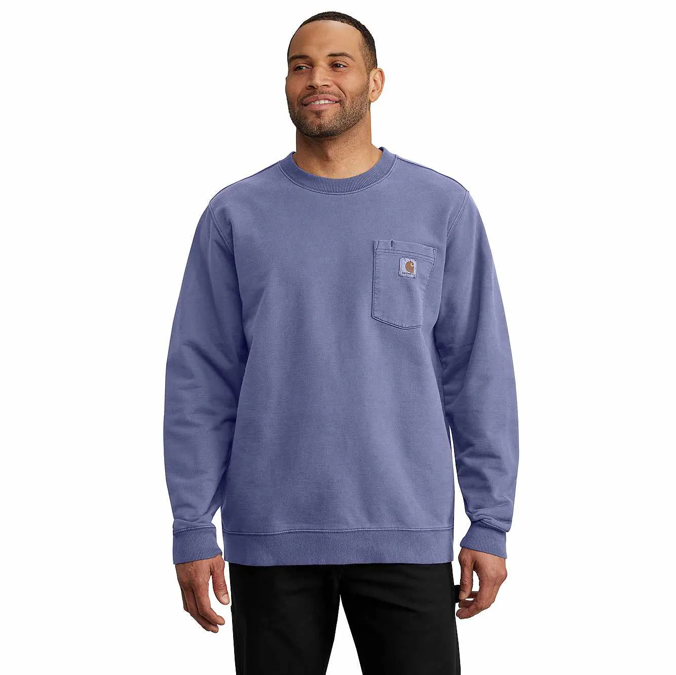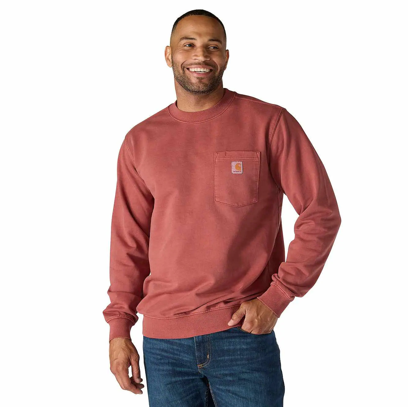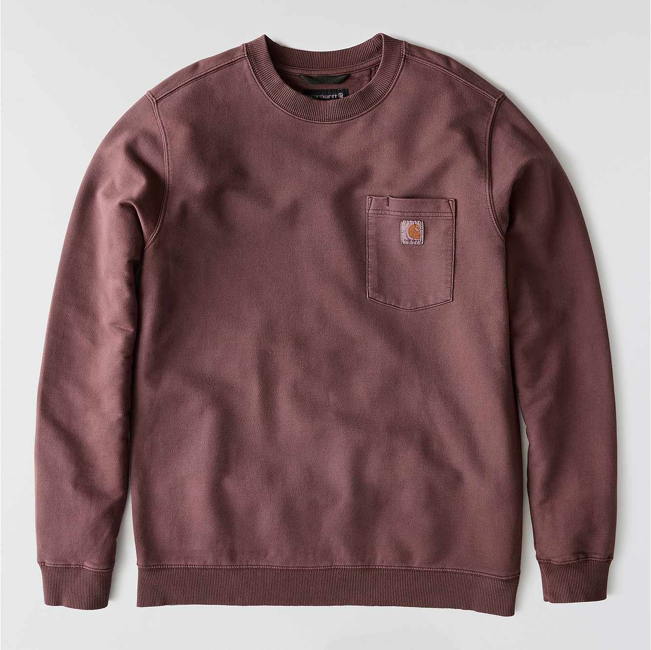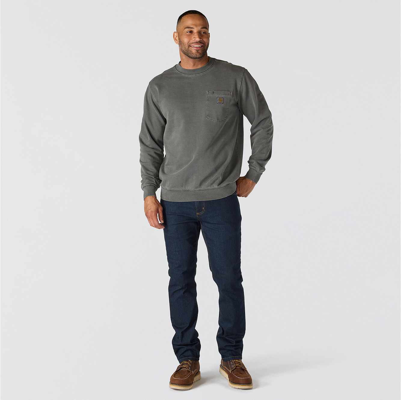 This men's French terry crewneck sweatshirt is garment-dyed for a worn-in, vintage look that only gets better with time. Built to last from midweight all-cotton French terry with a relaxed fit. Featuring a Carhartt label on the chest pocket.