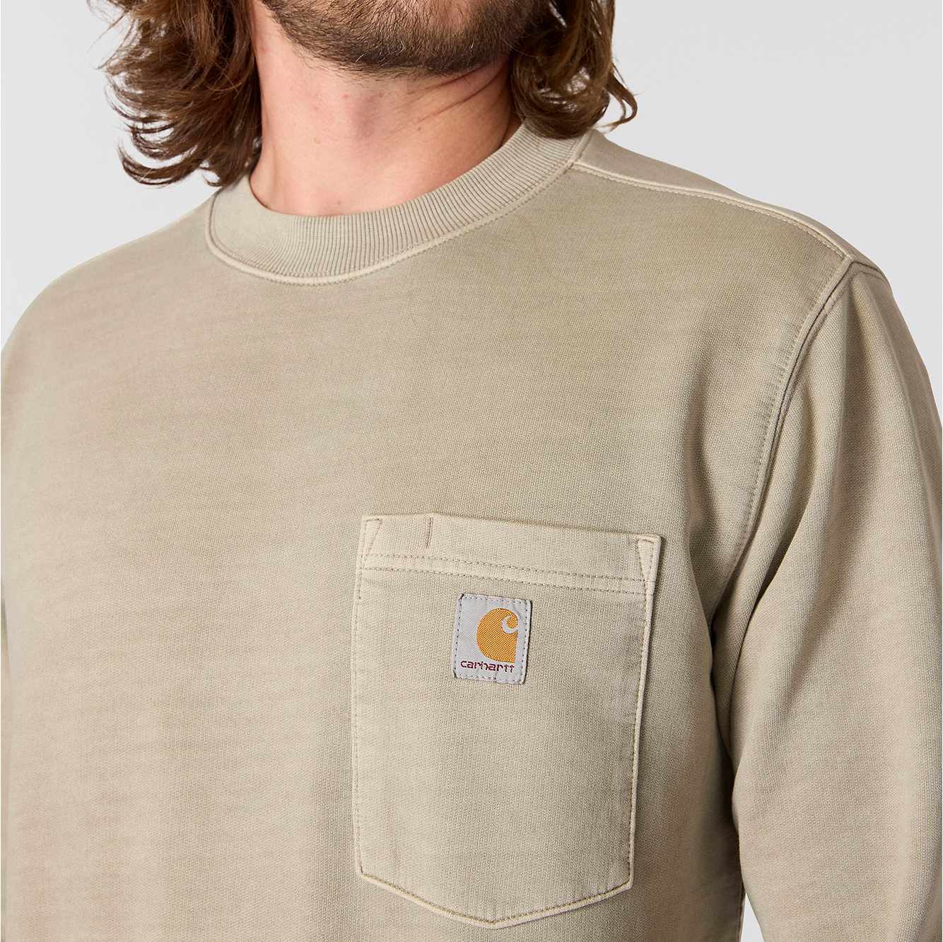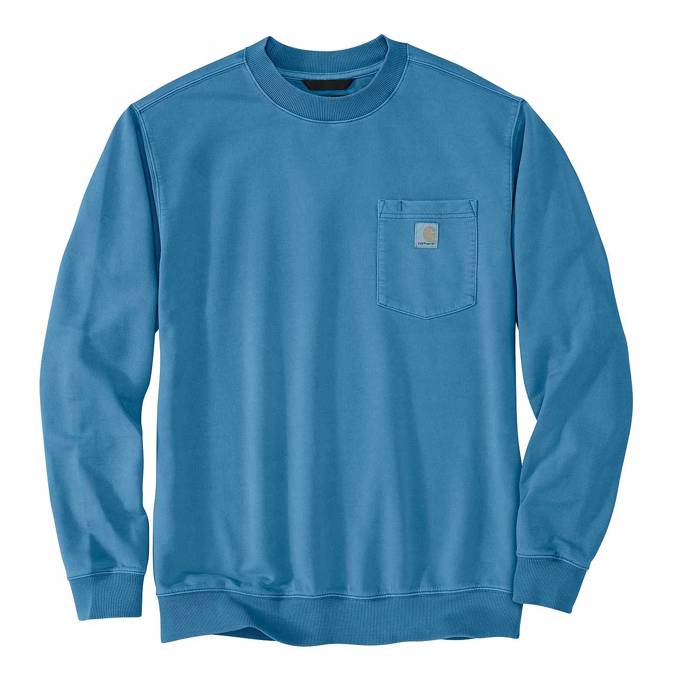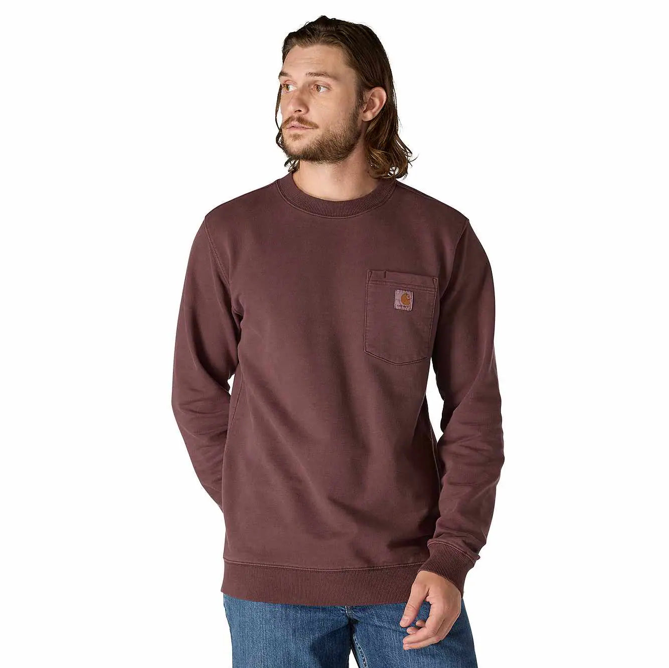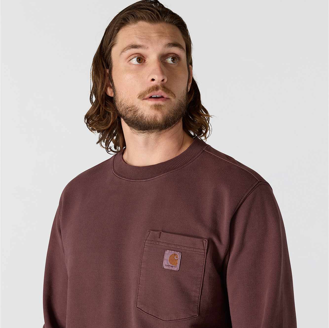 This men's French terry crewneck sweatshirt is garment-dyed for a worn-in, vintage look that only gets better with time. Built to last from midweight all-cotton French terry with a relaxed fit. Featuring a Carhartt label on the chest pocket.