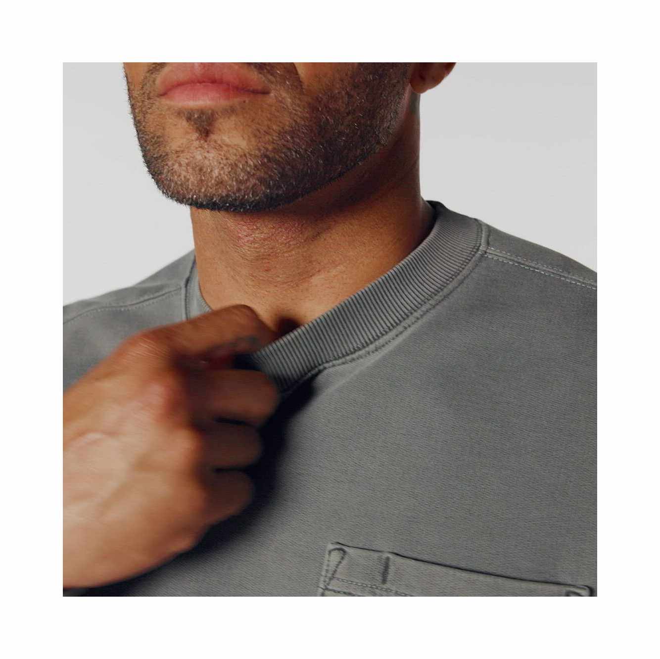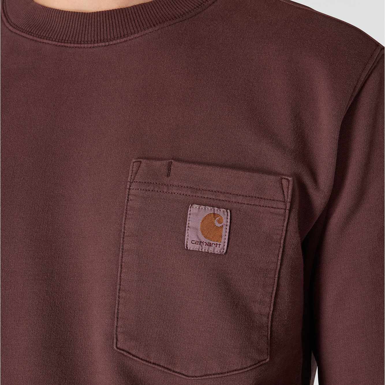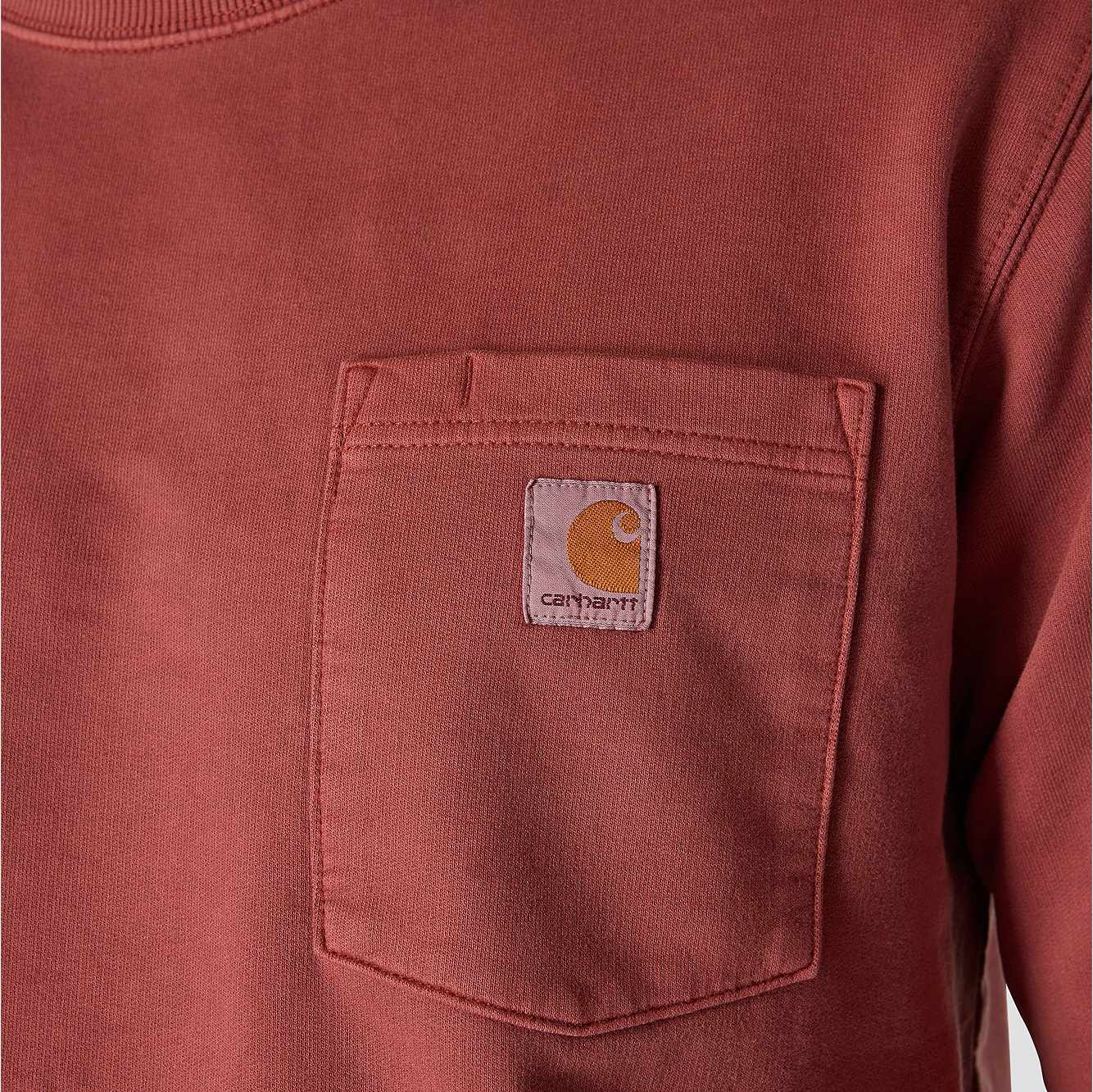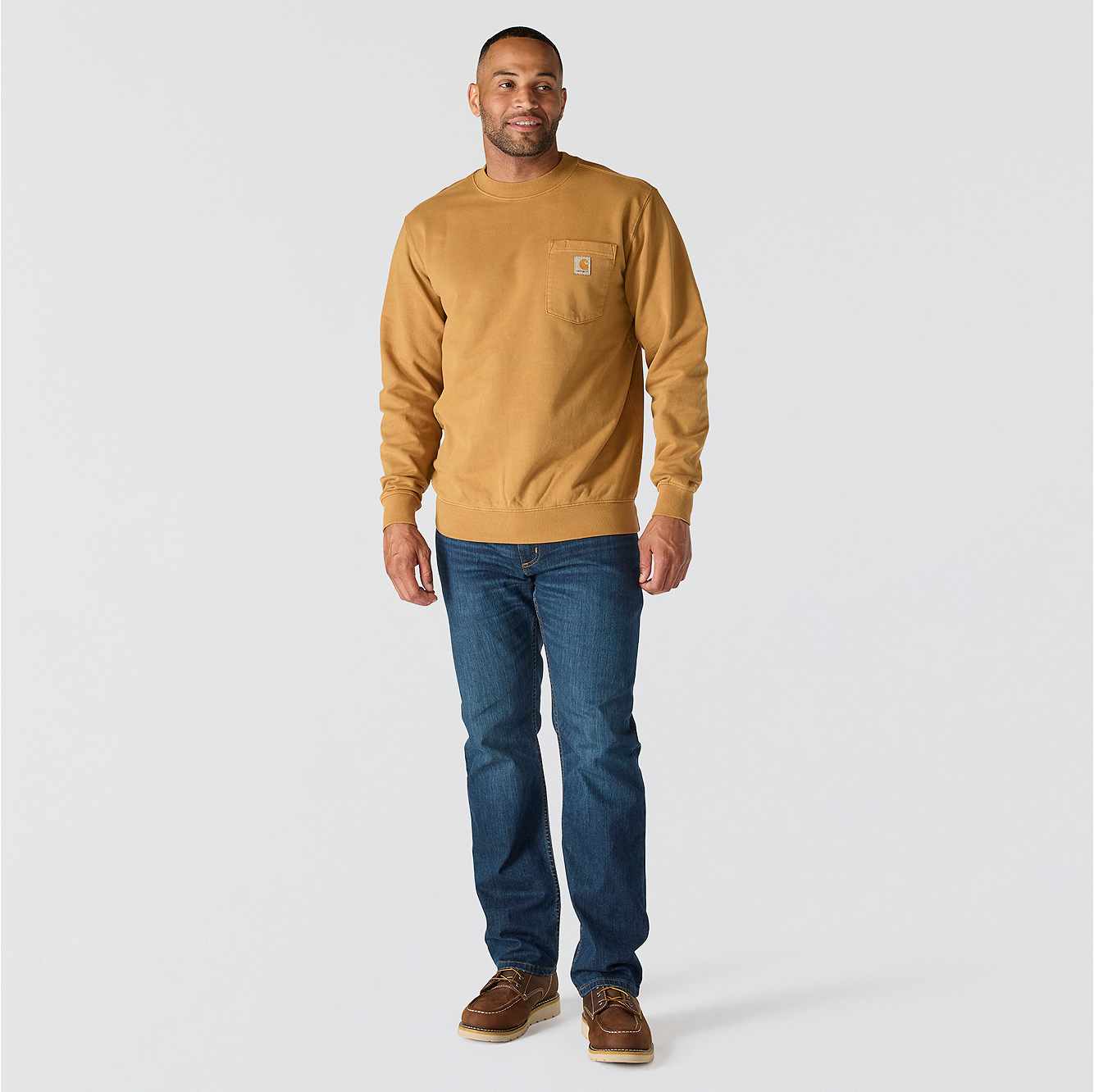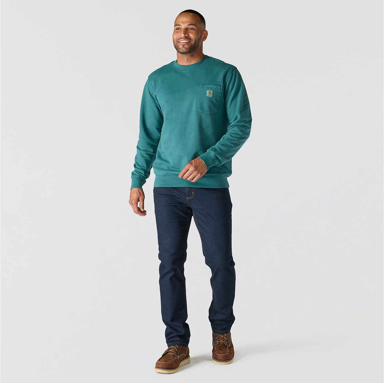 This men's French terry crewneck sweatshirt is garment-dyed for a worn-in, vintage look that only gets better with time. Built to last from midweight all-cotton French terry with a relaxed fit. Featuring a Carhartt label on the chest pocket.