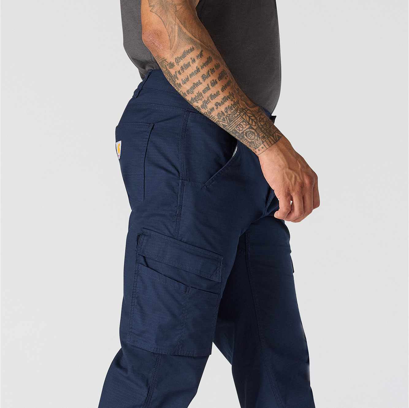 Keep cool on the job in these men's Carhartt cargo pants. The lightweight ripstop build wicks away sweat and dries fast for all-day comfort. Built-in stretch and a gusseted crotch make them easy to move in.
