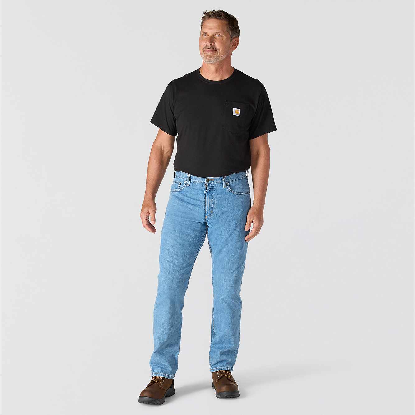 A workwear classic, these 100% cotton men's jeans are built to stand up to long days and demanding conditions. The relaxed fit offers a little extra room through the seat and thigh.
