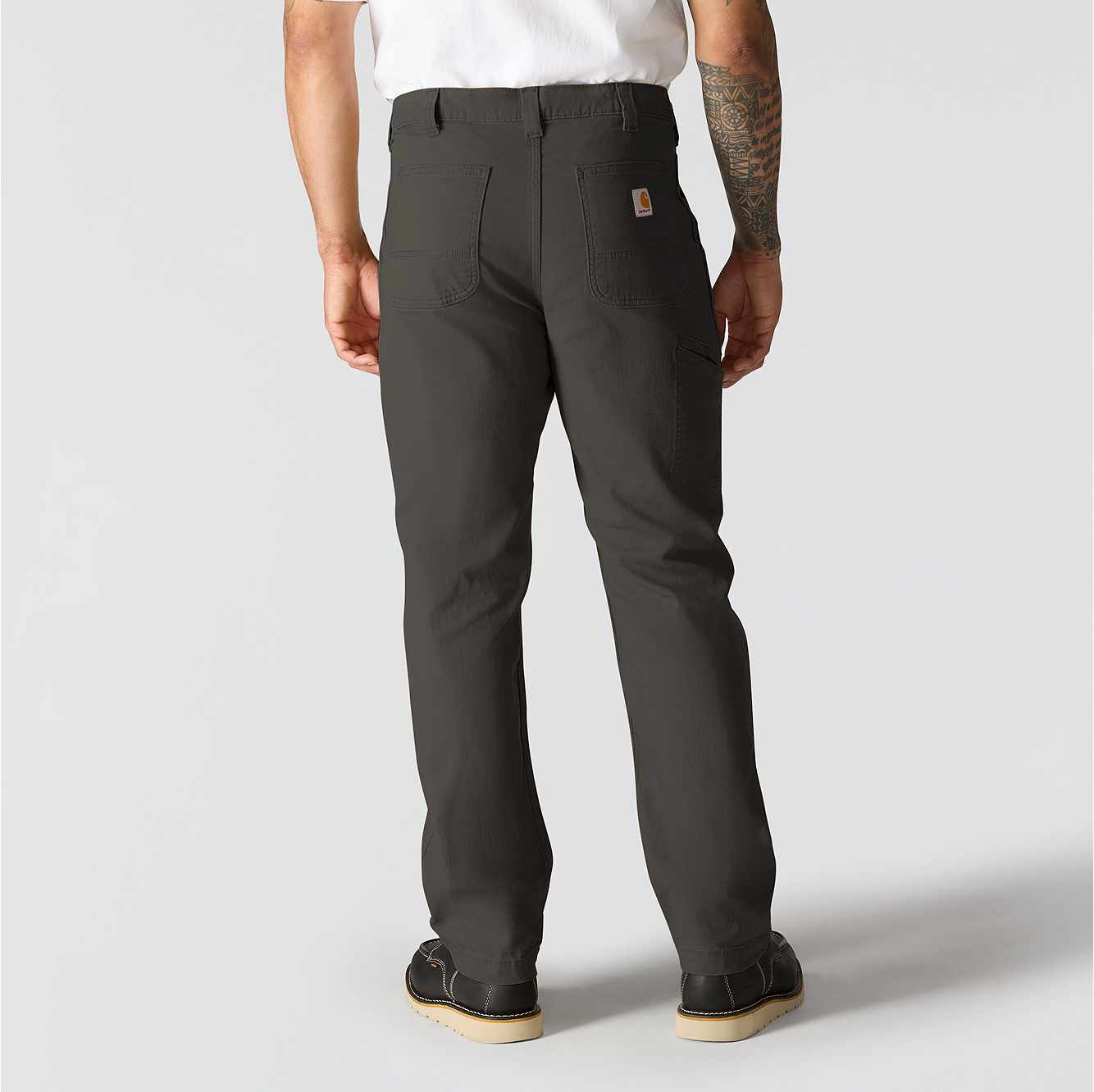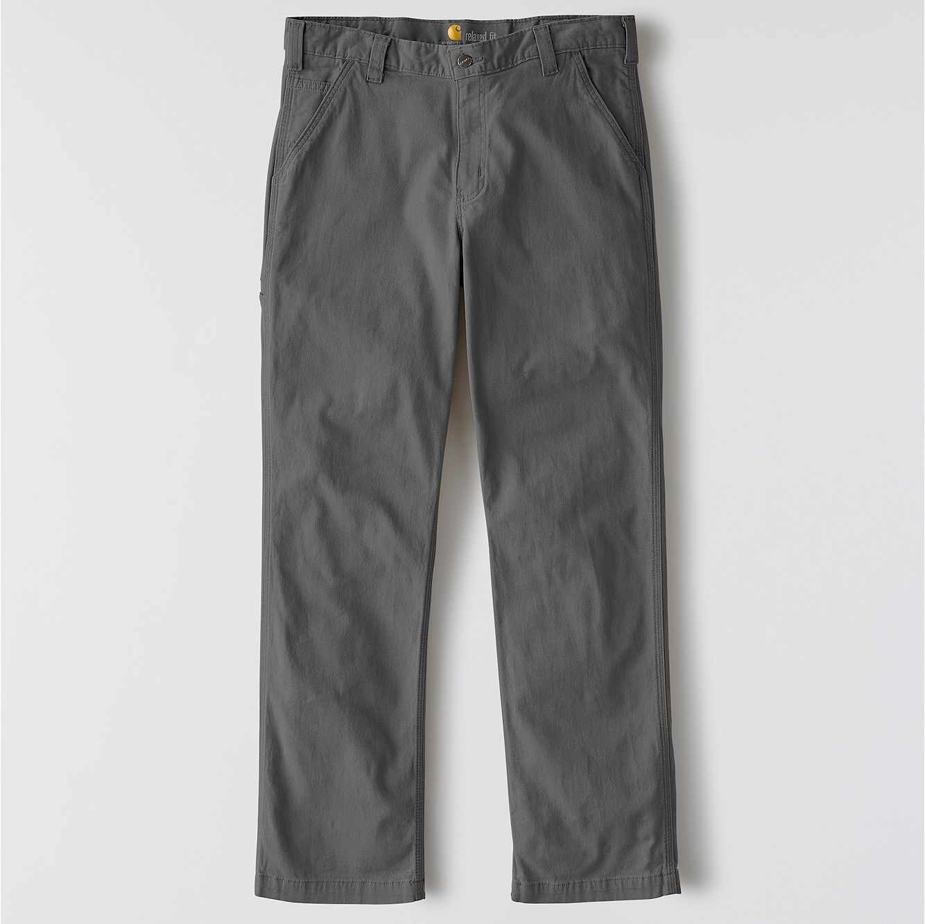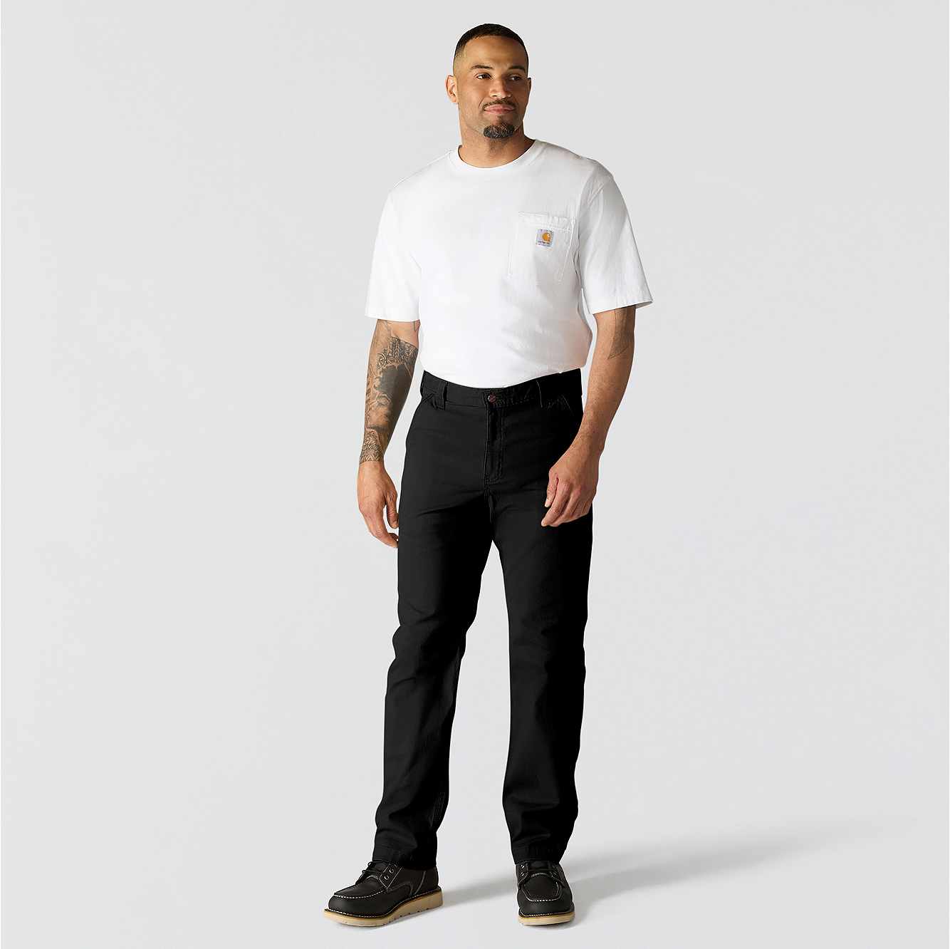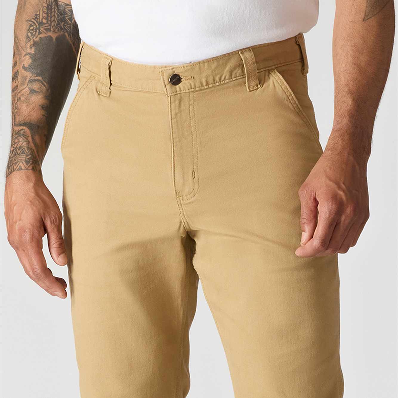 When your daily routine keeps you on the move, these men's canvas work pants offer a relaxed fit that maintains an unrestricted range of motion so you can tackle your to-do list uninhibited. The midweight cotton canvas offers the perfect amount of stretch for easy movement and the relaxed fit offers more room in the seat and thigh and cuffs that will fit over your work boots. Previously known as the Rugged Flex® Rigby Dungaree