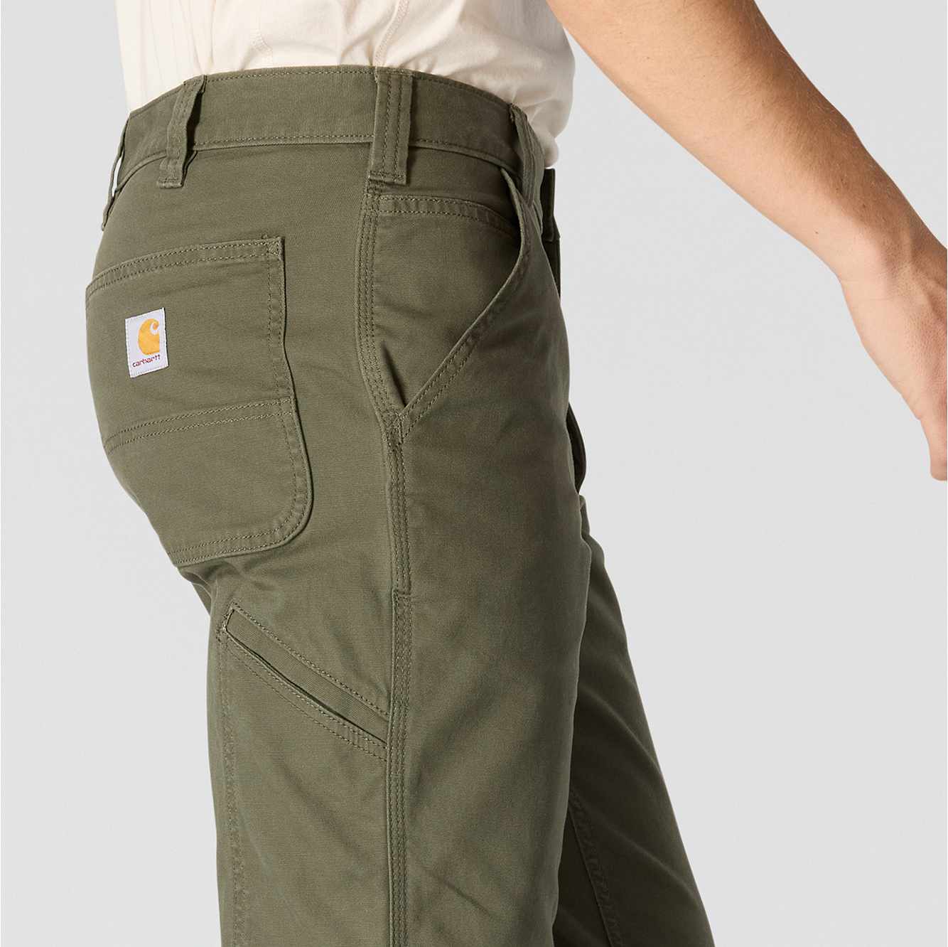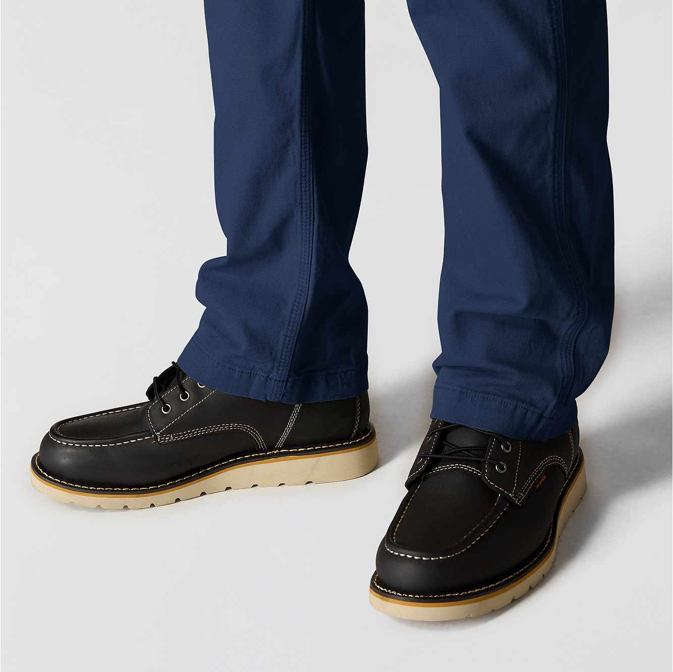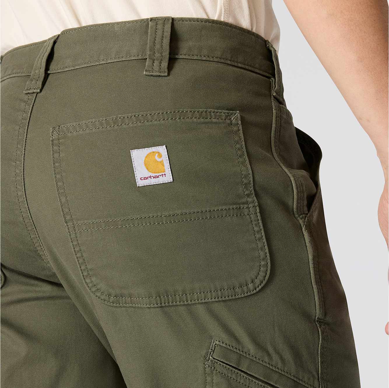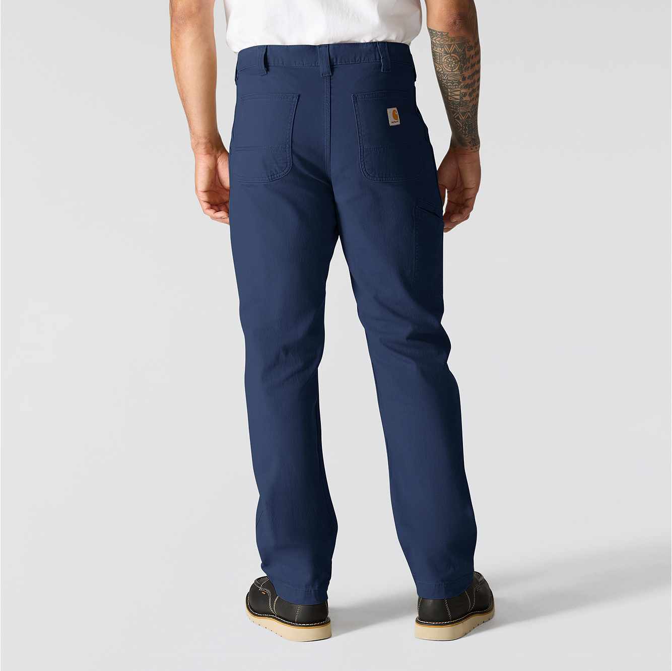 When your daily routine keeps you on the move, these men's canvas work pants offer a relaxed fit that maintains an unrestricted range of motion so you can tackle your to-do list uninhibited. The midweight cotton canvas offers the perfect amount of stretch for easy movement and the relaxed fit offers more room in the seat and thigh and cuffs that will fit over your work boots. Previously known as the Rugged Flex® Rigby Dungaree